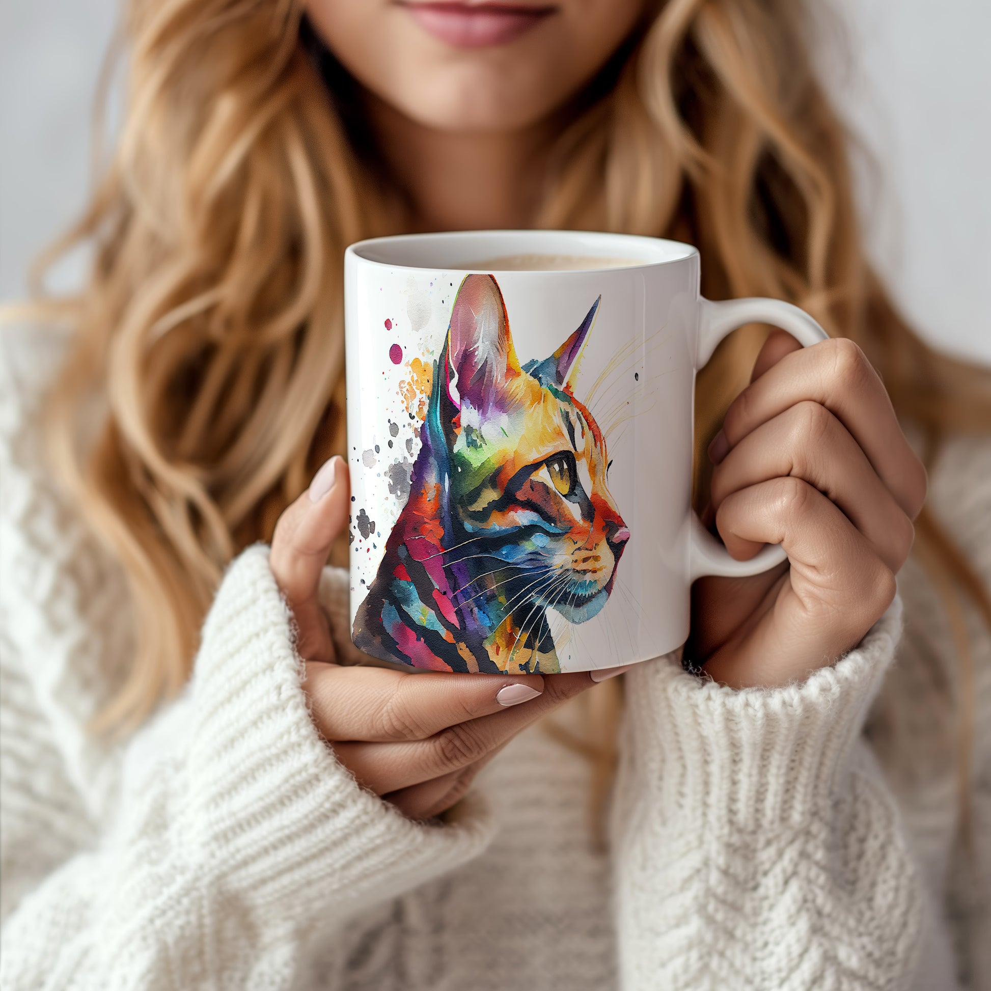 Tento hrnek zobrazuje barevný portrét kočky, který okouzlí každého milovníka těchto mazlíčků. Je skvělým dárkem pro přátele nebo rodinu, kteří mají rádi kočky a stylový design. Materiál: keramika. Objem: 330 ml. Vhodné do myčky i mikrovlnky. Používání tohoto hrnku přináší radost a zábavu při každém doušku.