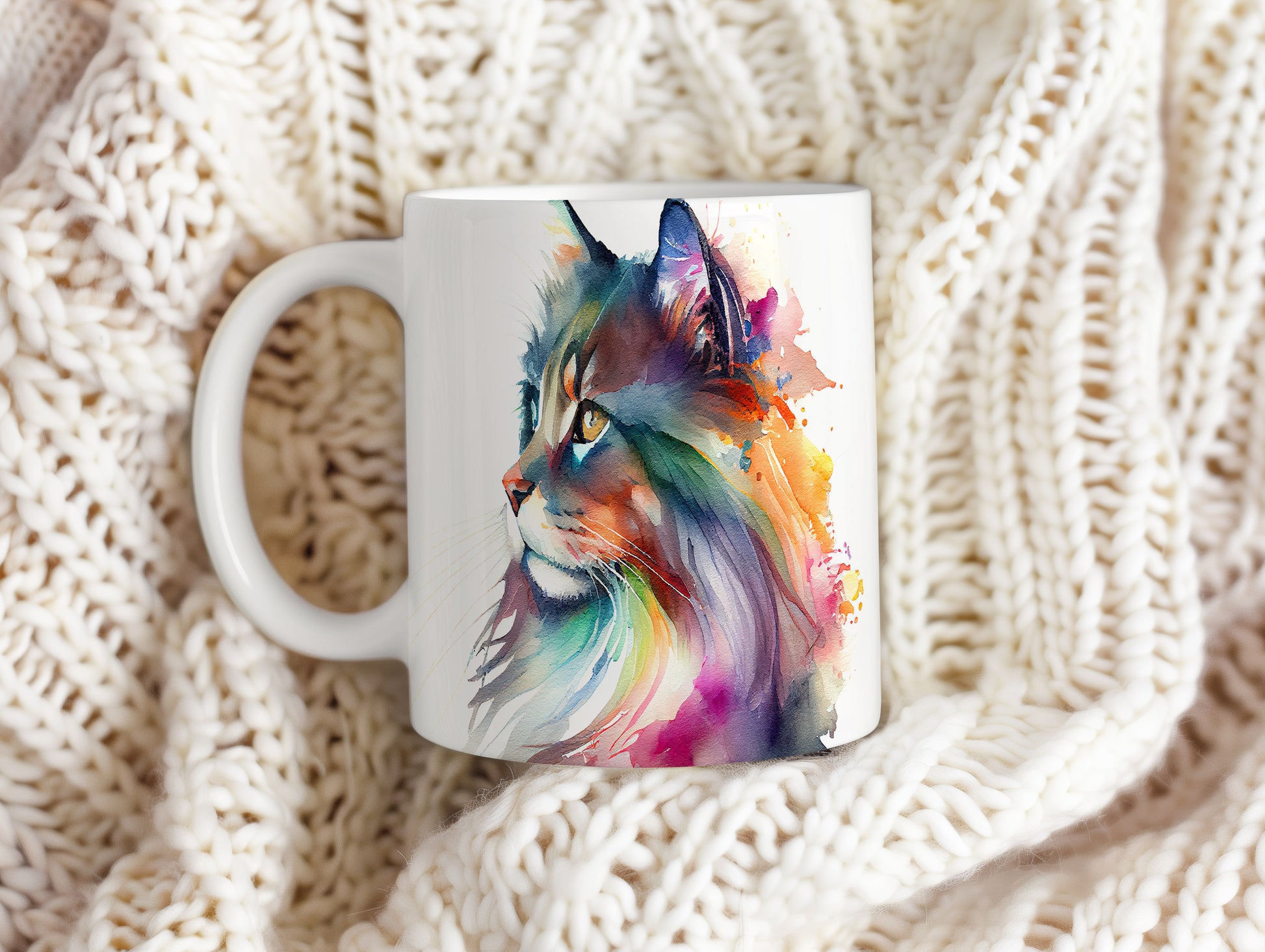 Hrnek s barevným portrétem kočky – originálním motivem