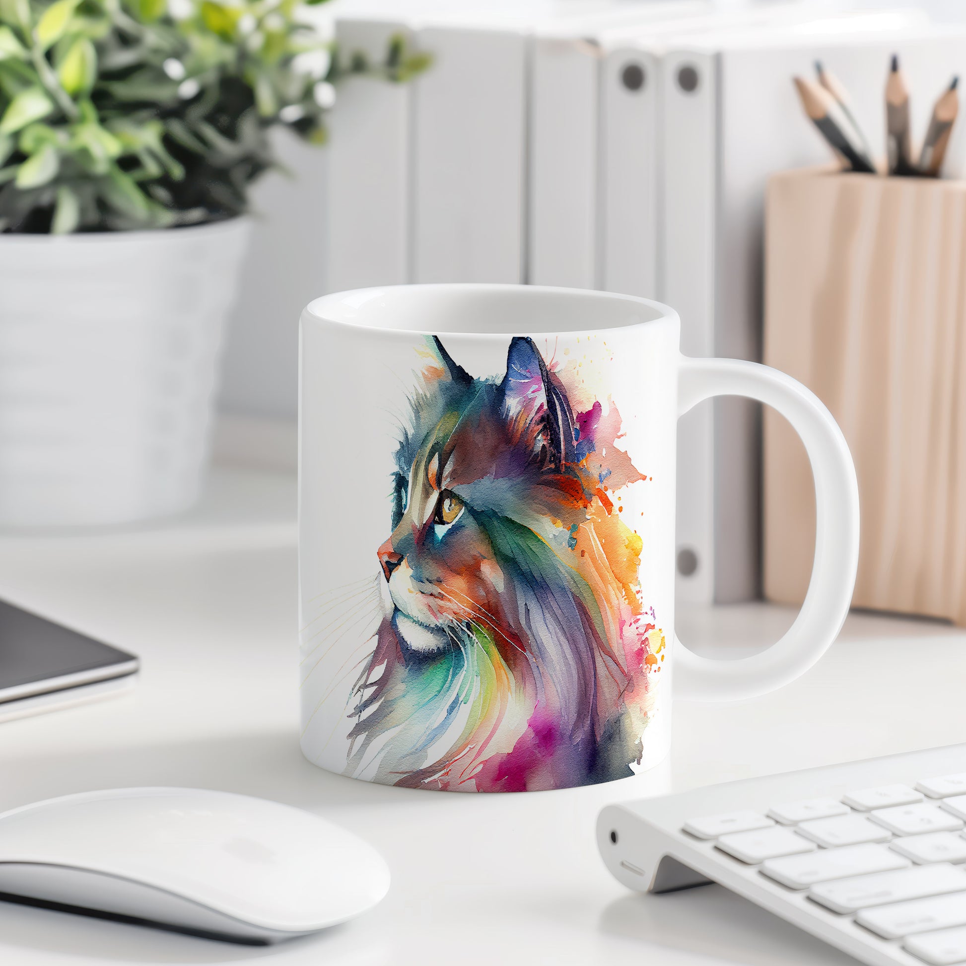 Tento hrnek z keramiky zobrazuje nádherný barevný portrét kočky, který potěší každého milovníka těchto mazlíčků. Je skvělým dárkem pro přátele nebo rodinu, kteří mají rádi kočky. Materiál: keramika. Objem: 330 ml. Vhodné do myčky i mikrovlnky. Používáním tohoto hrnku si každý den zpříjemníte šálek oblíbeného nápoje.