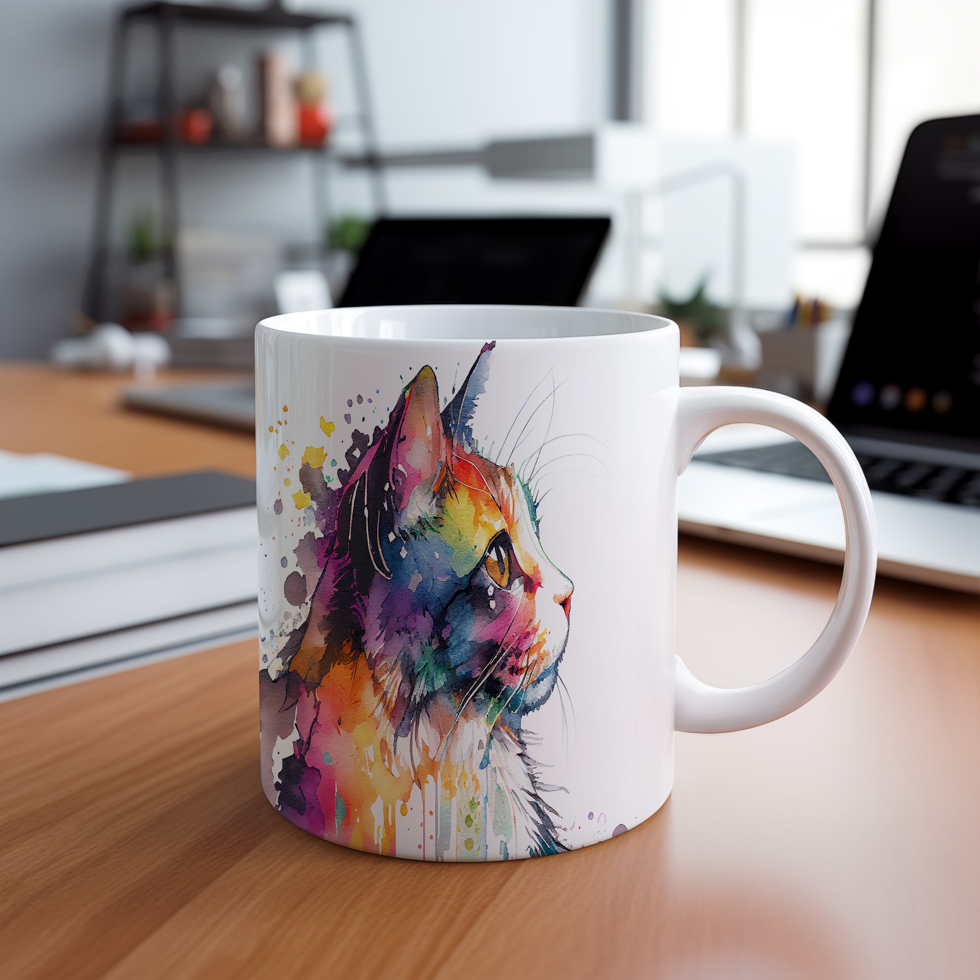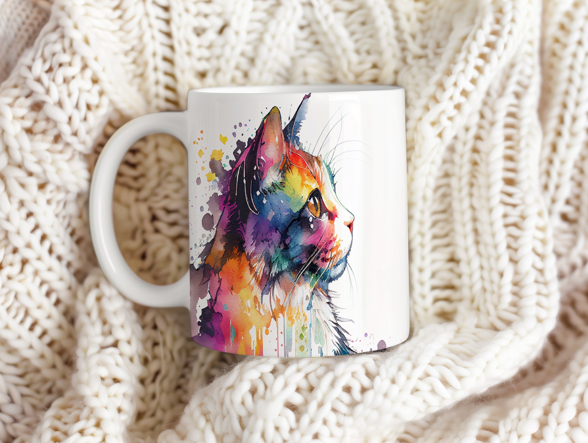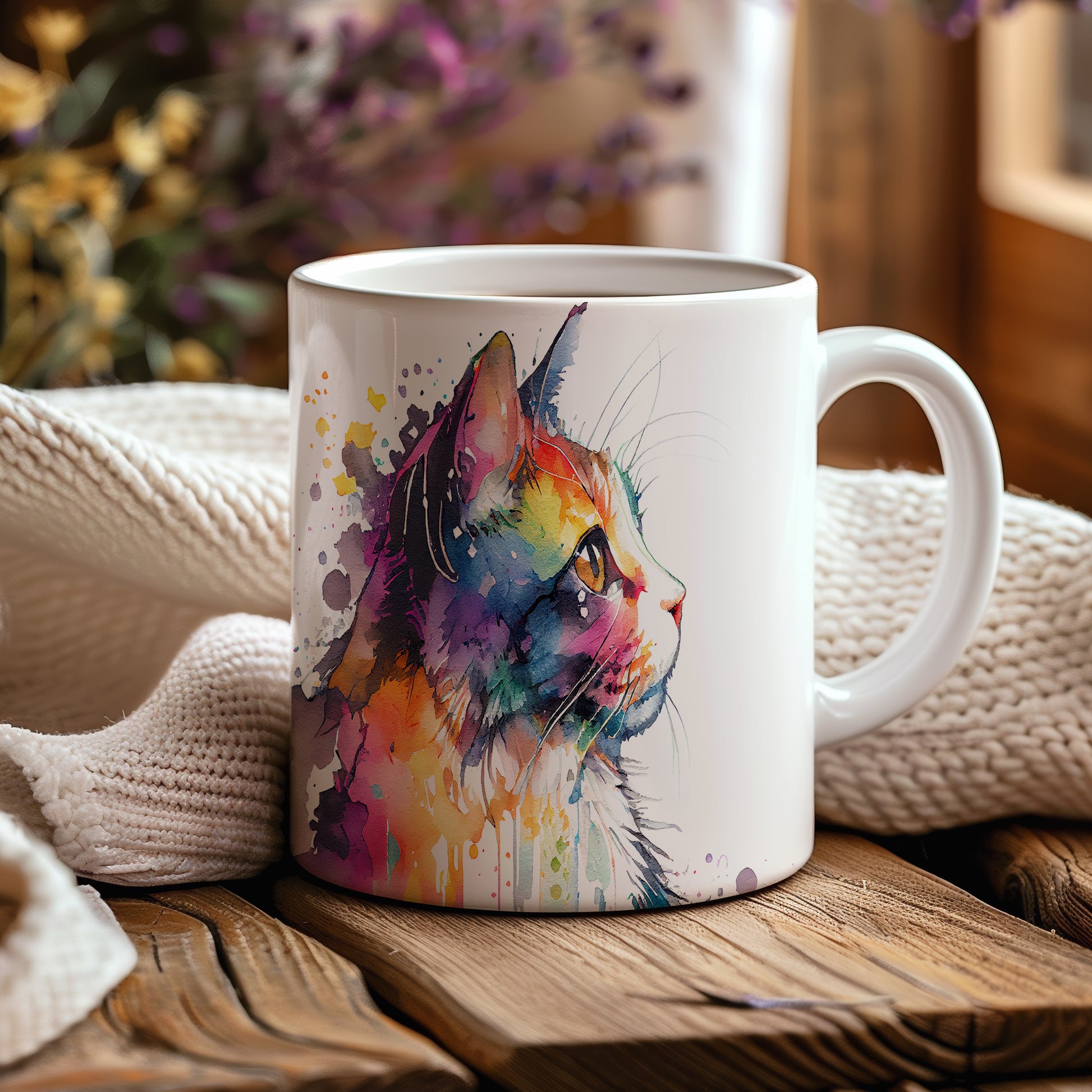 Hrnek s barevným portrétem kočky – roztomilým motivem