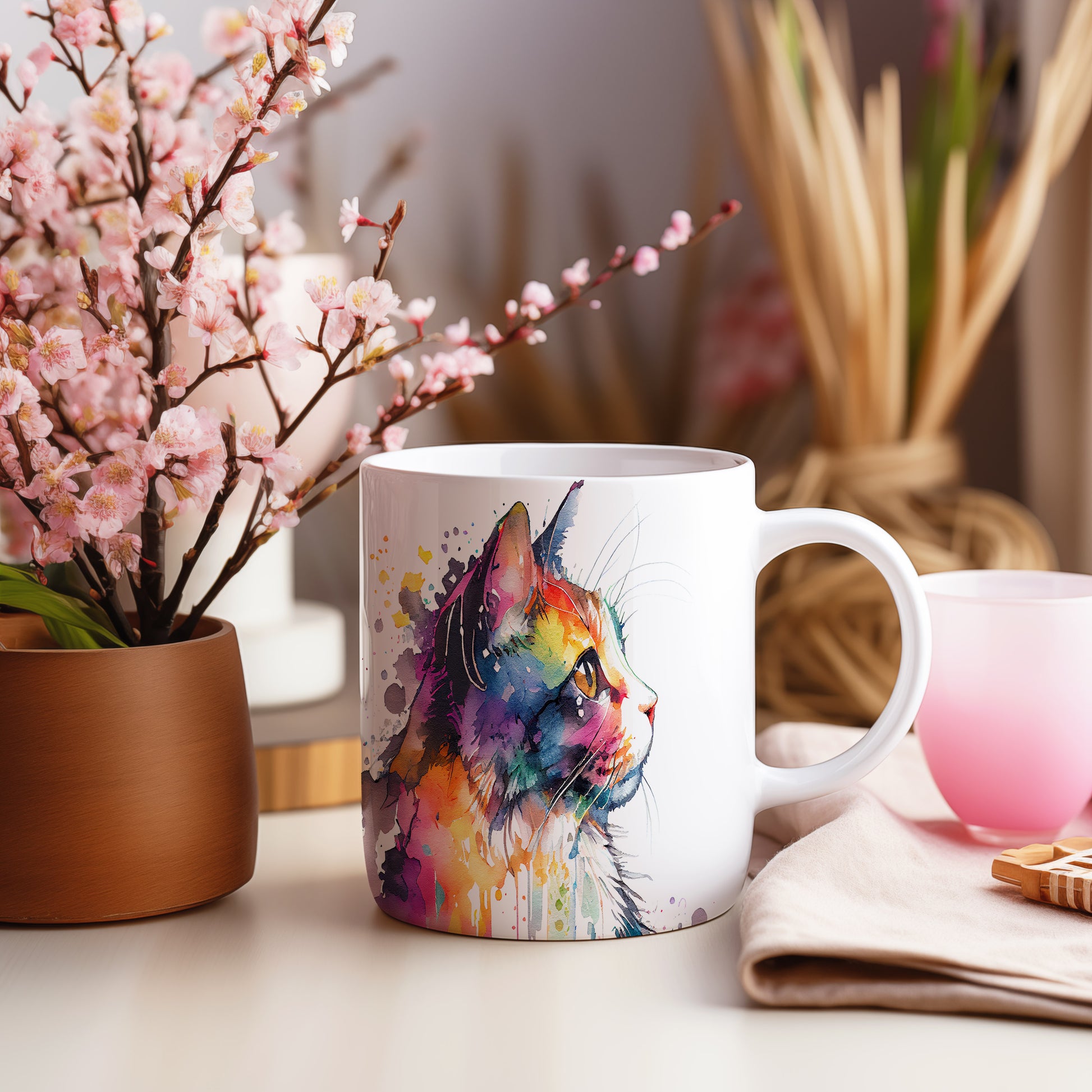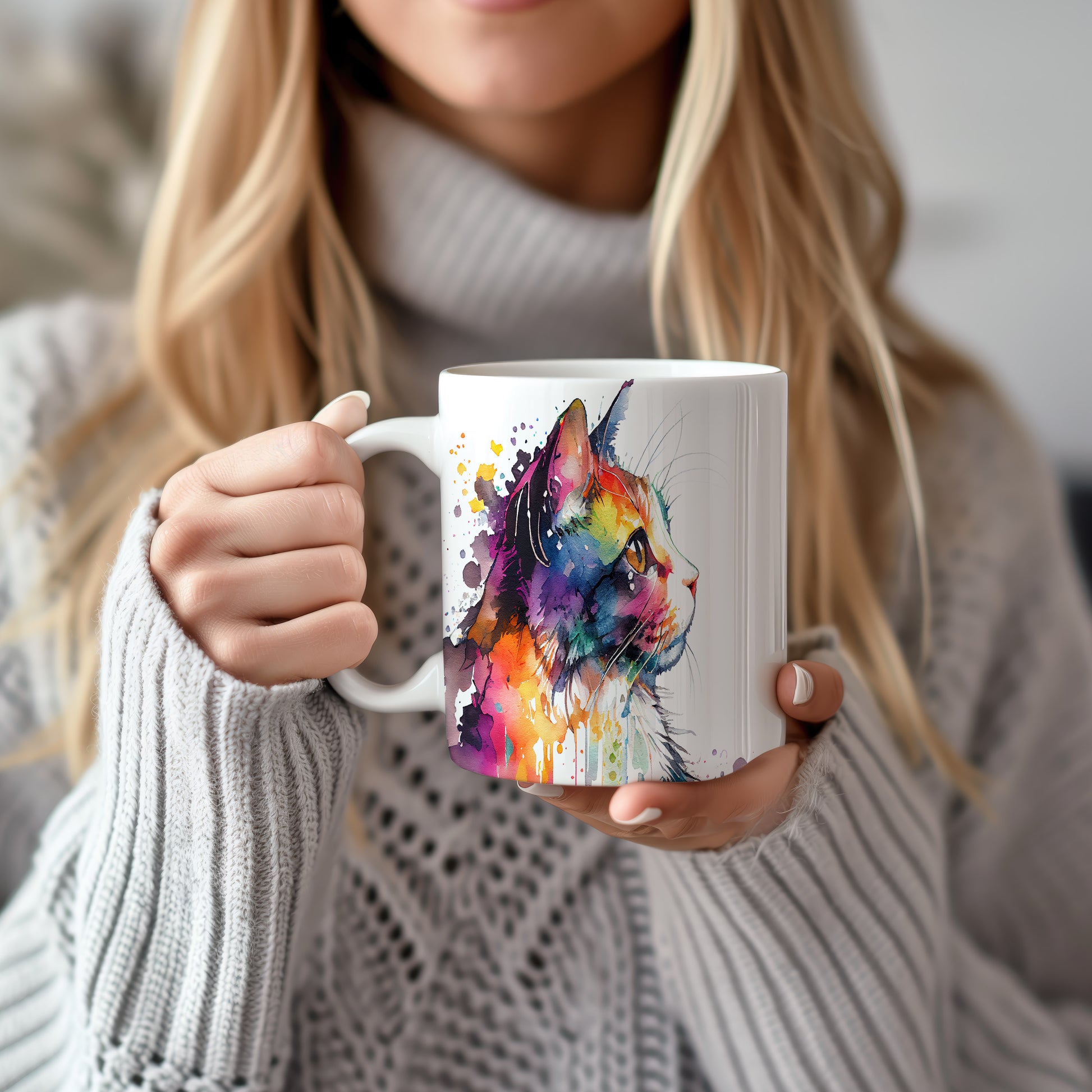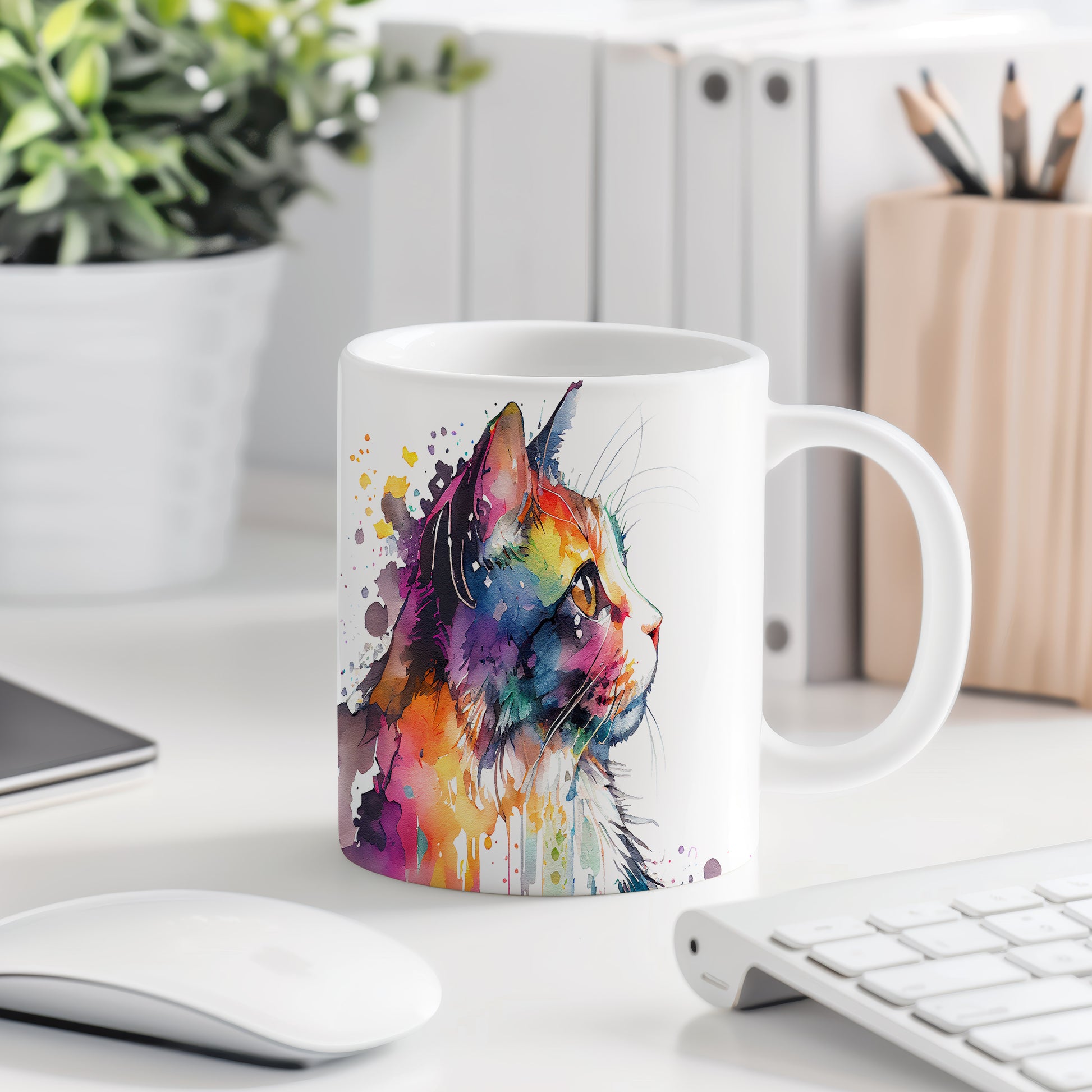 Hrnek s barevným portrétem kočky – roztomilým motivem