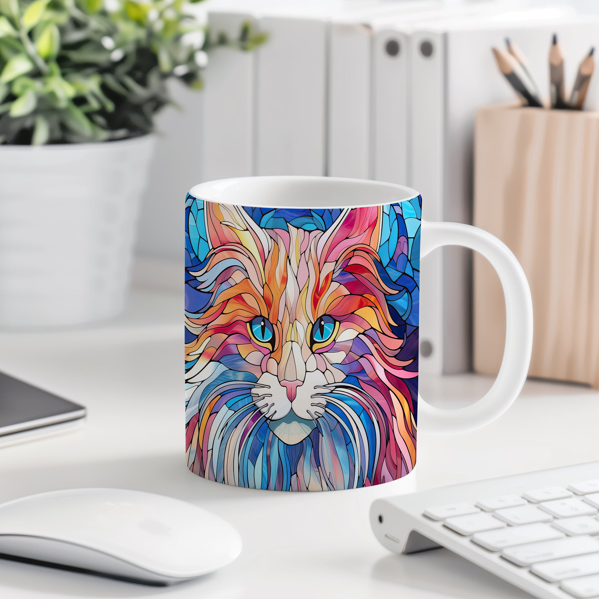 Tento hrnek s barevným portrétem kočky zachycuje veselého kocoura s výraznou srstí a velkýma očima. Je ideální pro milovníky koček a skvělým dárkem pro přátele či rodinu. Materiál: keramika. Objem: 330 ml. Vhodné do myčky i mikrovlnky. Používáním tohoto hrnku si můžete užít každodenní kávu nebo čaj s úsměvem.