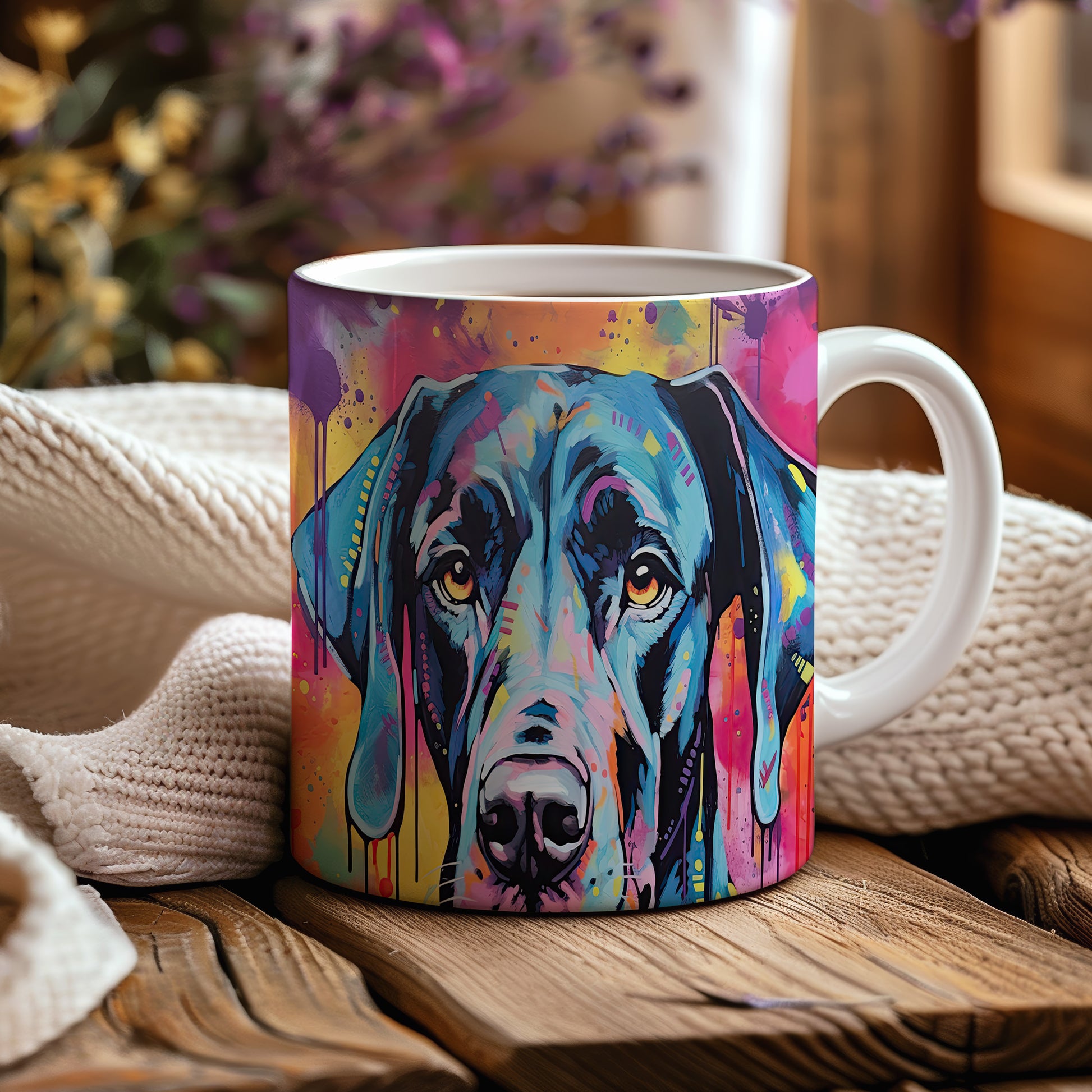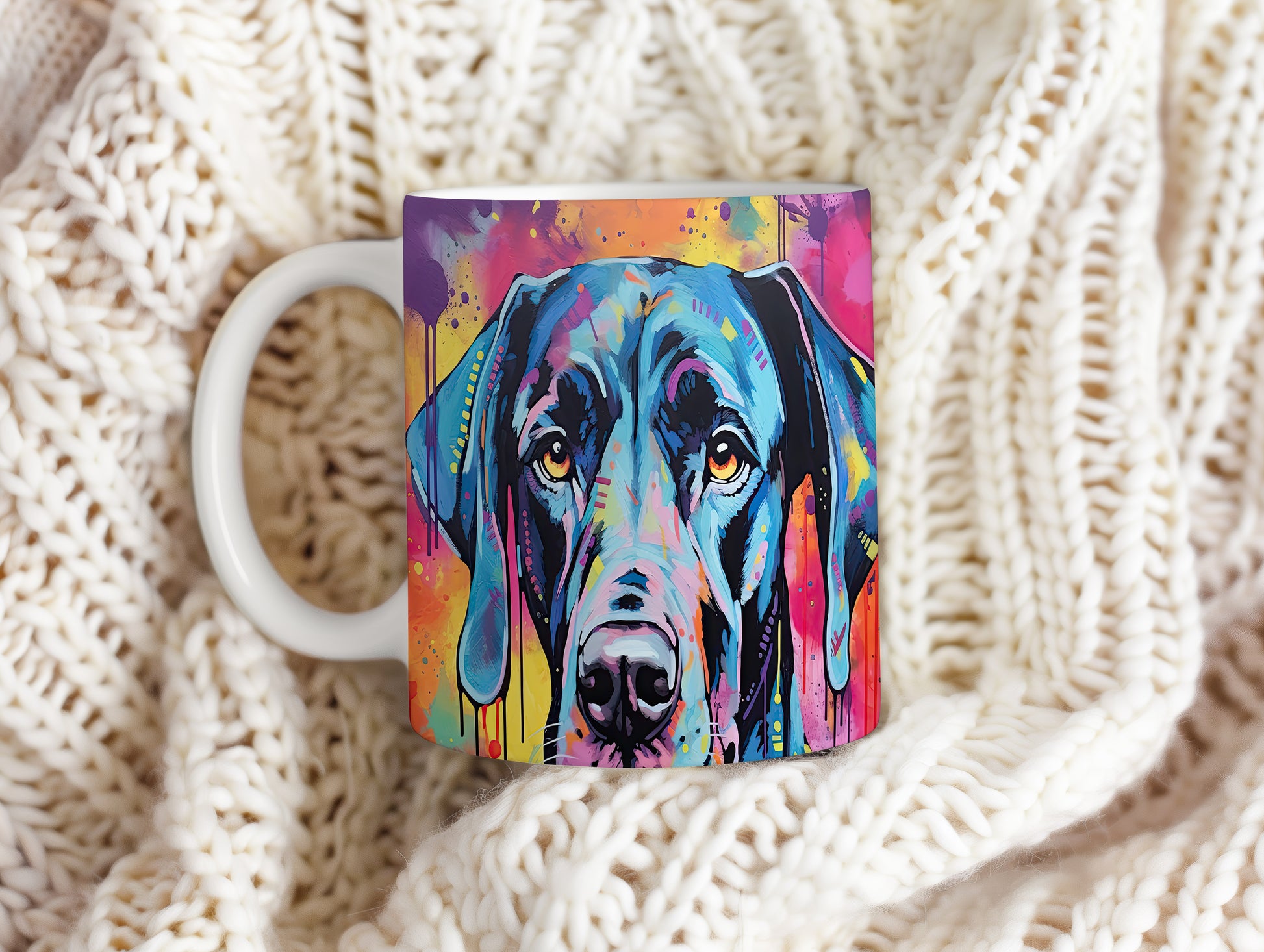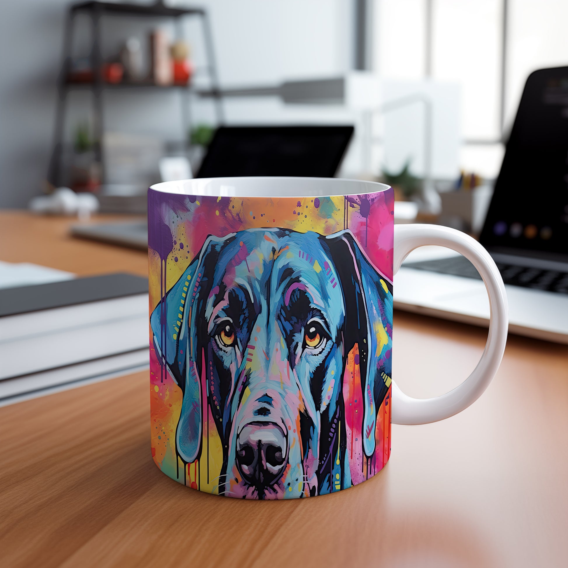 Hrnek s barevným portrétem psa – komiksovým stylem