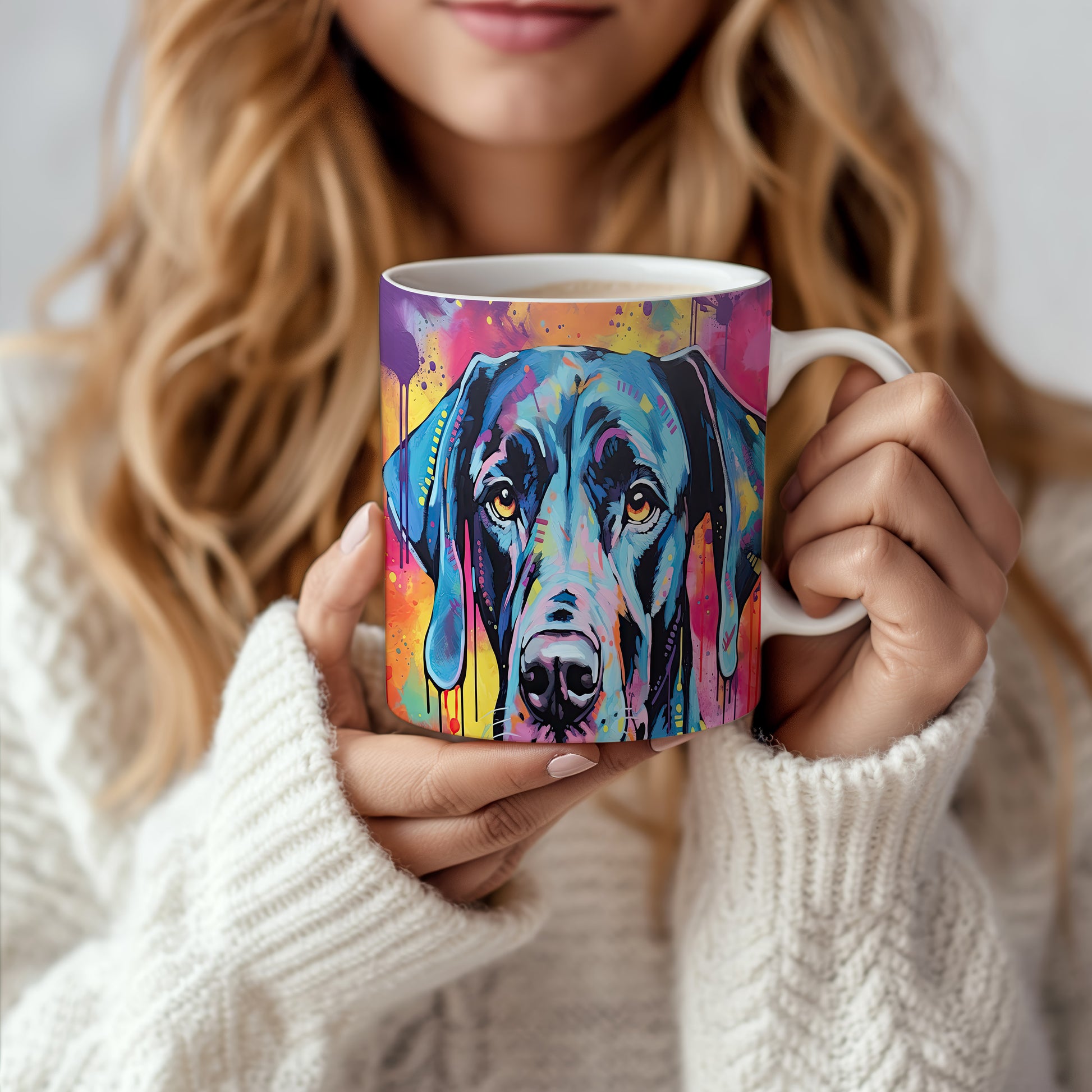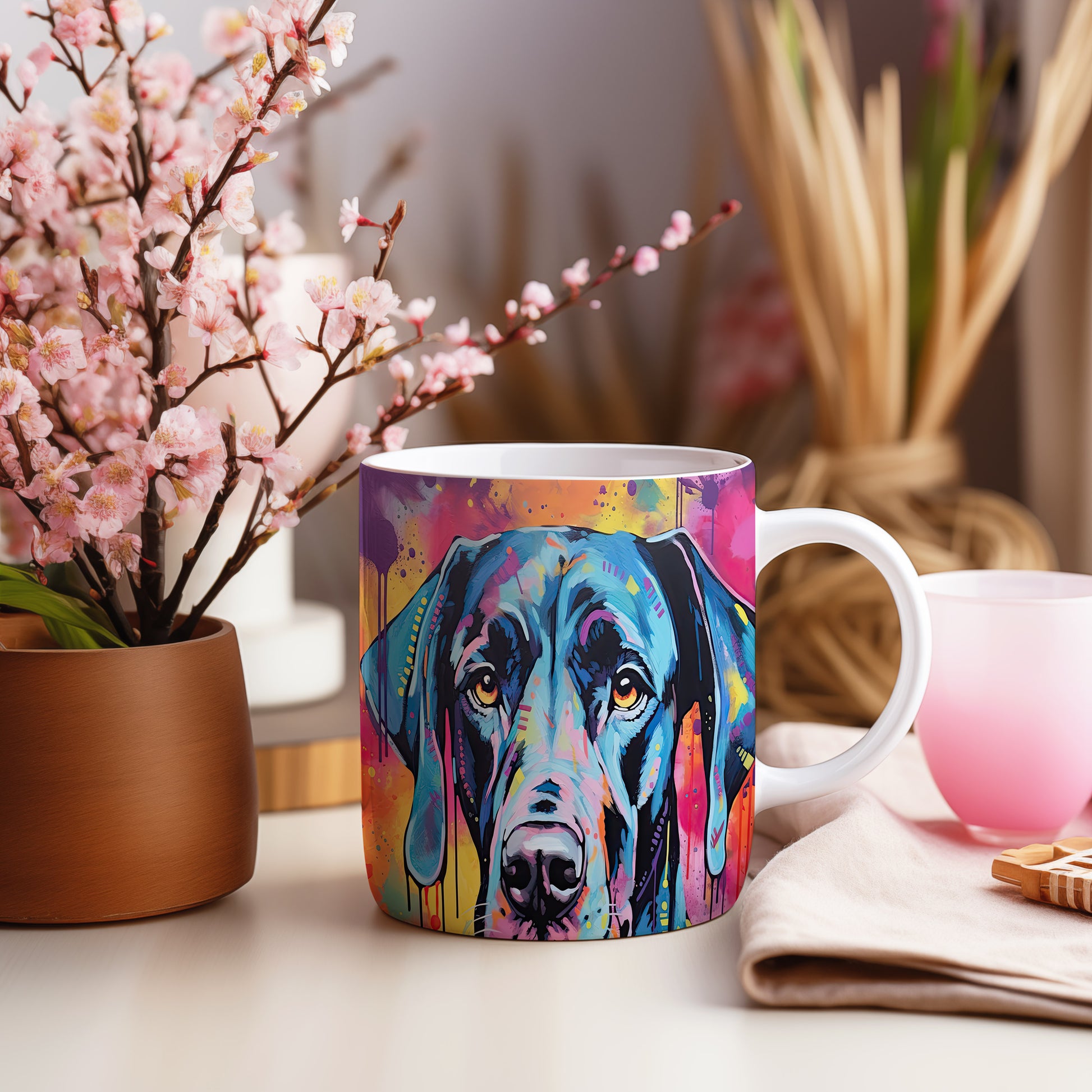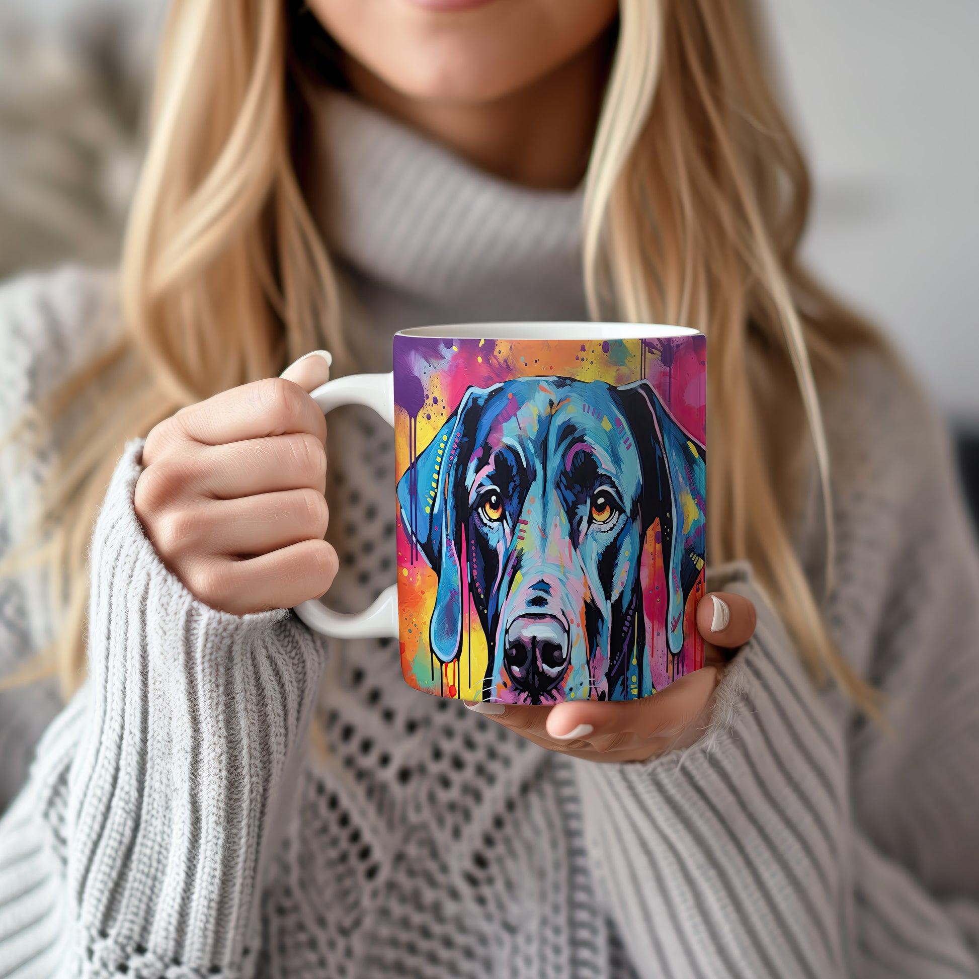Hrnek s barevným portrétem psa – komiksovým stylem