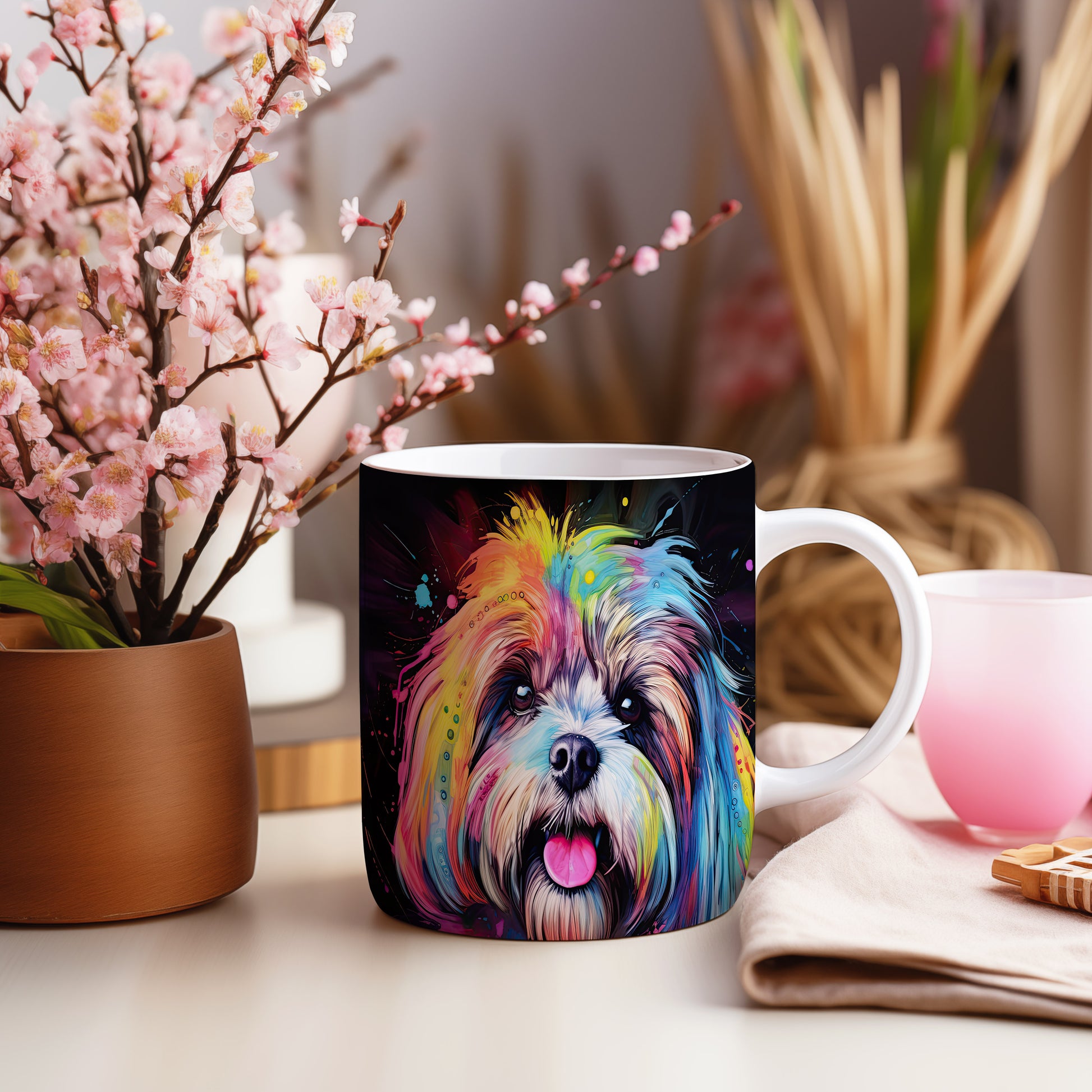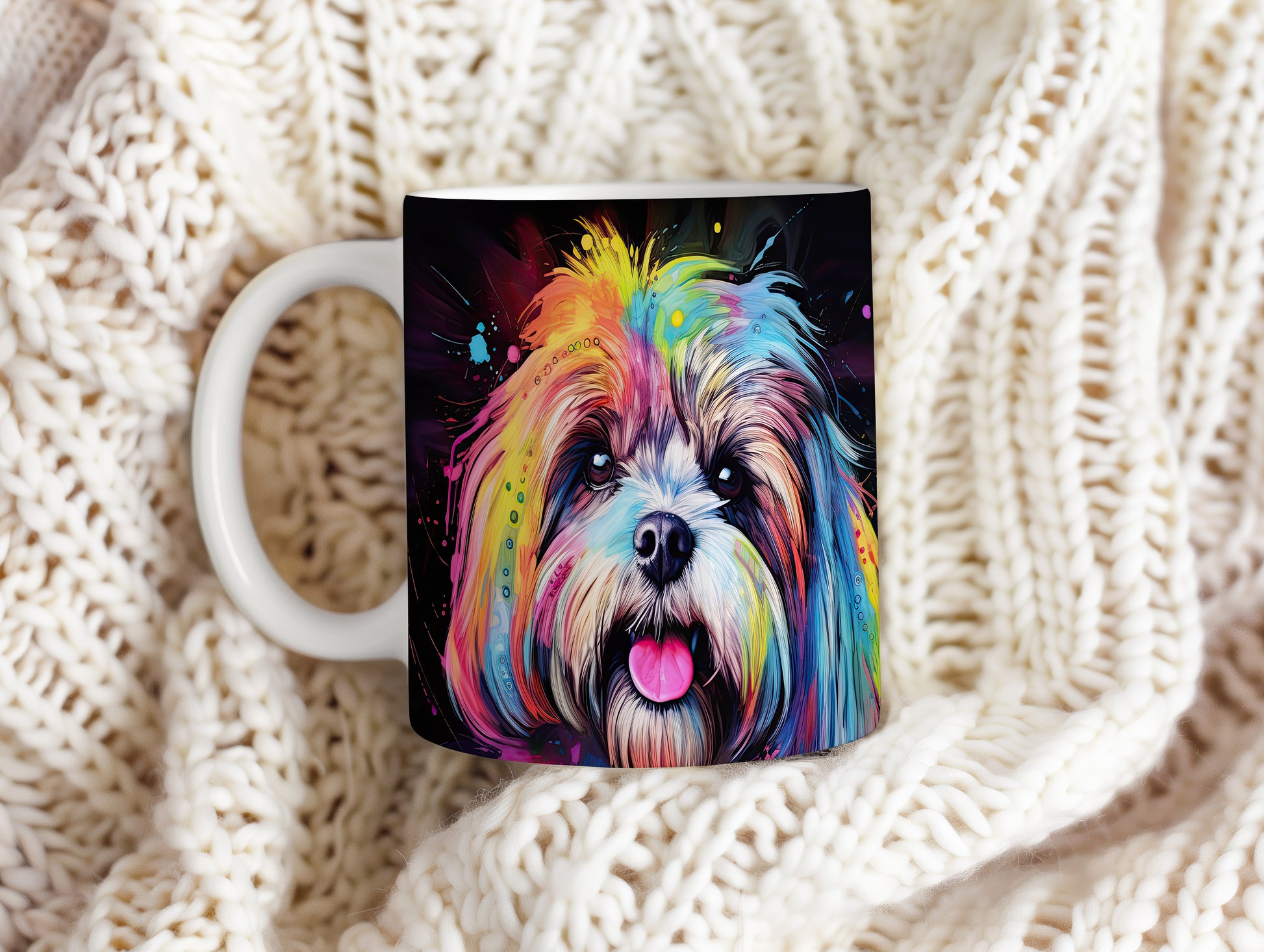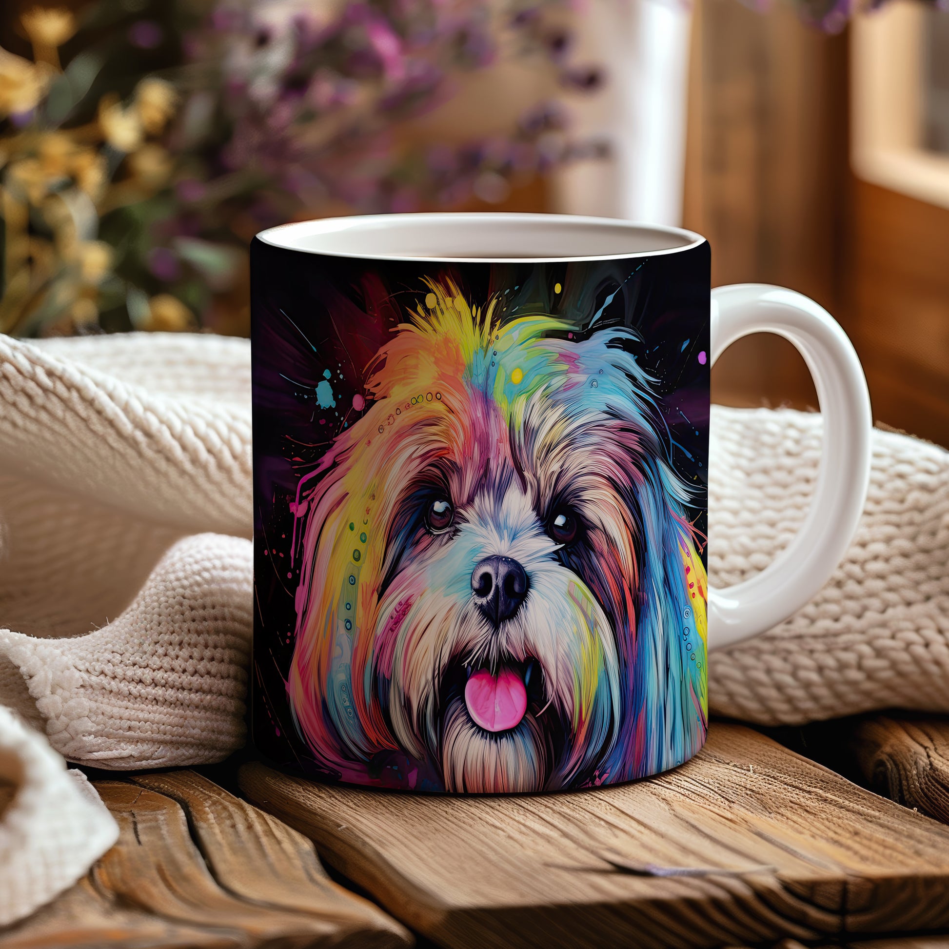 Tento keramický hrnek zobrazuje barevný portrét psa, který zaujme svým výrazným vzhledem. Je ideální pro milovníky psů a skvělým dárkem pro každého, kdo má rád zvířata. Materiál: keramika. Objem: 330 ml. Vhodné do myčky i mikrovlnky. Užijte si svůj oblíbený nápoj s tímto originálním kouskem.