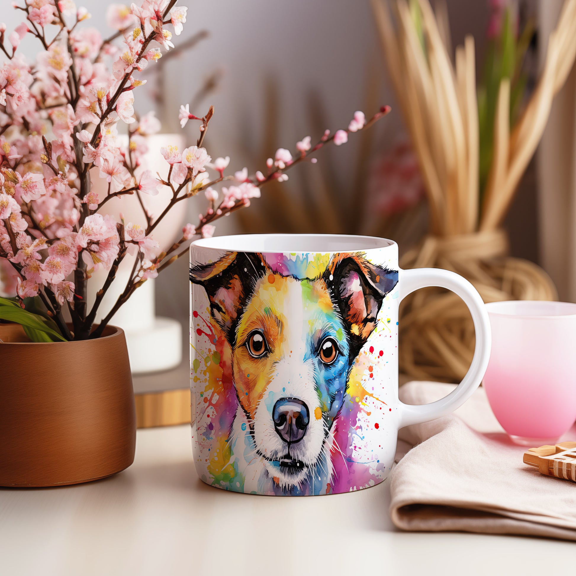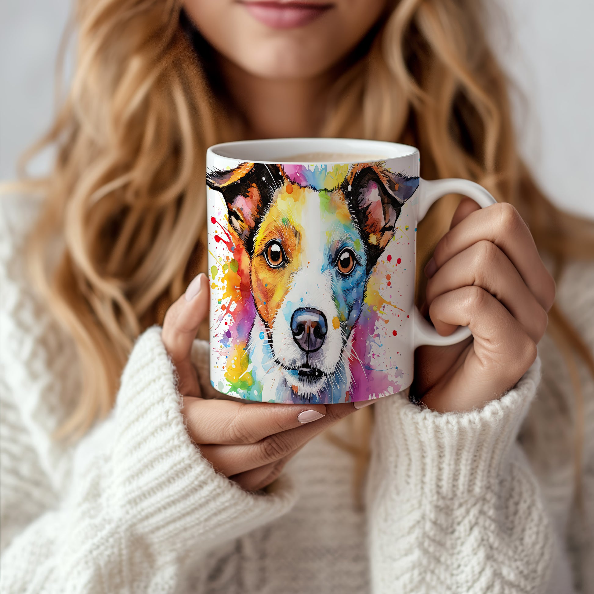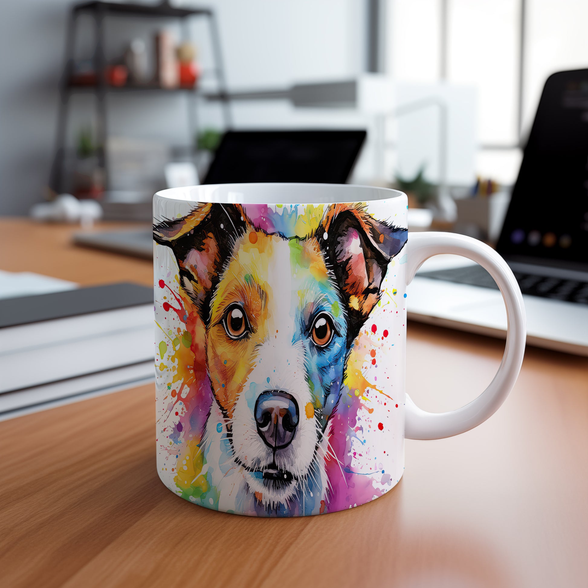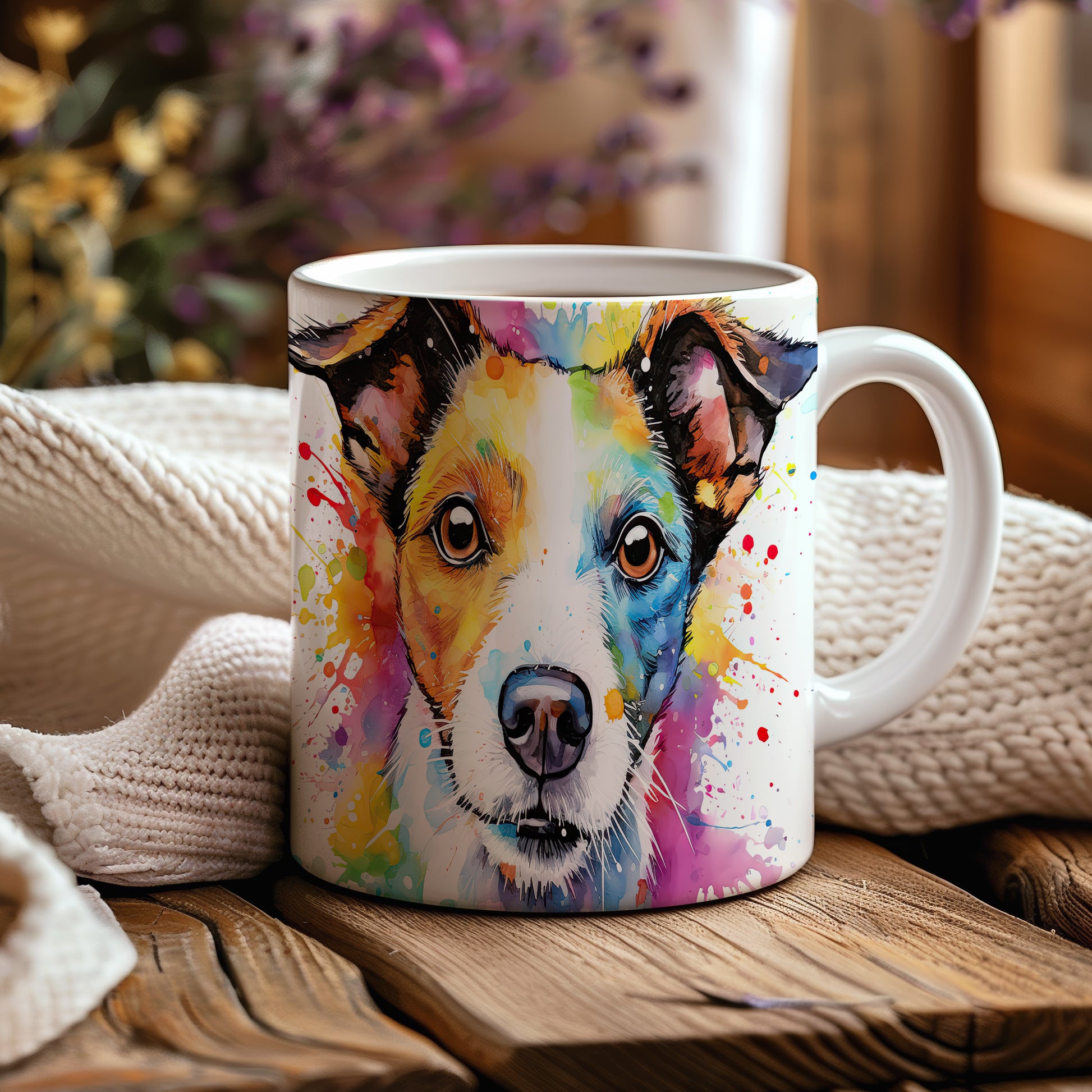 Hrnek s barevným portrétem psa v akvarelovém stylu