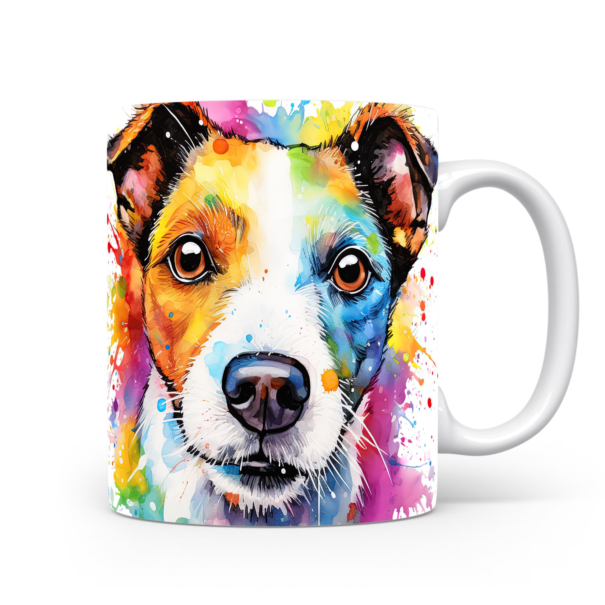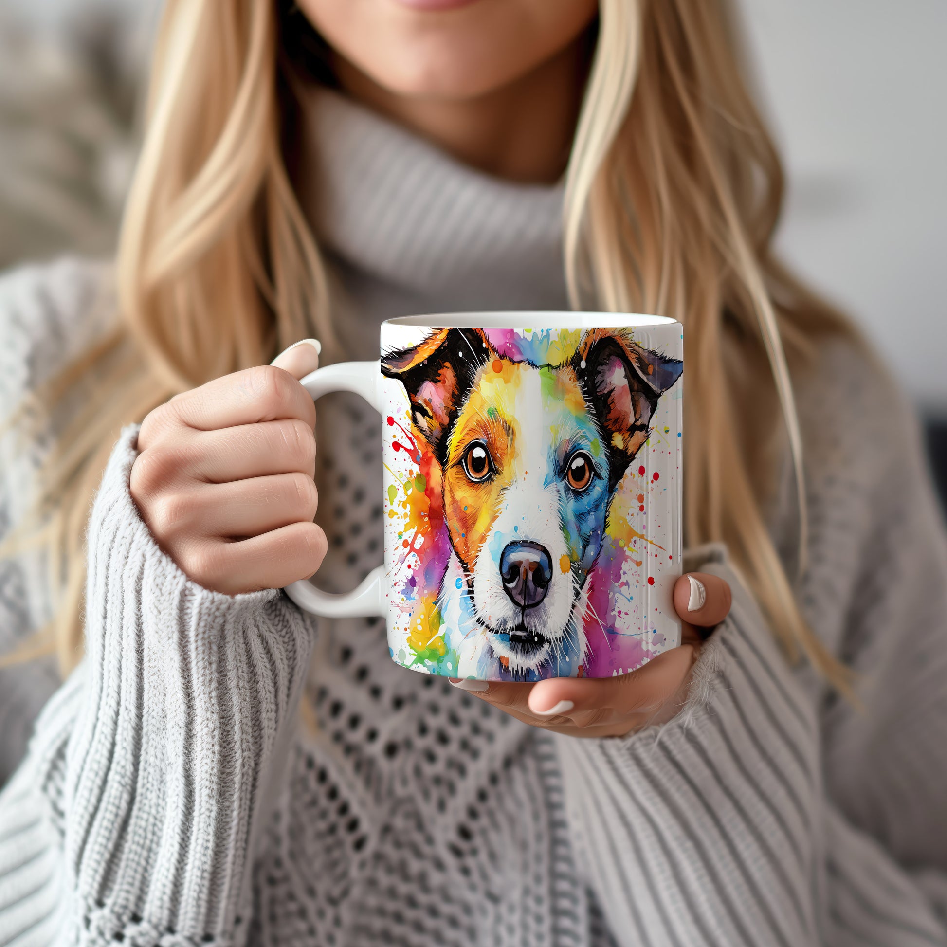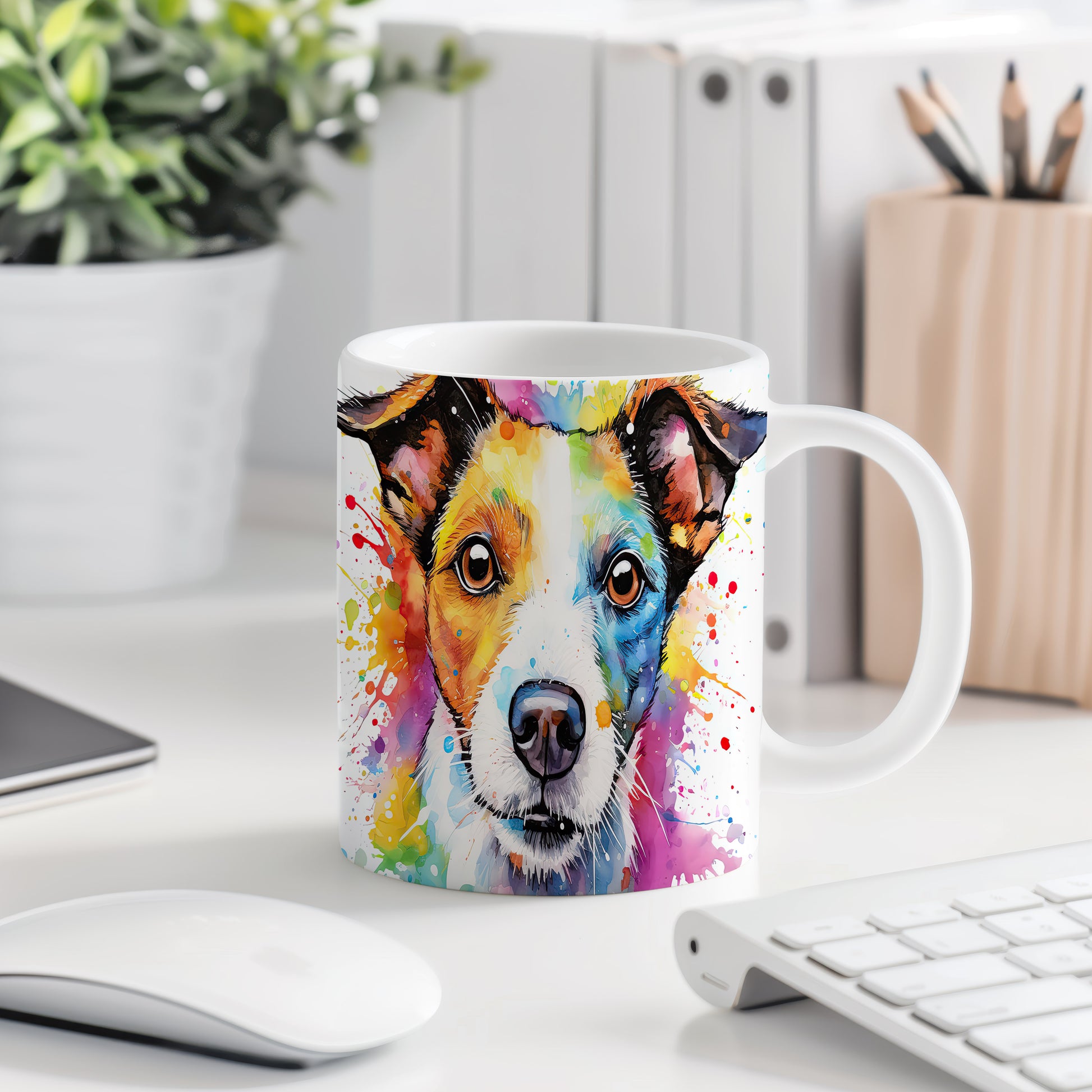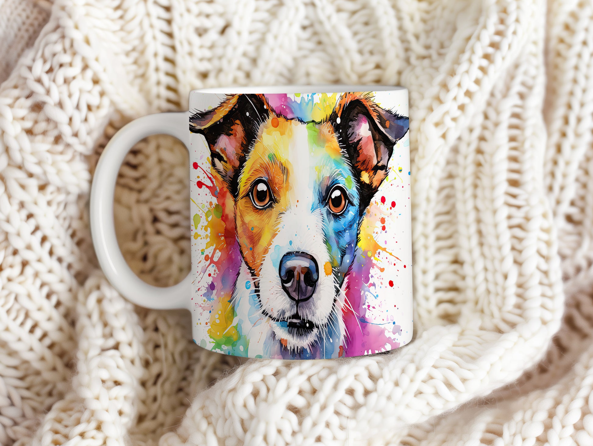 Hrnek s barevným portrétem psa v akvarelovém stylu