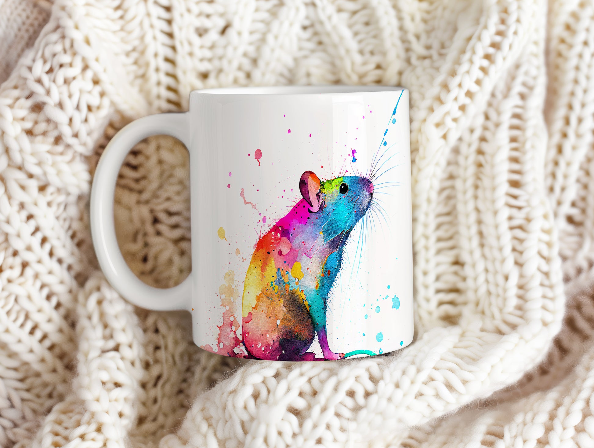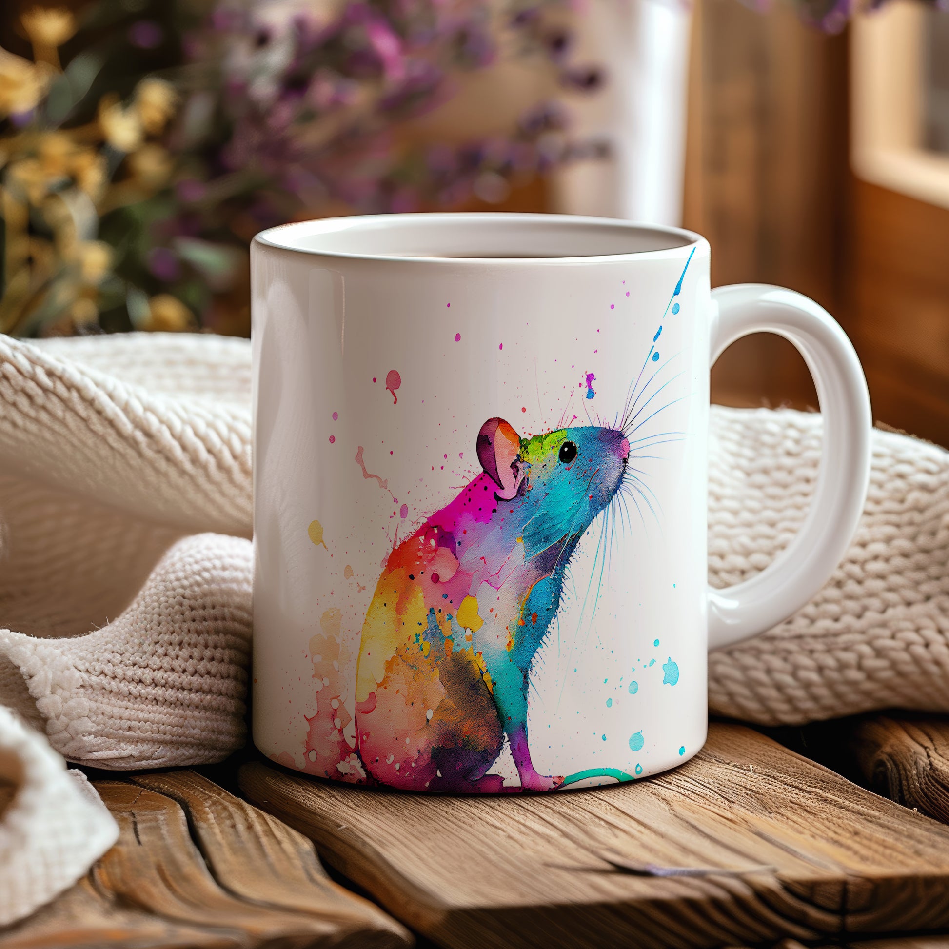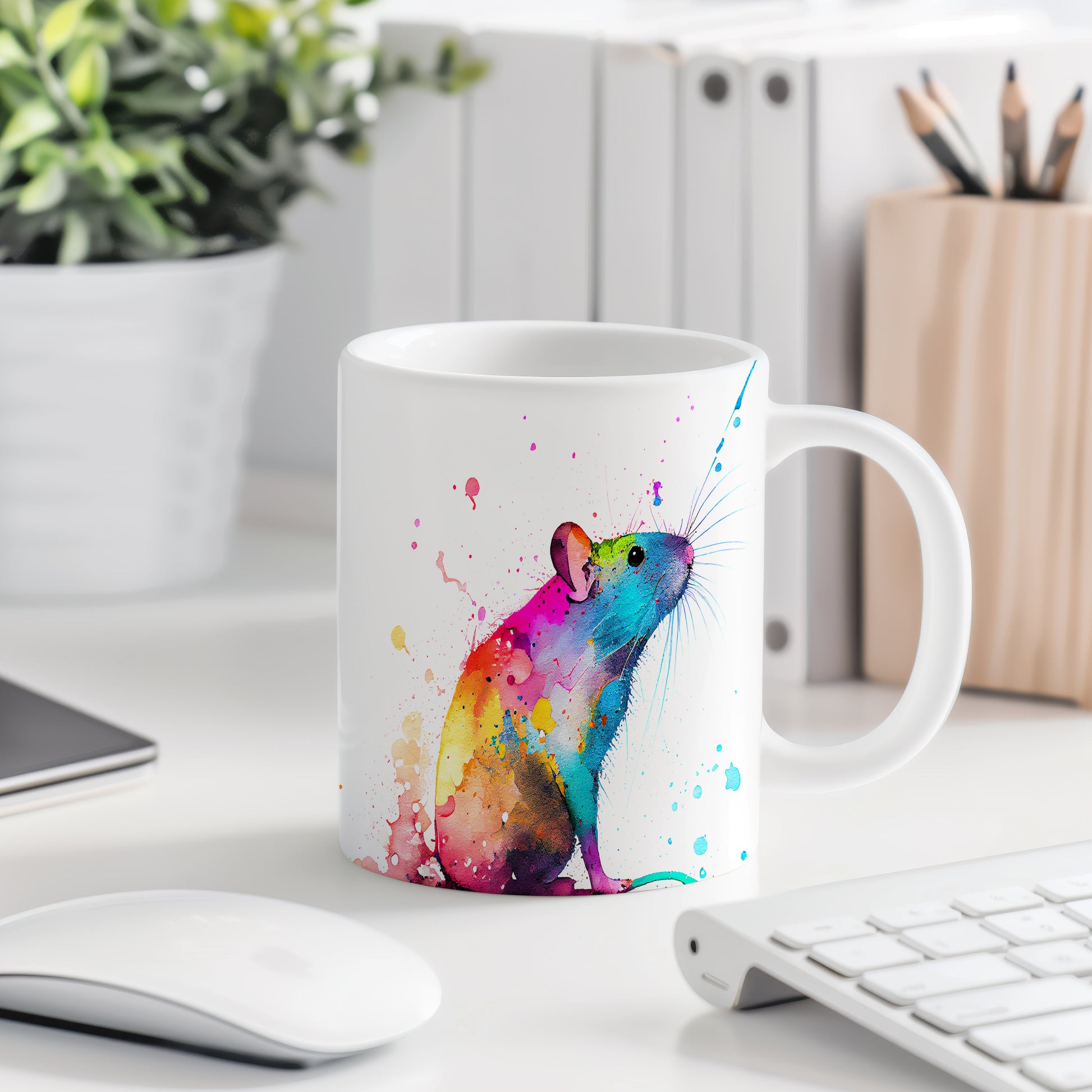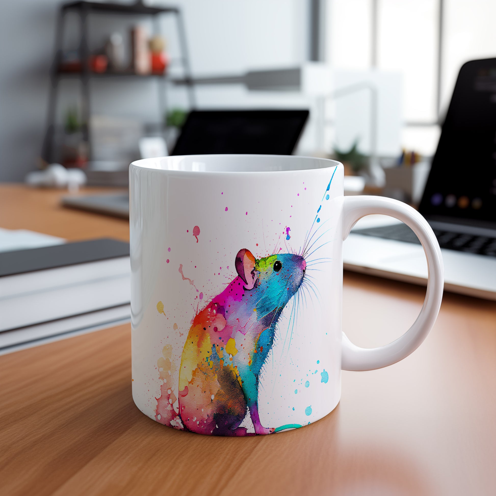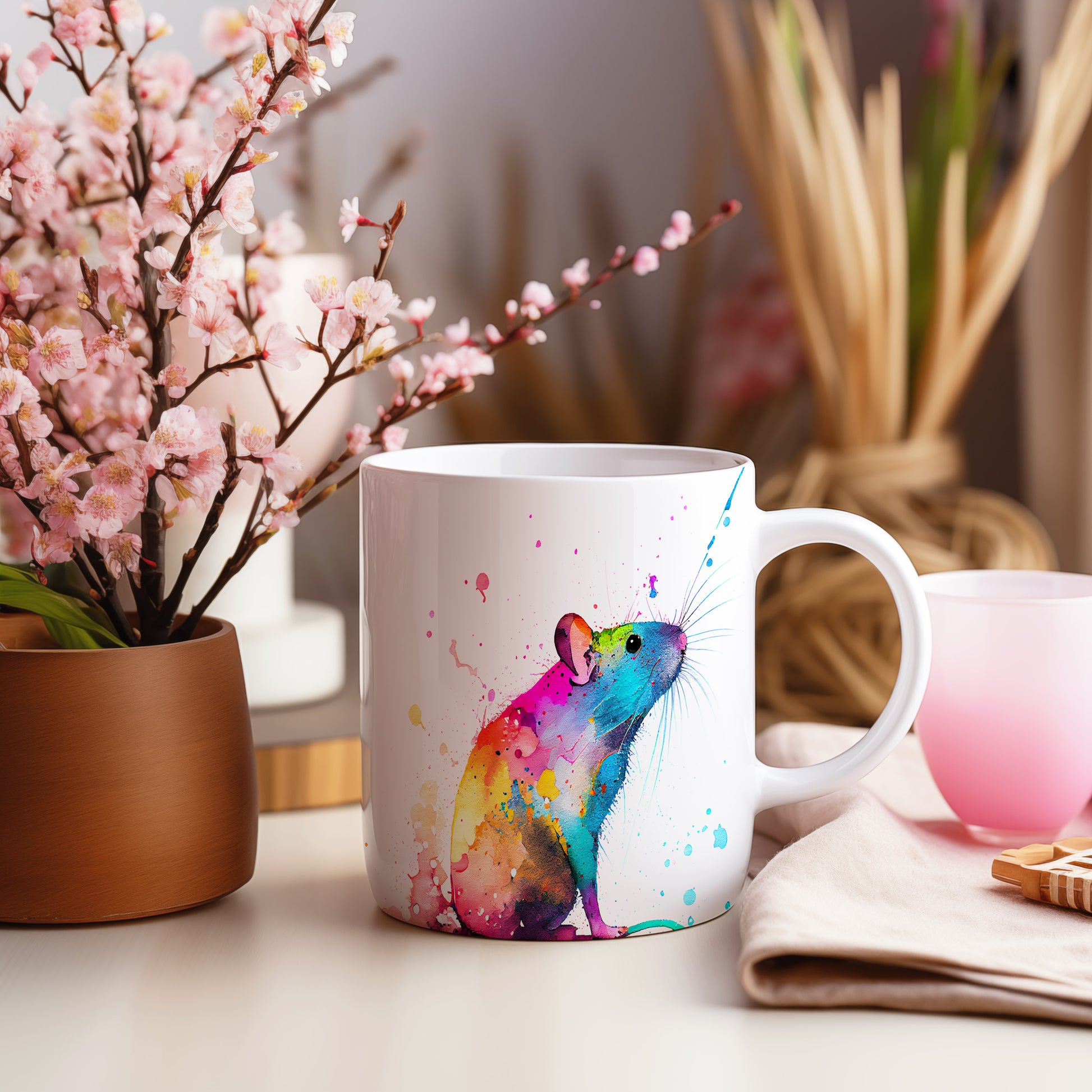 Barevný hrnek s ilustrací myši v akvarelovém stylu a jedinečnými barevnými skvrnami. Tento hrnek je ideální pro milovníky zvířat a kreativní povahy, skvělý tip na dárek pro přátele nebo rodinu. Materiál: keramika. Objem: 330 ml. Vhodné do myčky i mikrovlnky. Používáním tohoto hrnku si užijete nejen skvělý design, ale i pohodlné pití vašich oblíbených nápojů.