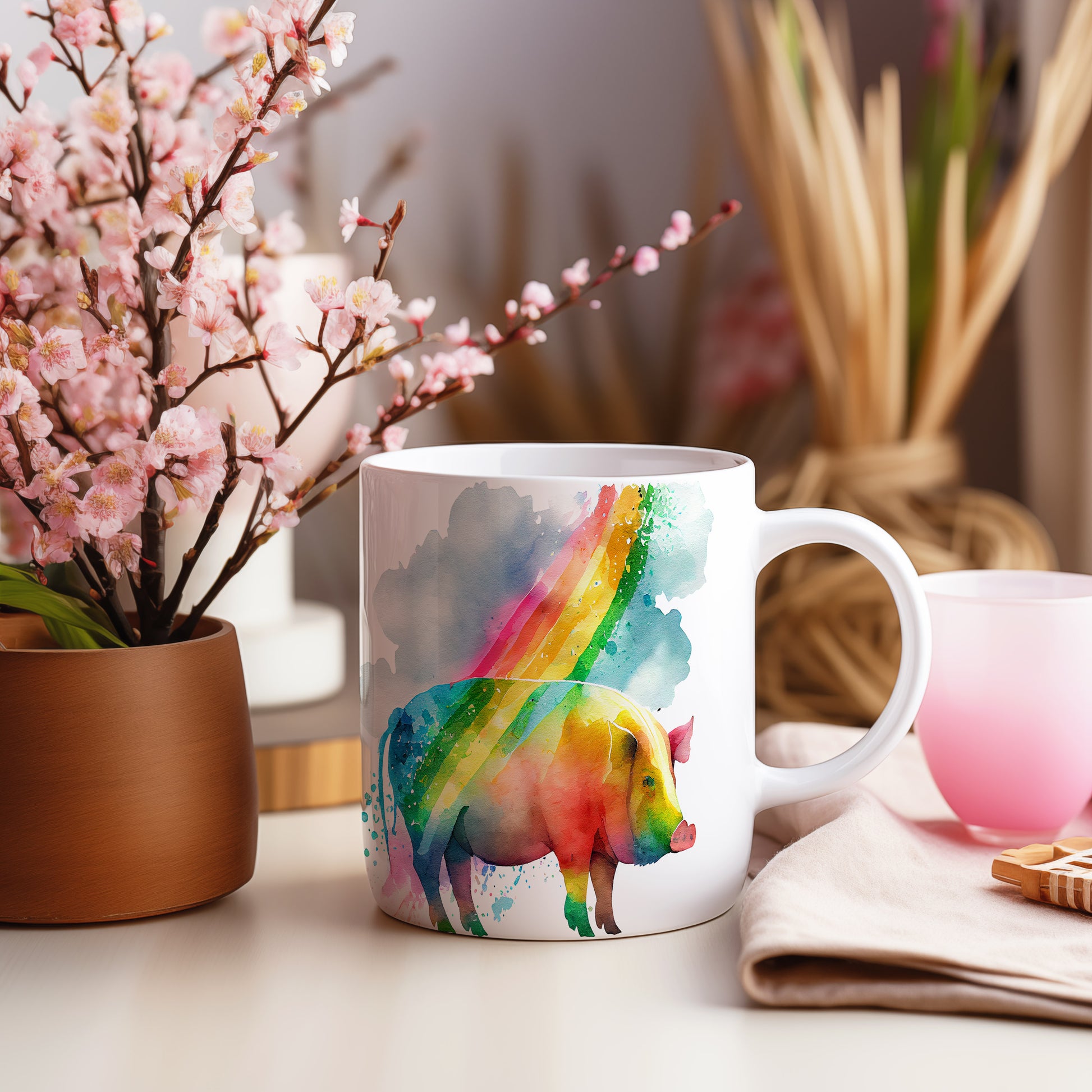 Tento elegantní keramický hrnek s motivem barevného prasete přináší radost a veselí do každého dne. Je ideální jako dárek pro milovníky zvířat nebo pro ty, kteří chtějí obohatit svůj denní rituál. Materiál: keramika. Objem: 330 ml. Vhodné do myčky i mikrovlnky. Používání tohoto hrnku vám zpříjemní každé sousto a doušek.
