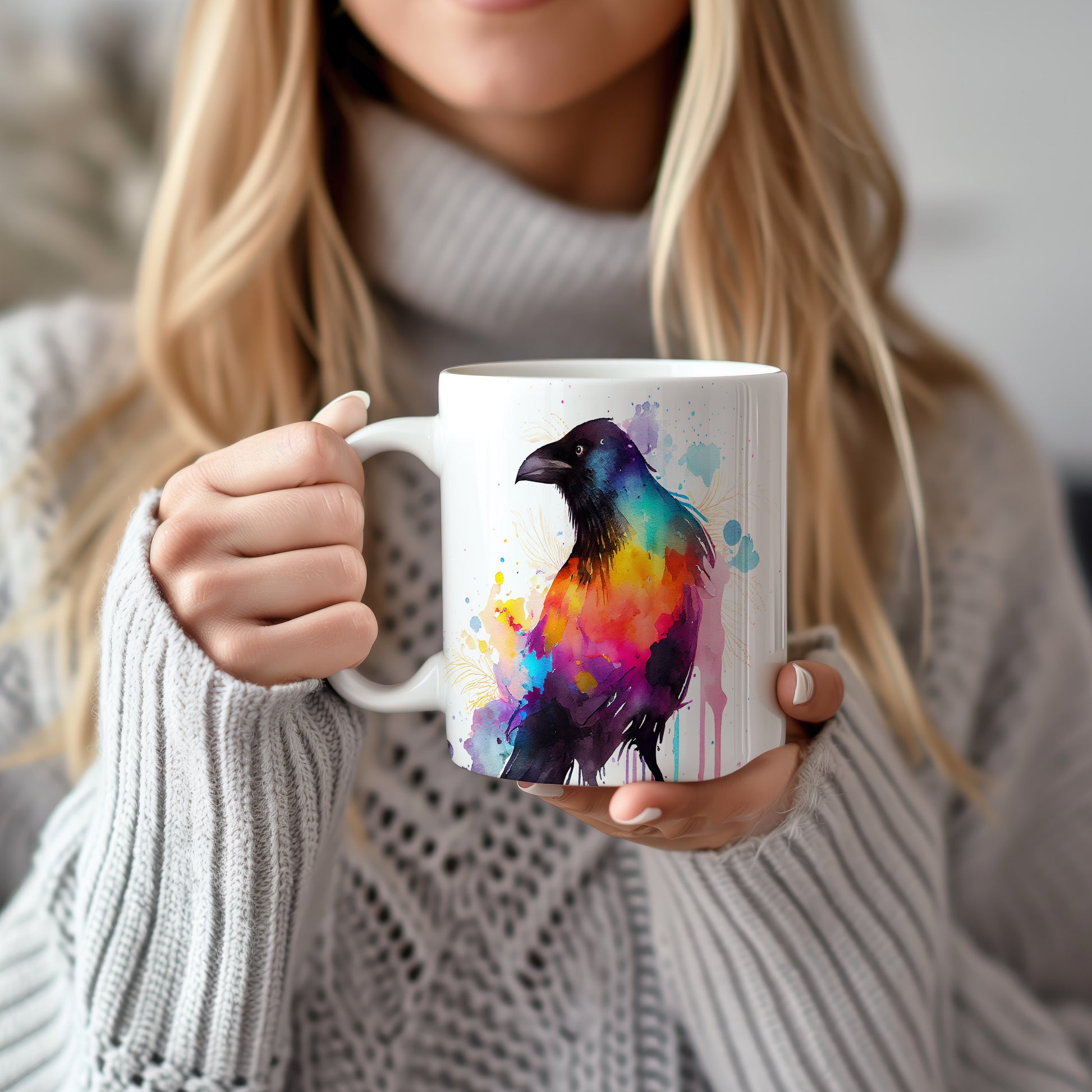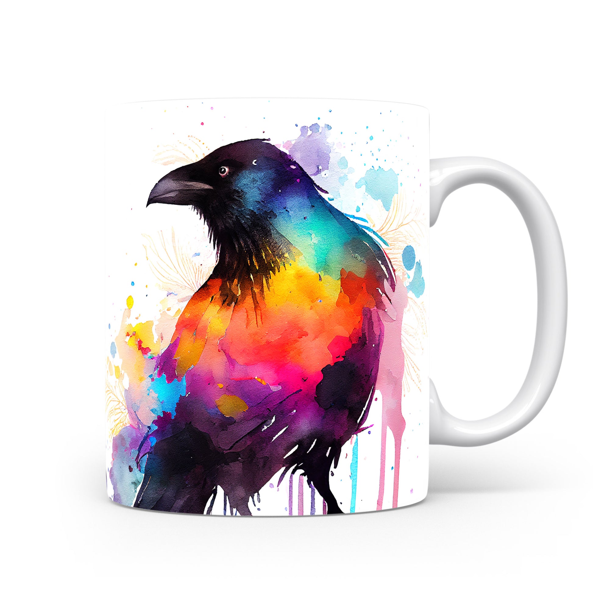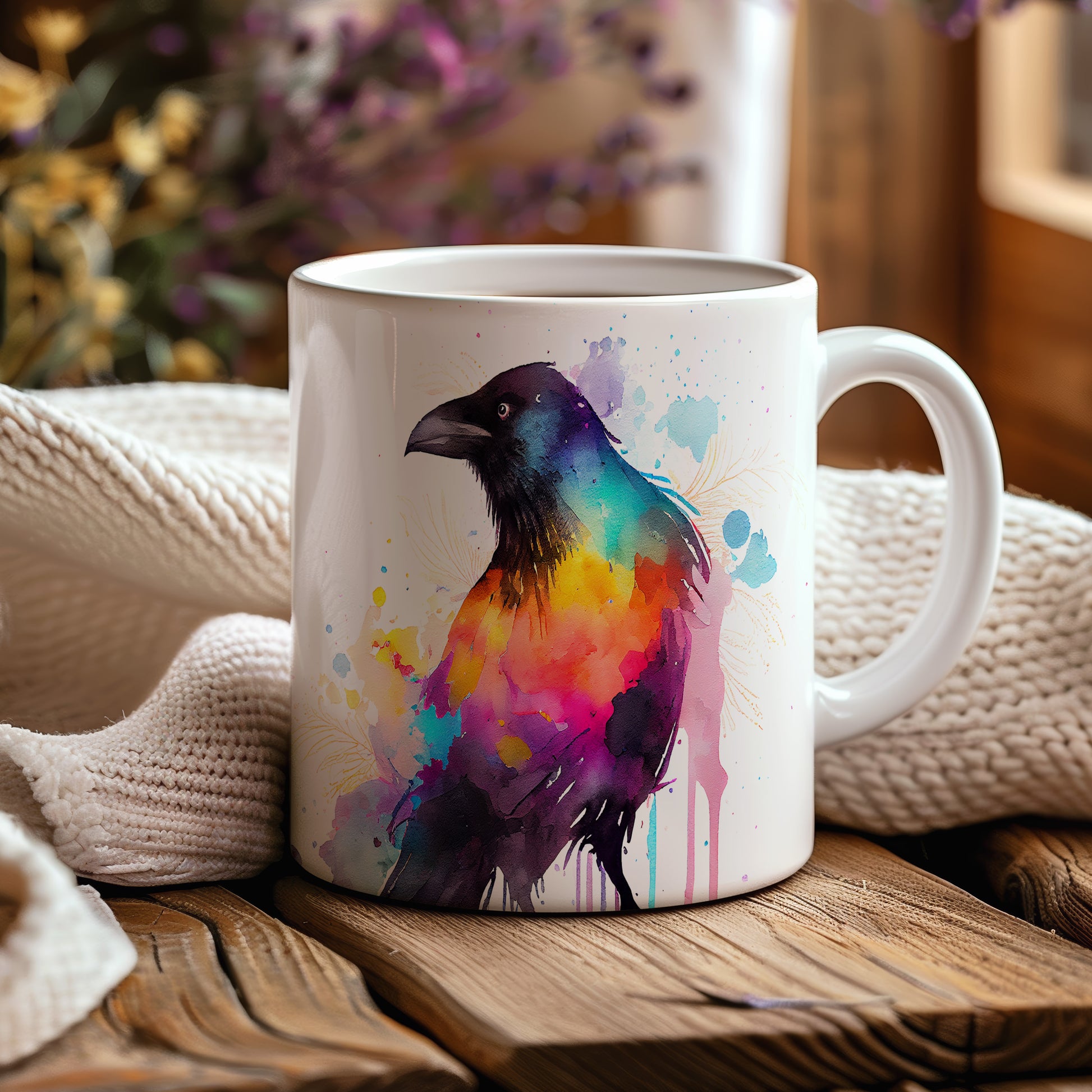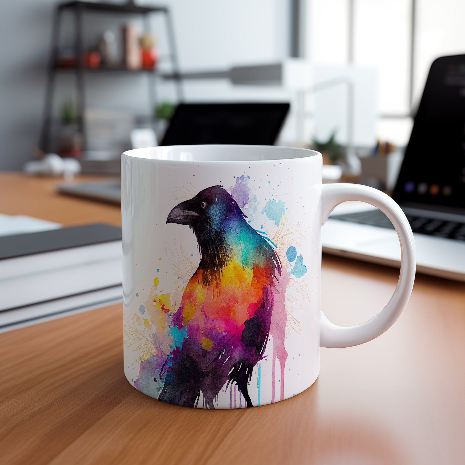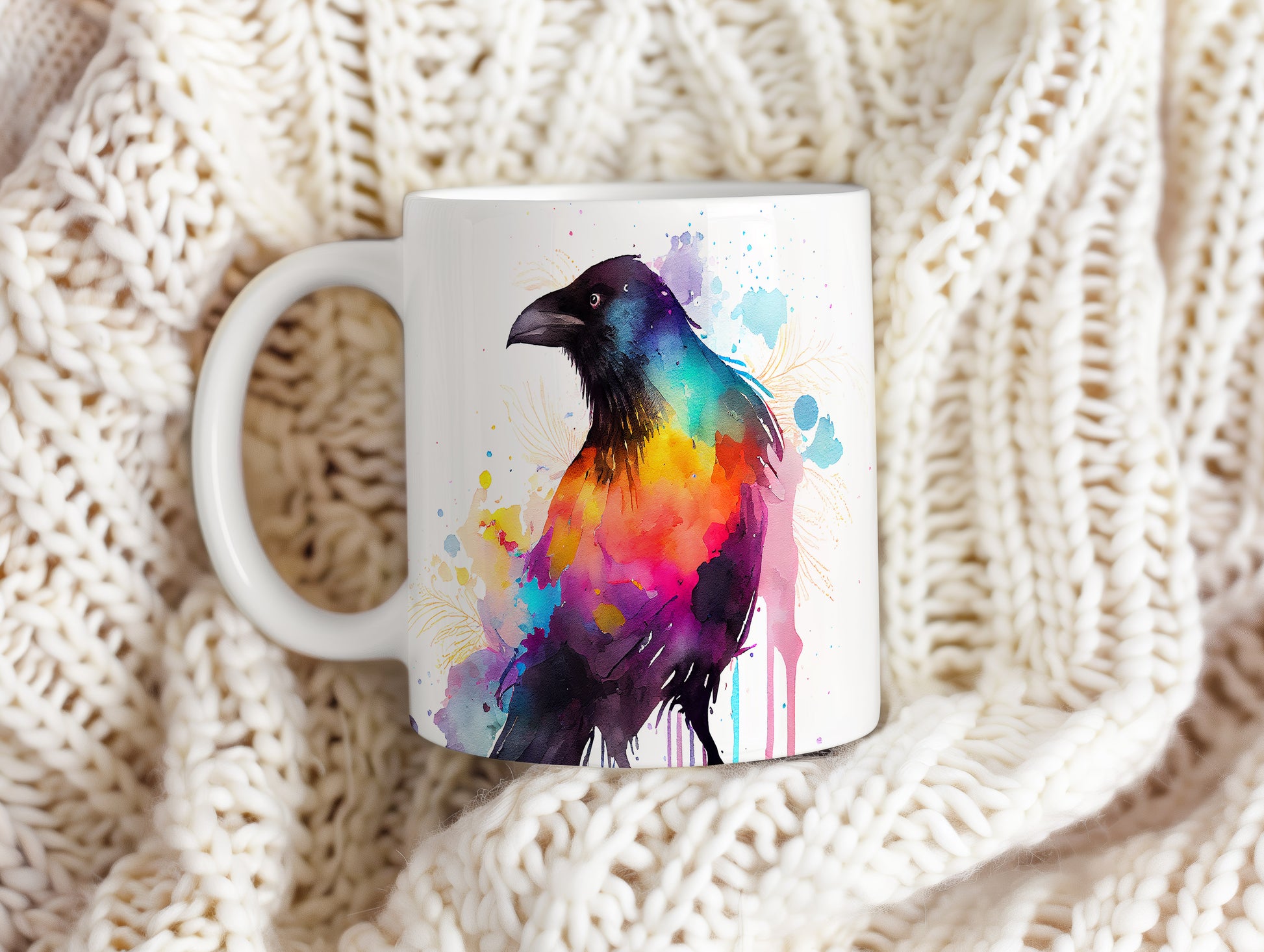 Hrnek s barevným ptákem v akvarelovém stylu – akvarelovým motivem