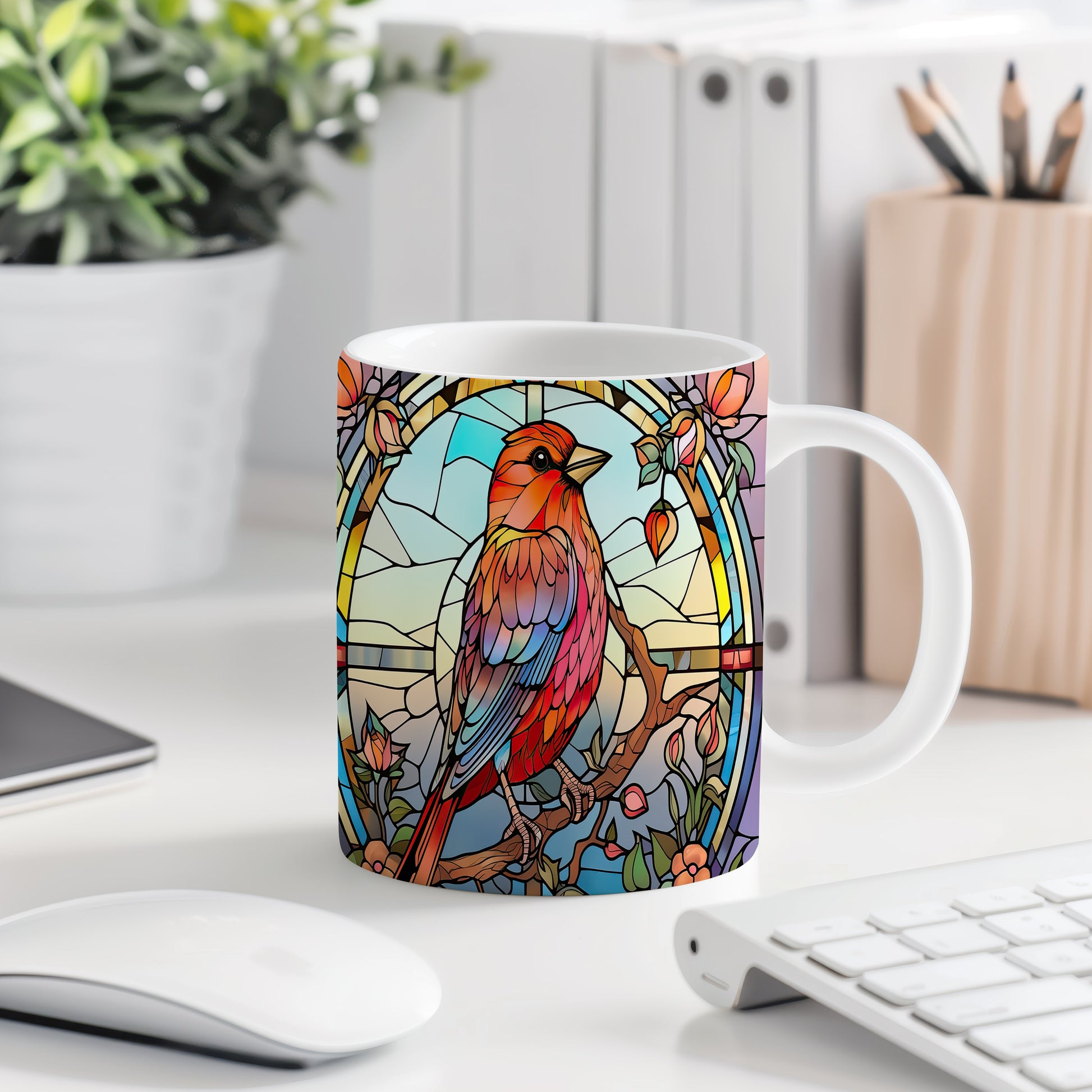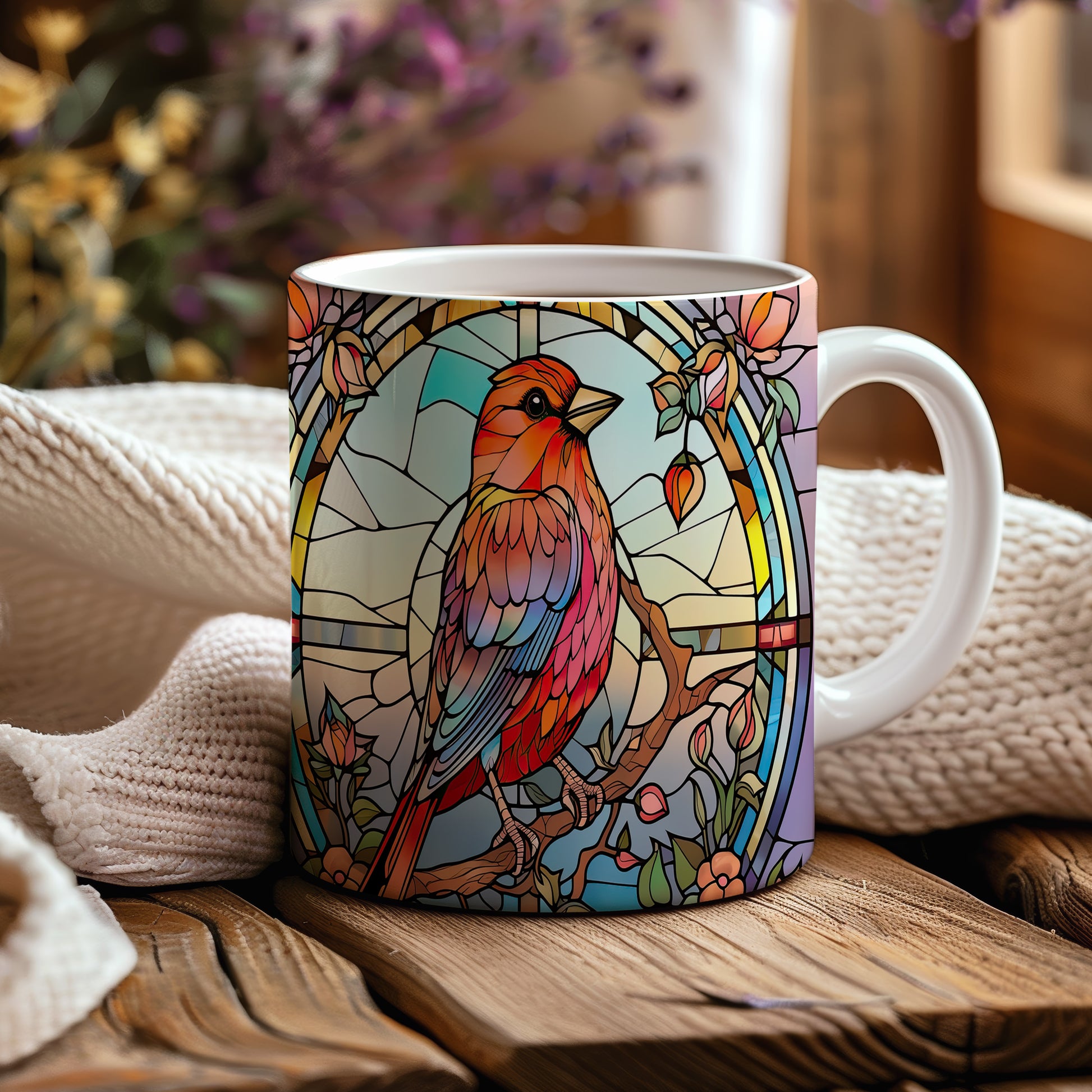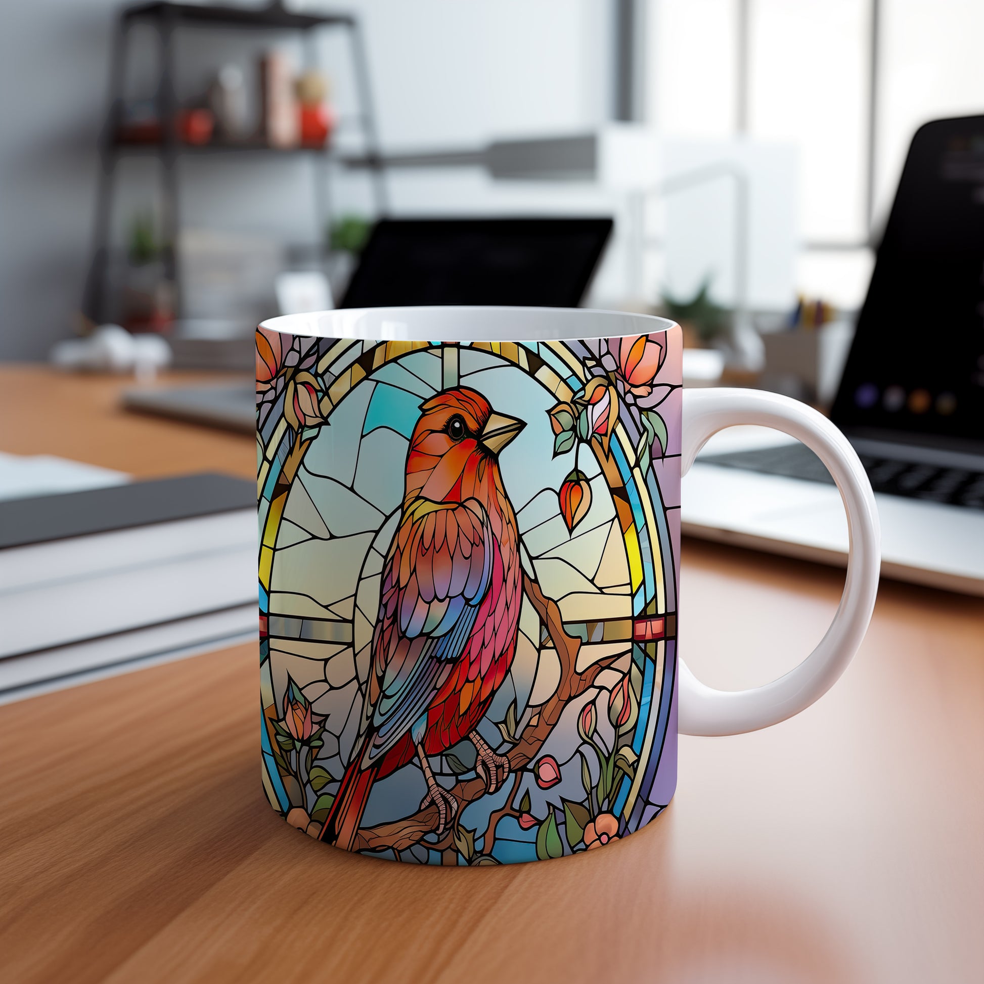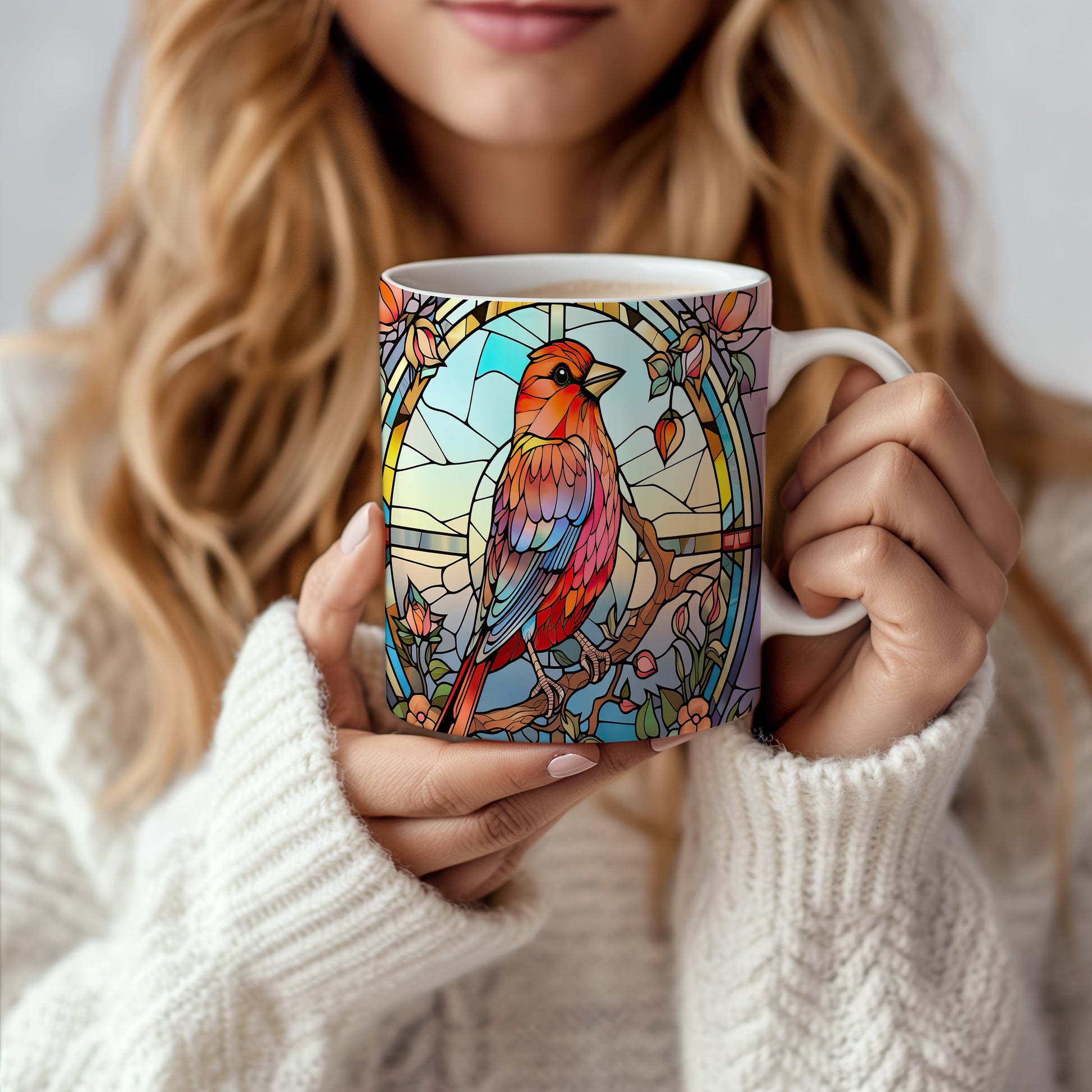 Hrnek s barevným ptákem v uměleckém stylu – výrazným designem