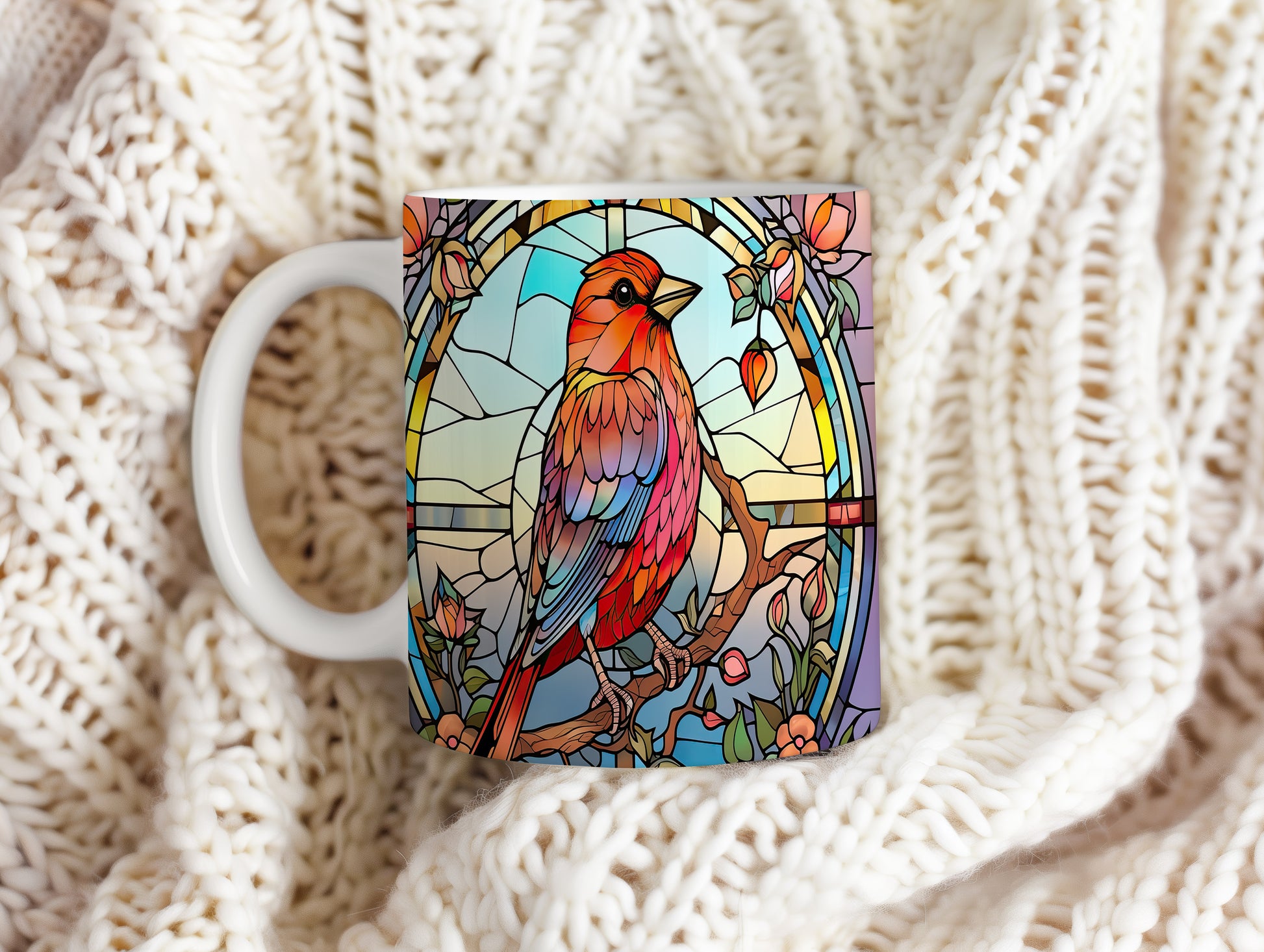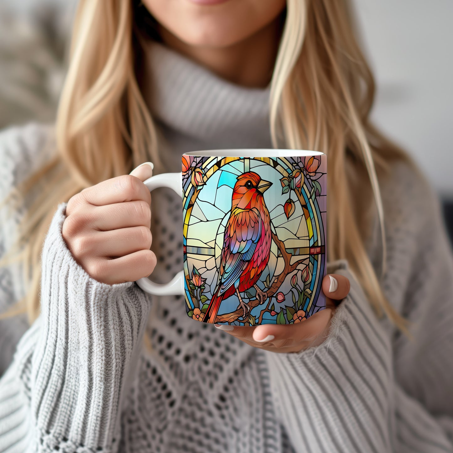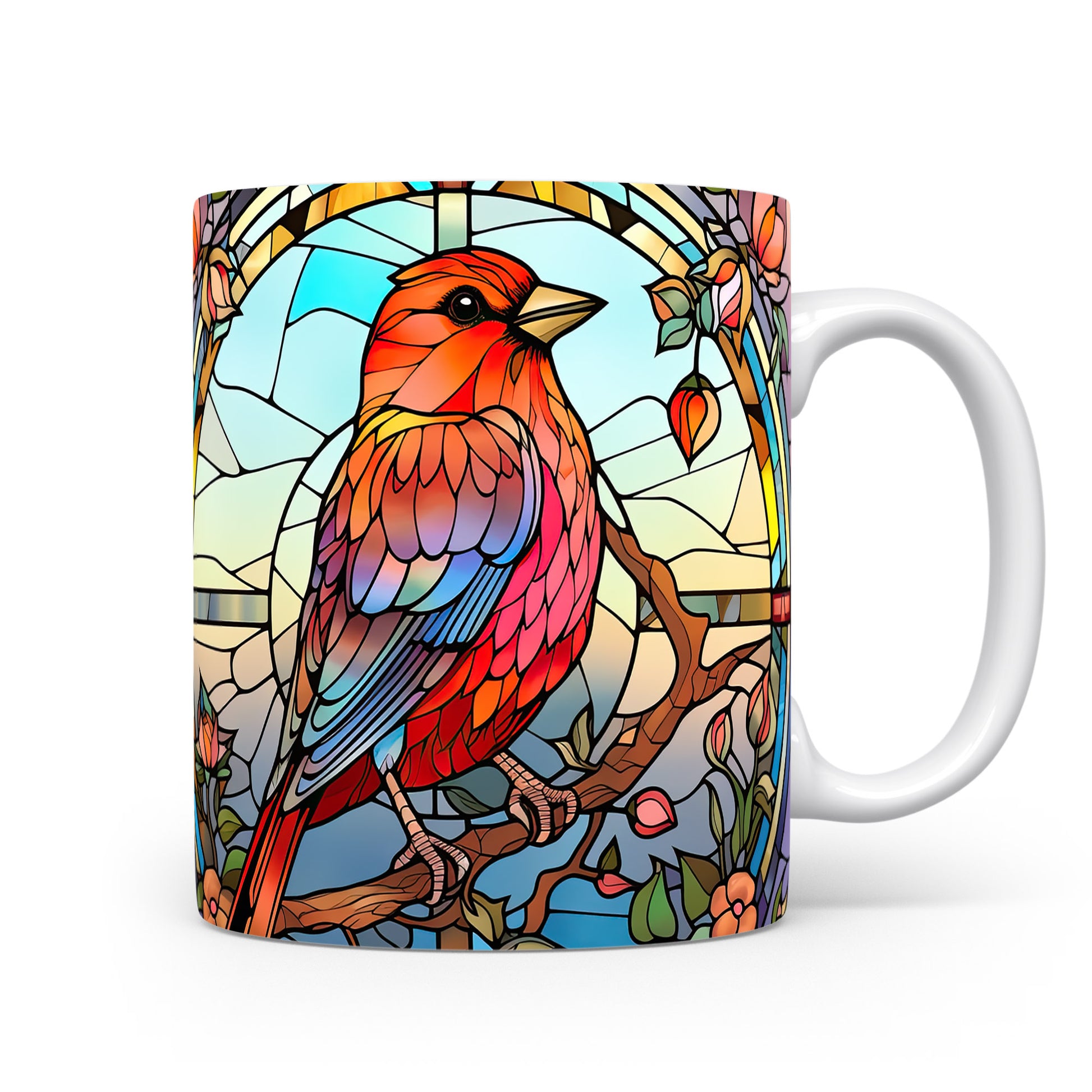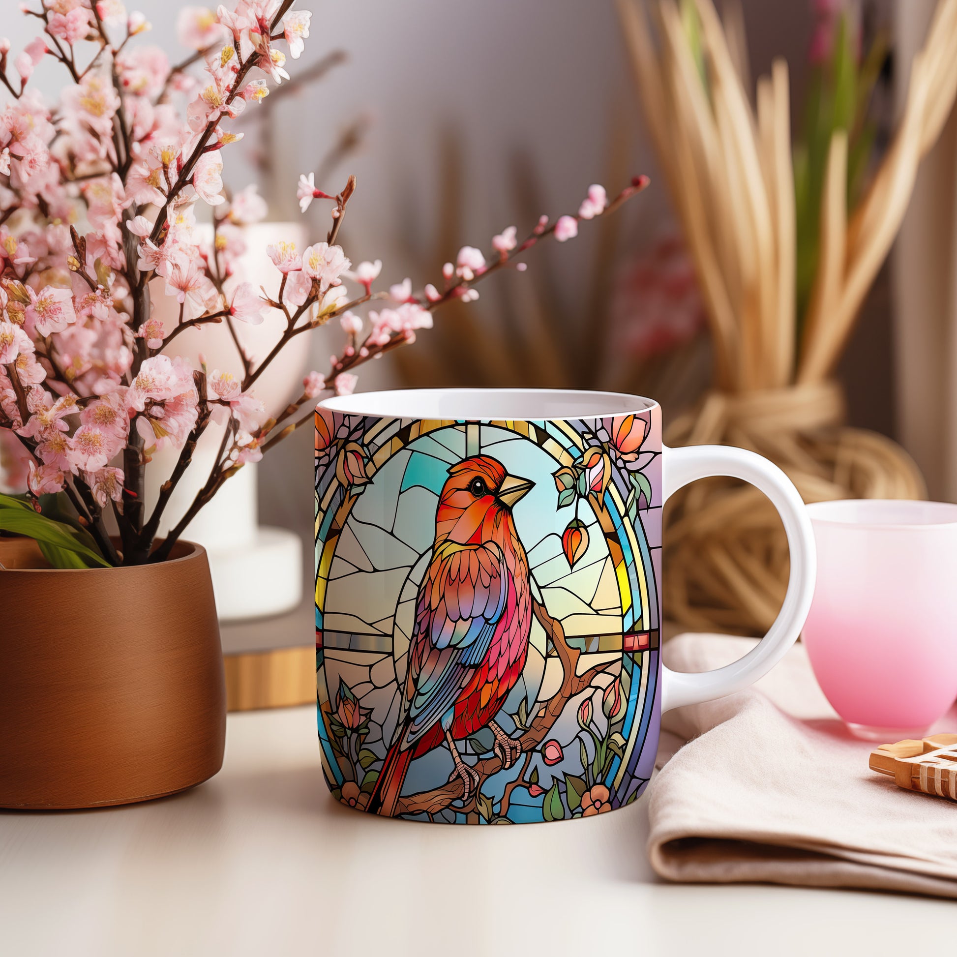 Hrnek s barevným ptákem v uměleckém stylu – výrazným designem