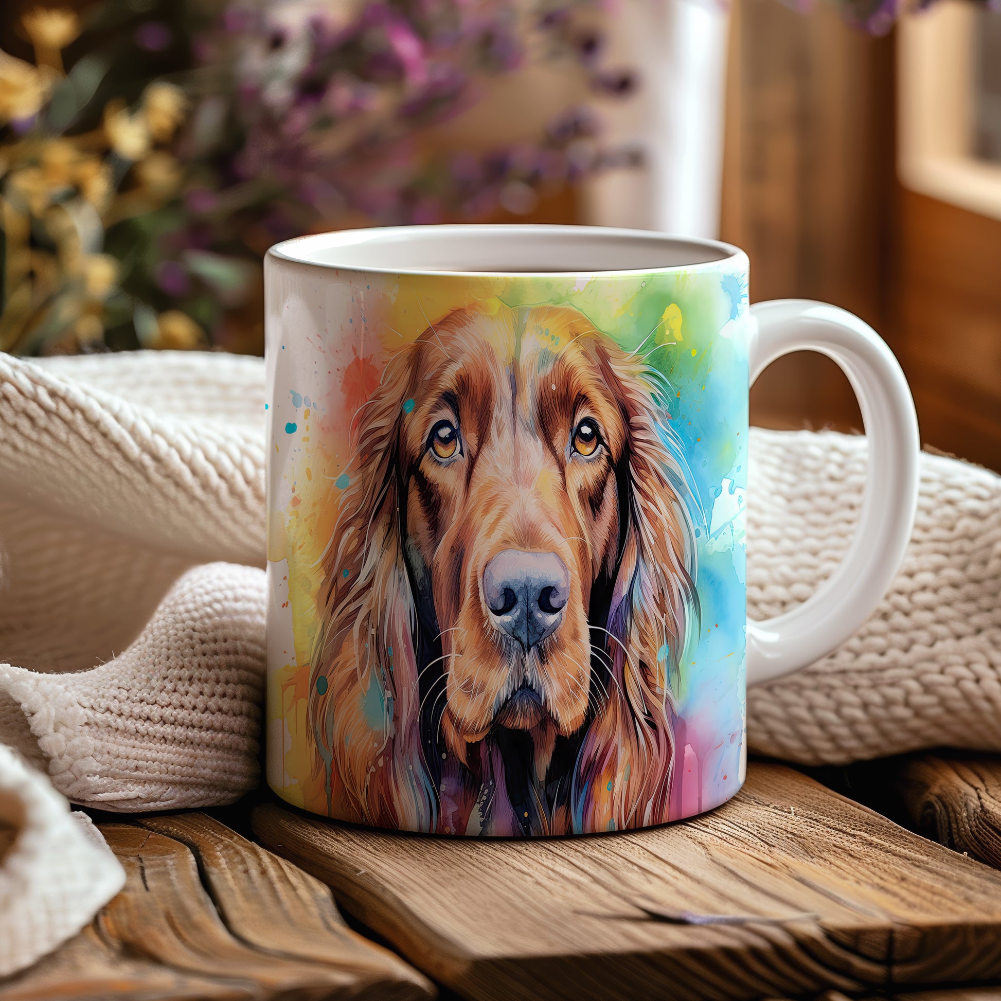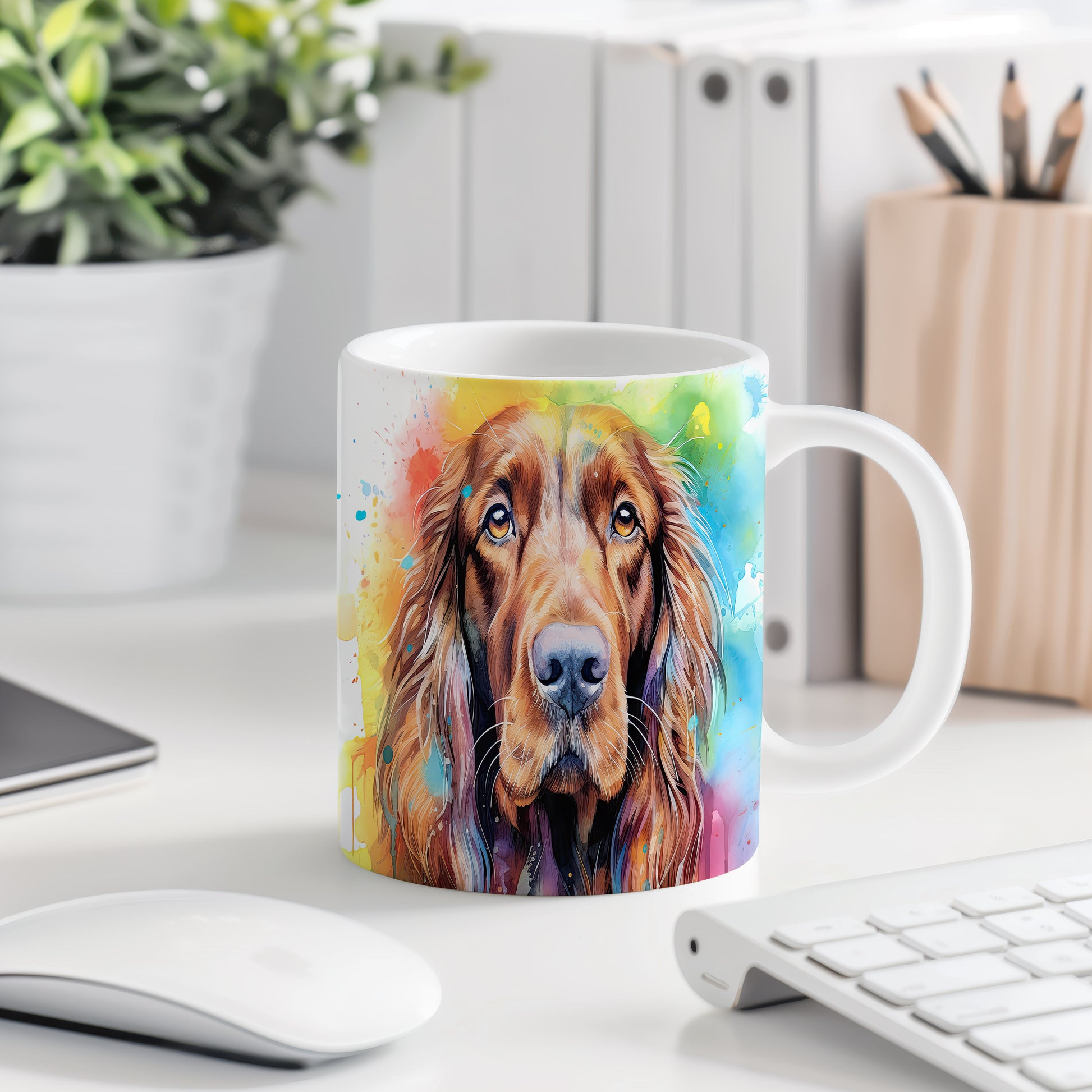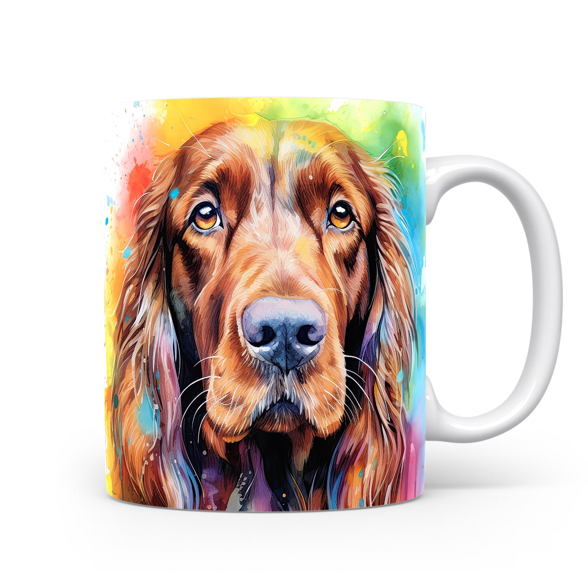 Hrnek s motivem barevného irského španěla přináší radost a pozitivní energii. Je ideální pro milovníky psů a skvělým dárkem pro každého, kdo ocení originální design. Materiál: keramika. Objem: 330 ml. Vhodné do myčky i mikrovlnky. Díky svému provedení se stane oblíbeným společníkem při každém doušku oblíbeného nápoje.