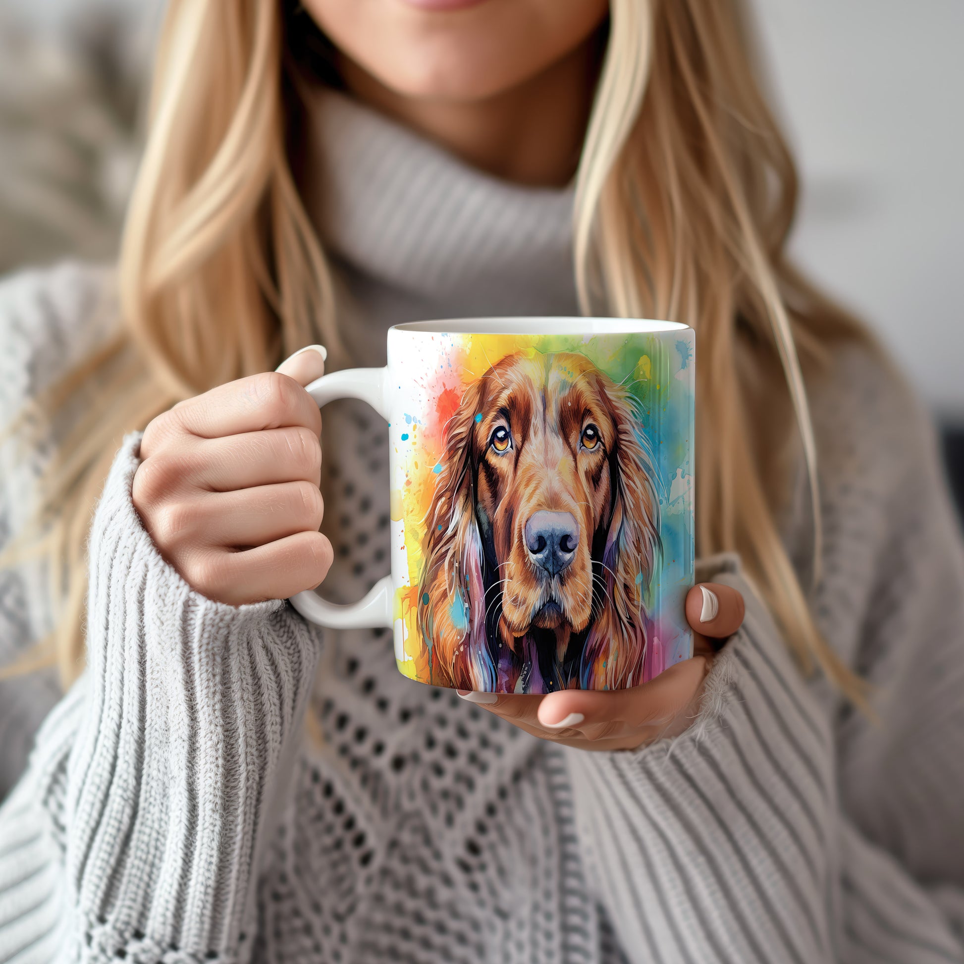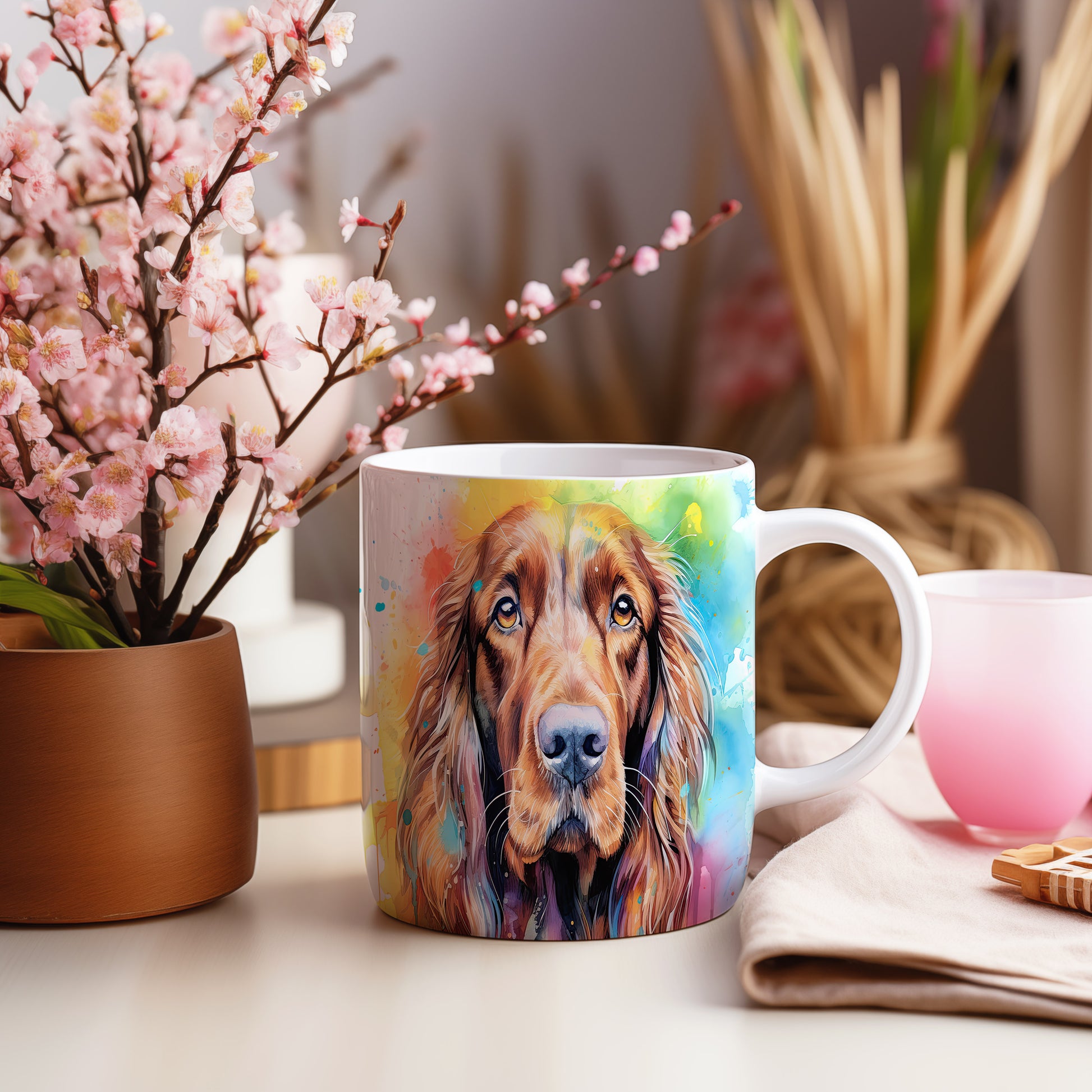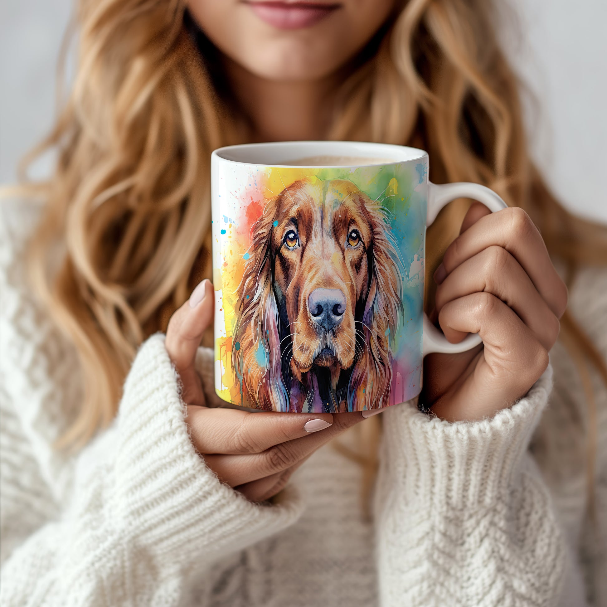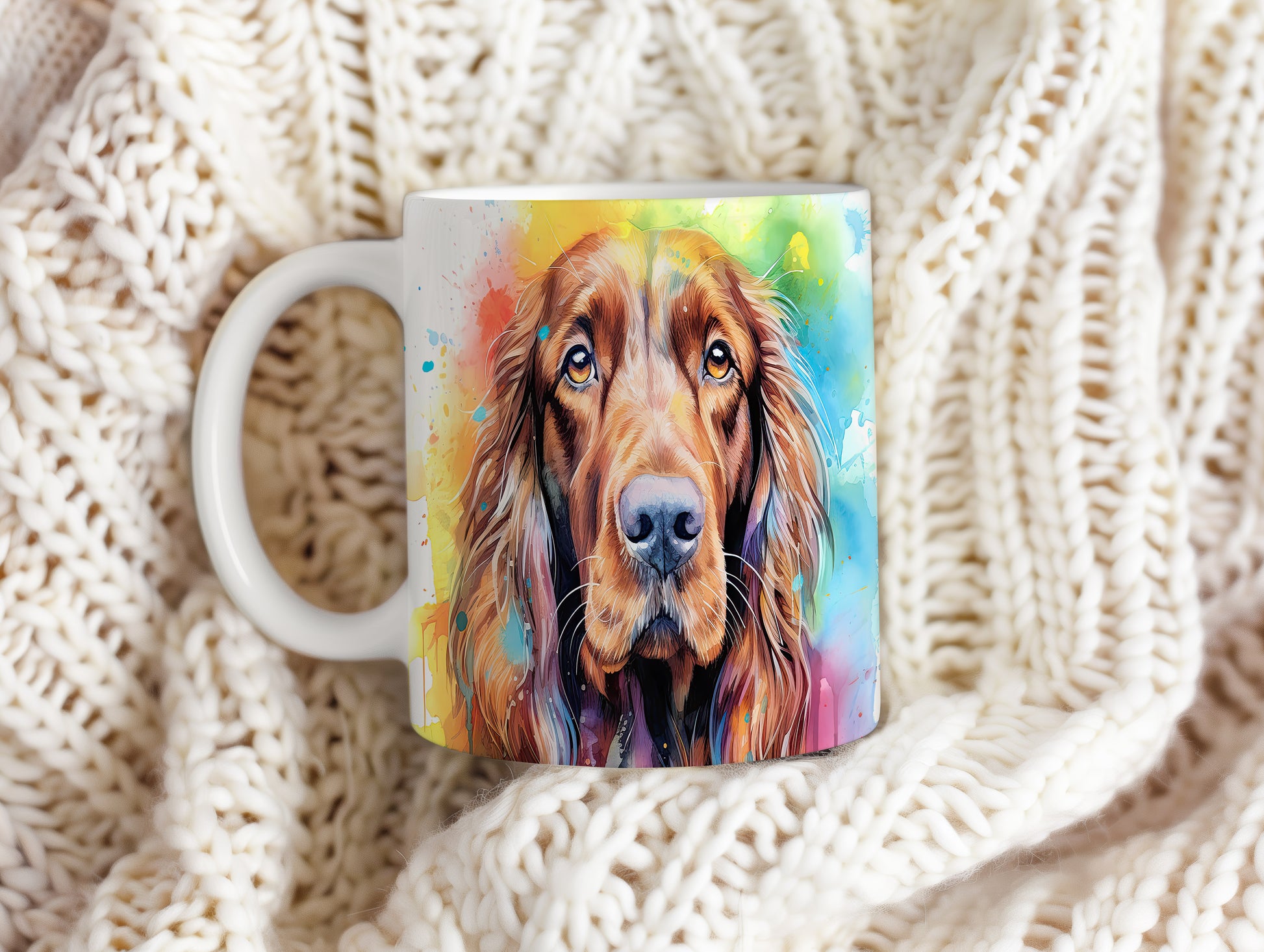 Hrnek s motivem barevného irského španěla přináší radost a pozitivní energii. Je ideální pro milovníky psů a skvělým dárkem pro každého, kdo ocení originální design. Materiál: keramika. Objem: 330 ml. Vhodné do myčky i mikrovlnky. Díky svému provedení se stane oblíbeným společníkem při každém doušku oblíbeného nápoje.