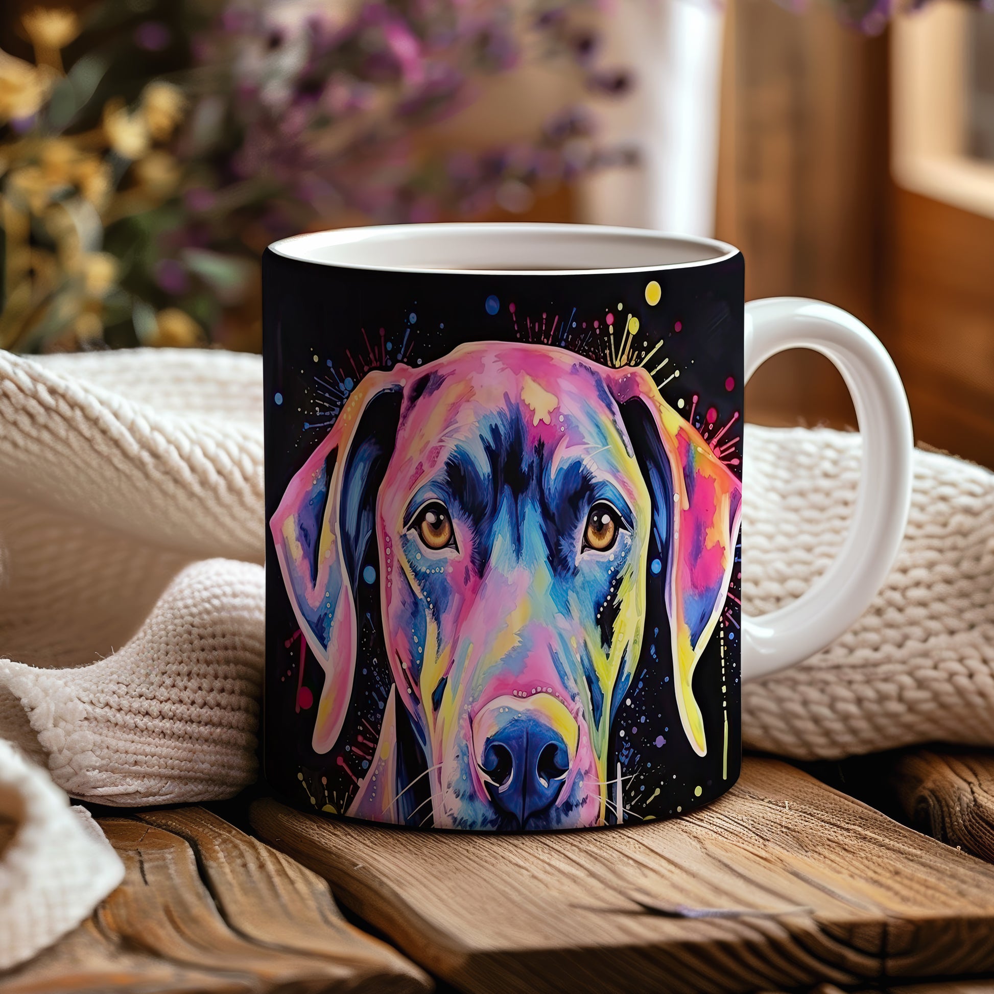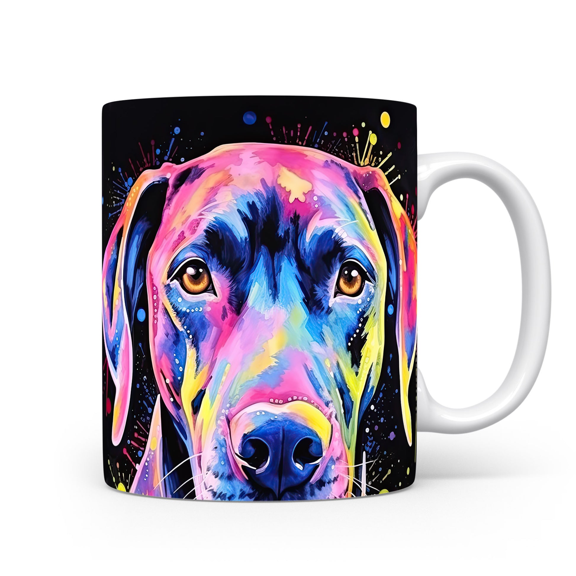 Tento hrnek zobrazuje krásného psa v barevném designu. Je ideální pro milovníky zvířat a skvěle se hodí jako dárek pro přátele či rodinu. Materiál: keramika. Objem: 330 ml. Vhodné do myčky i mikrovlnky. Používání tohoto hrnku vám přinese radost a oživí každý váš den.