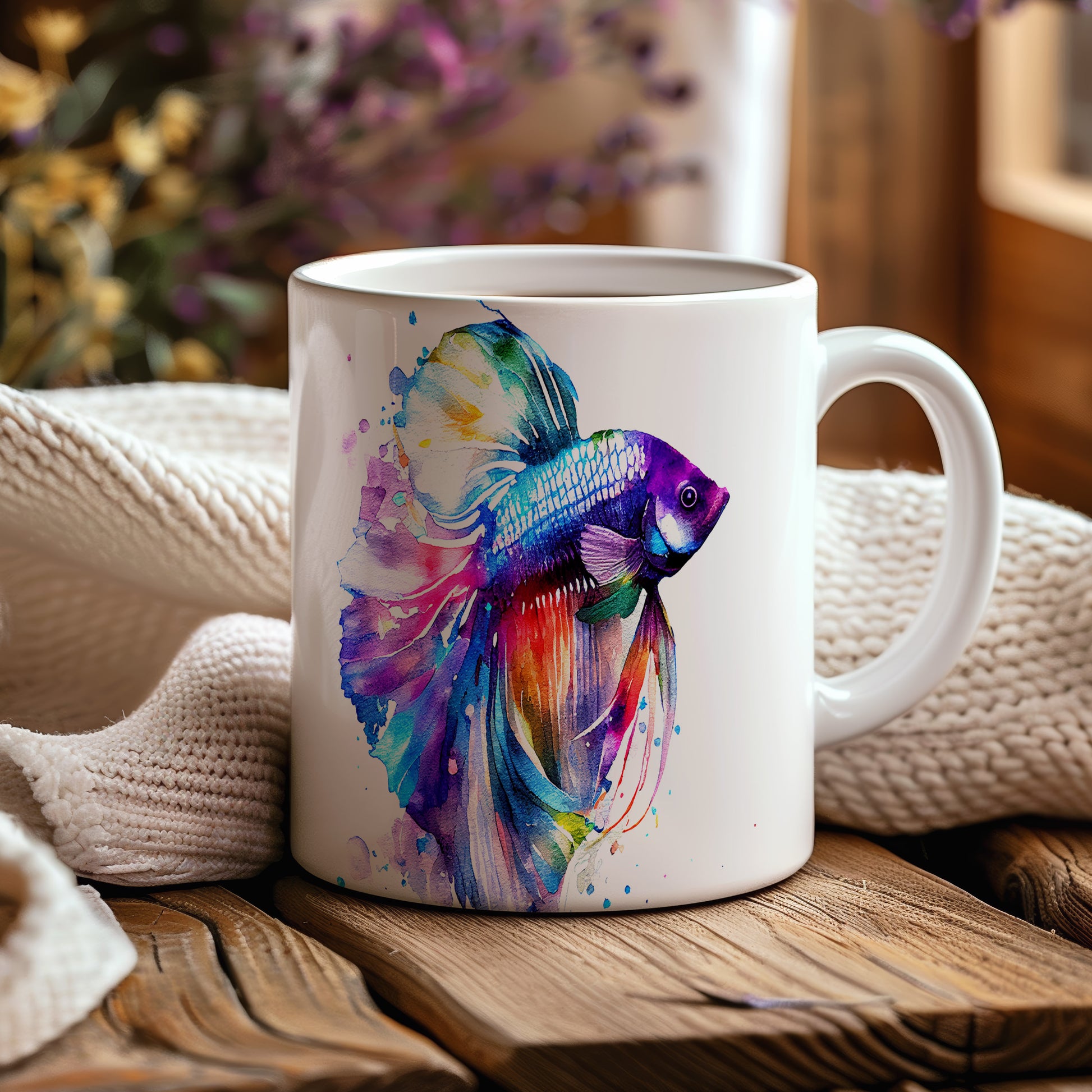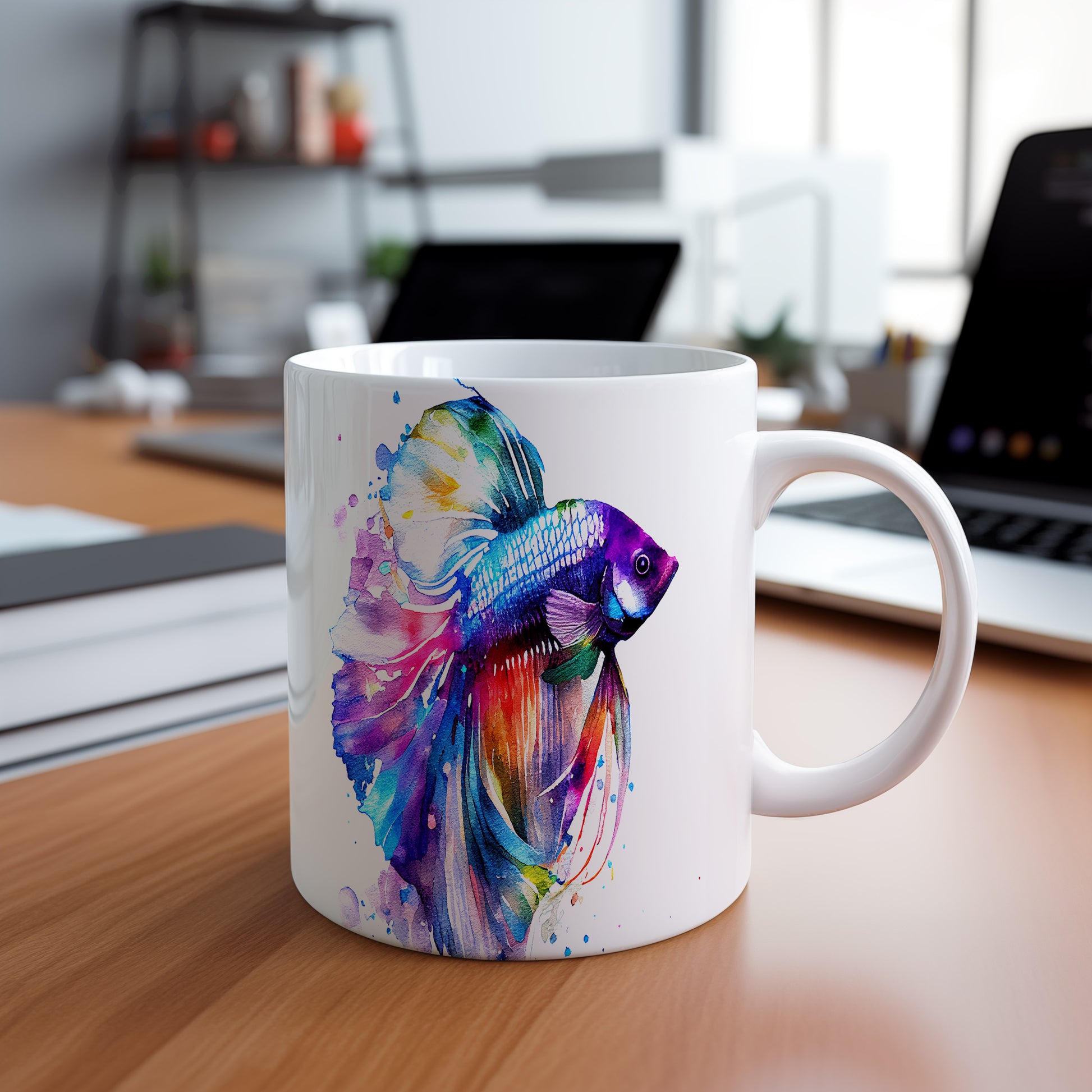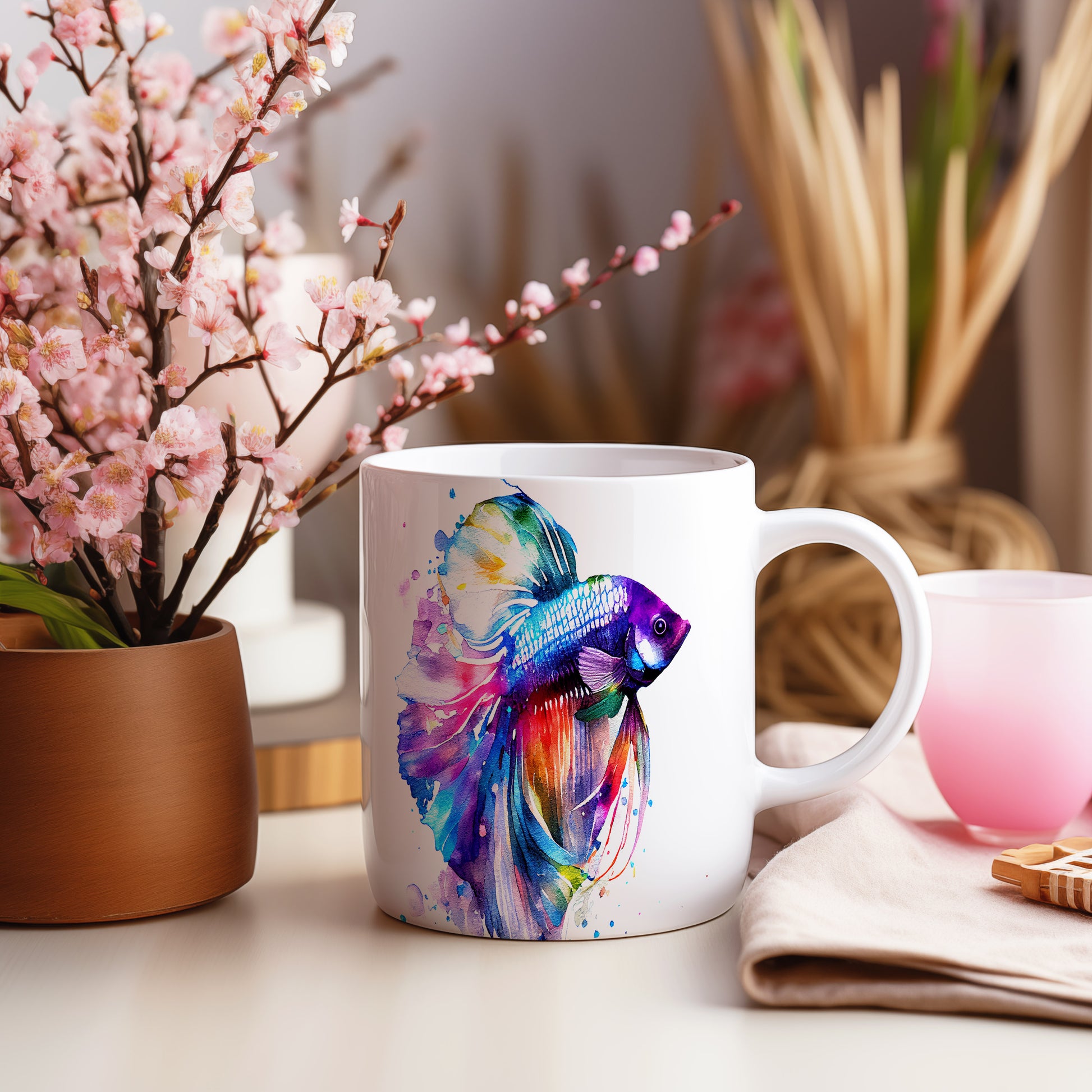 Keramický hrnek s vodovkovým motivem ryby v pestrých barvách. Tento hrnek je ideální pro milovníky přírody a kreativního designu, skvělý jako dárek pro přátele nebo rodinu. Materiál: keramika. Objem: 330 ml. Vhodné do myčky i mikrovlnky. Používání tohoto hrnku přináší radost z každého doušku.