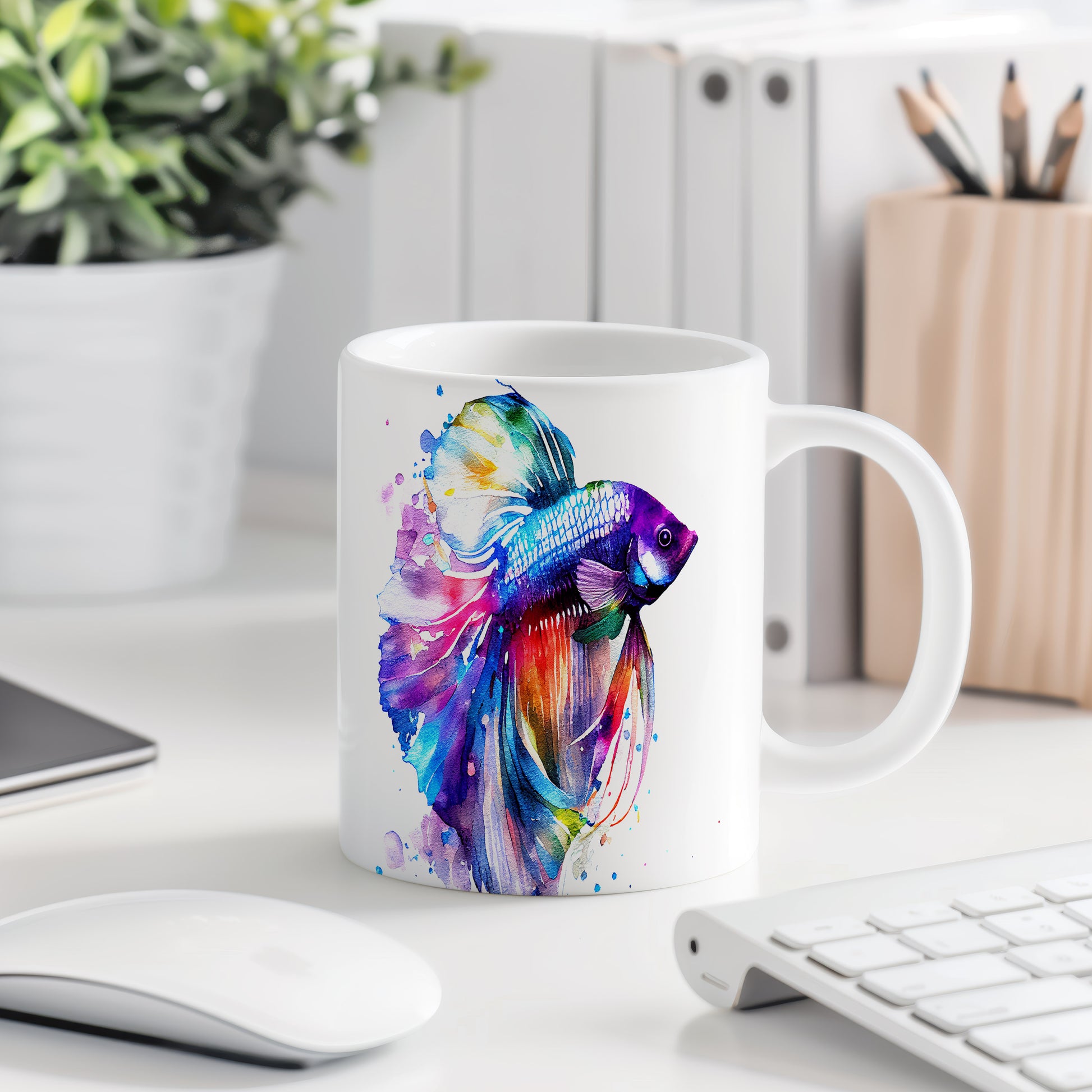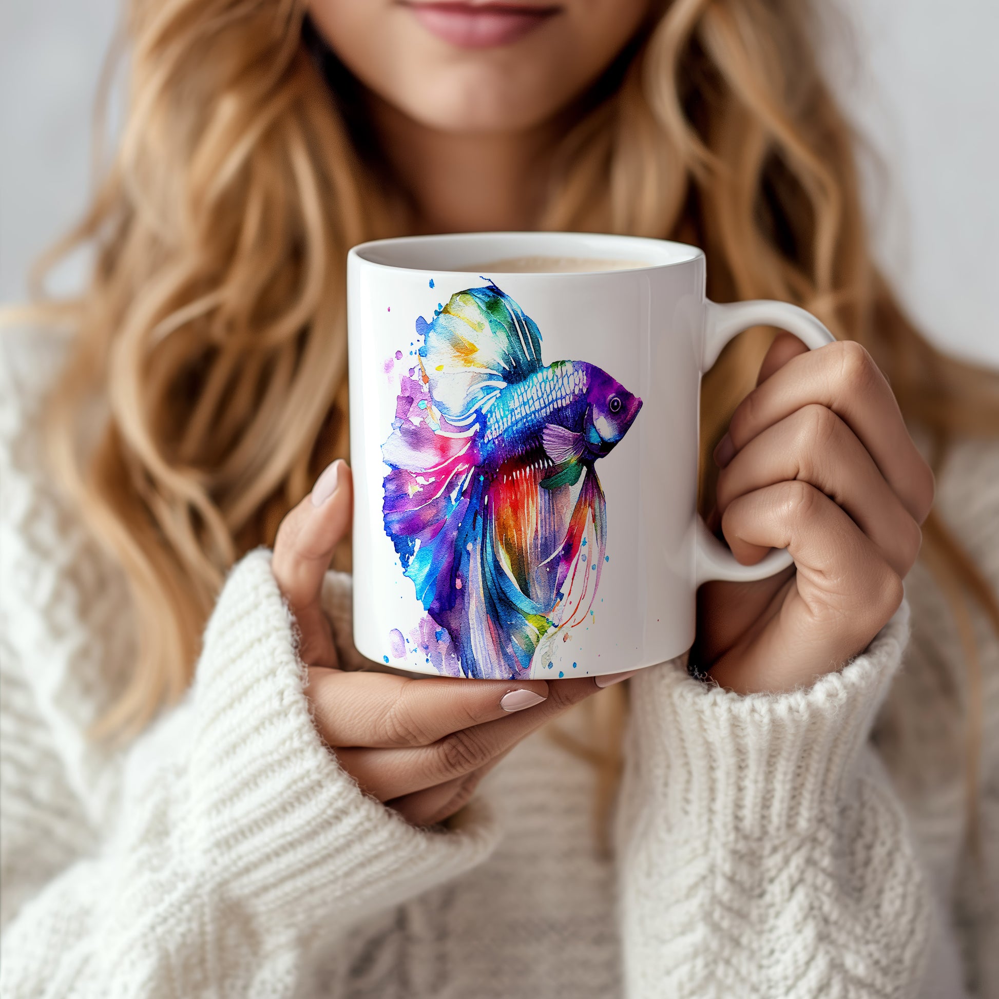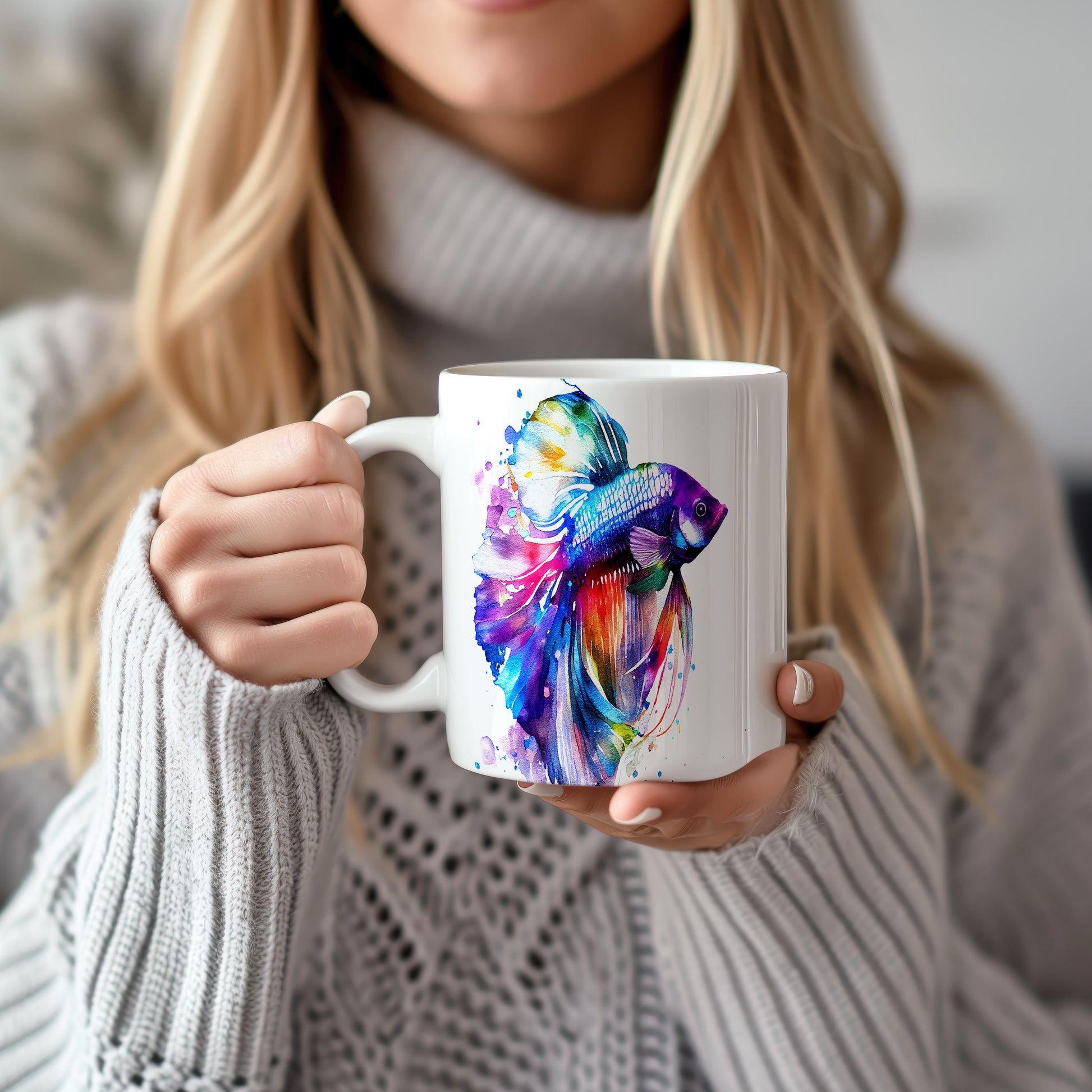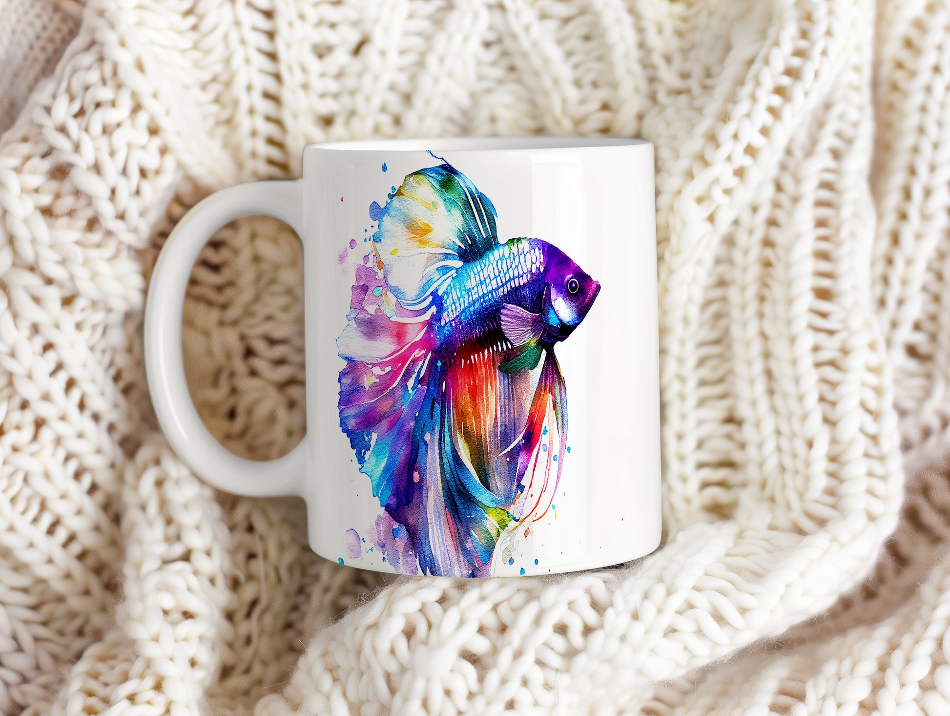 Keramický hrnek s vodovkovým motivem ryby v pestrých barvách. Tento hrnek je ideální pro milovníky přírody a kreativního designu, skvělý jako dárek pro přátele nebo rodinu. Materiál: keramika. Objem: 330 ml. Vhodné do myčky i mikrovlnky. Používání tohoto hrnku přináší radost z každého doušku.