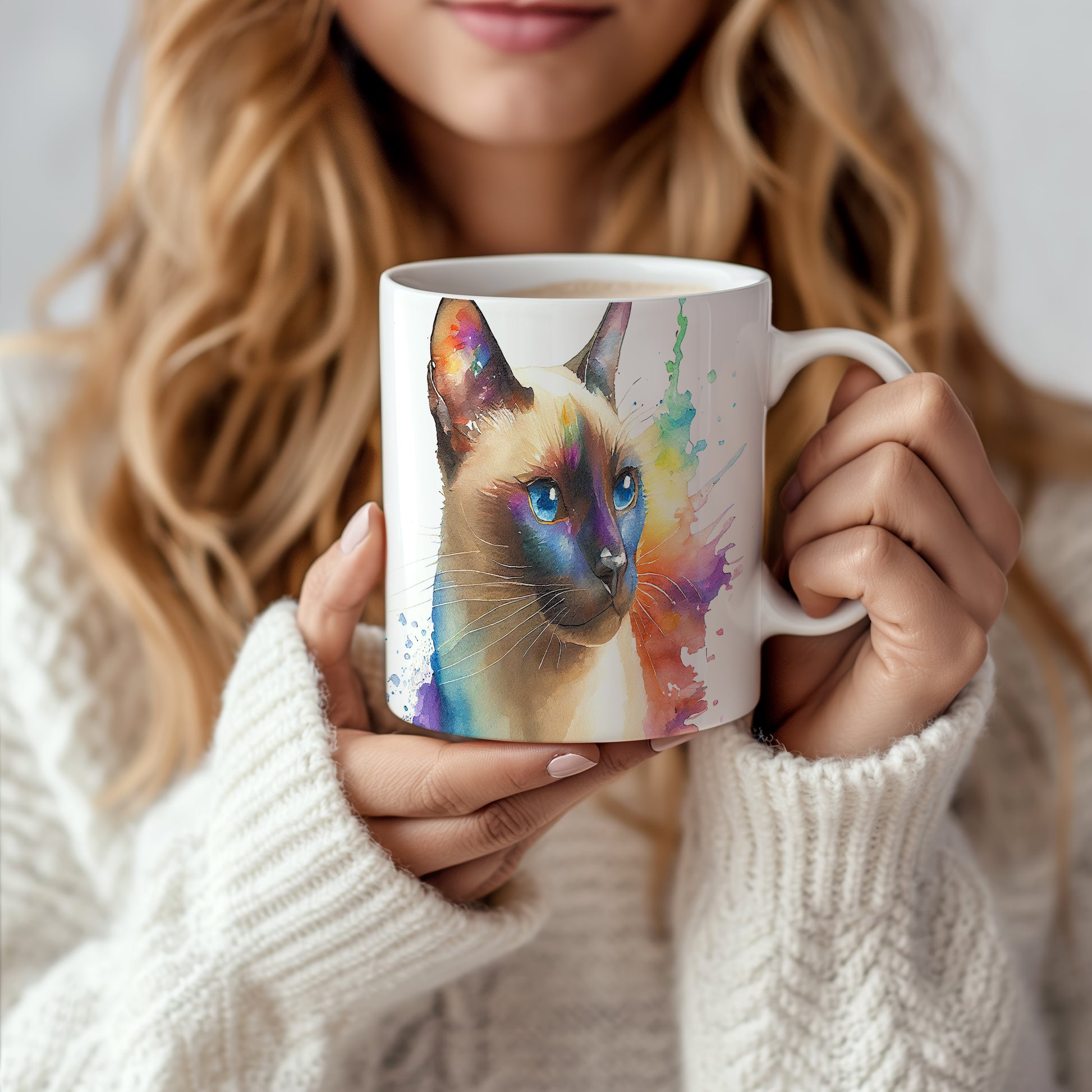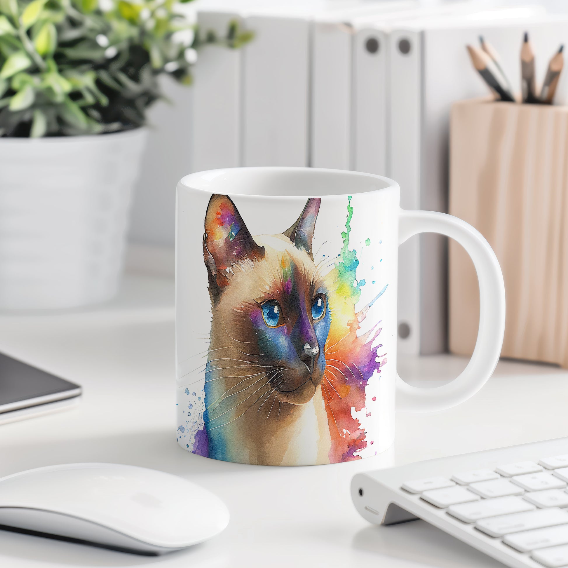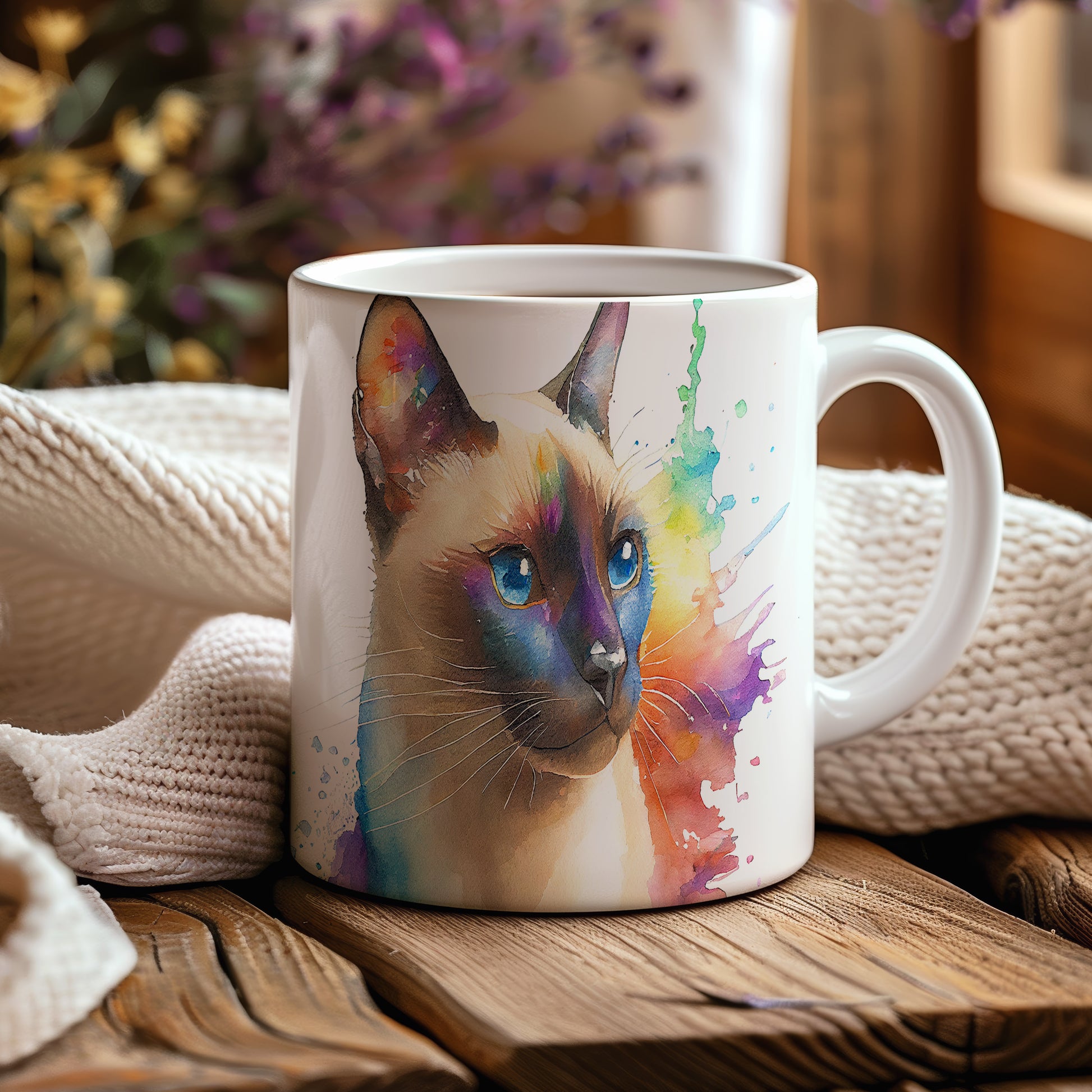 Hrnek s barevným siamským kocourem je stylový kousek s originální ilustrací. Tento hrnek potěší milovníky koček a skvěle se hodí jako dárek pro přátele nebo rodinu. Materiál: keramika. Objem: 330 ml. Vhodné do myčky i mikrovlnky. Díky svému designu přináší radost do každodenního pití.