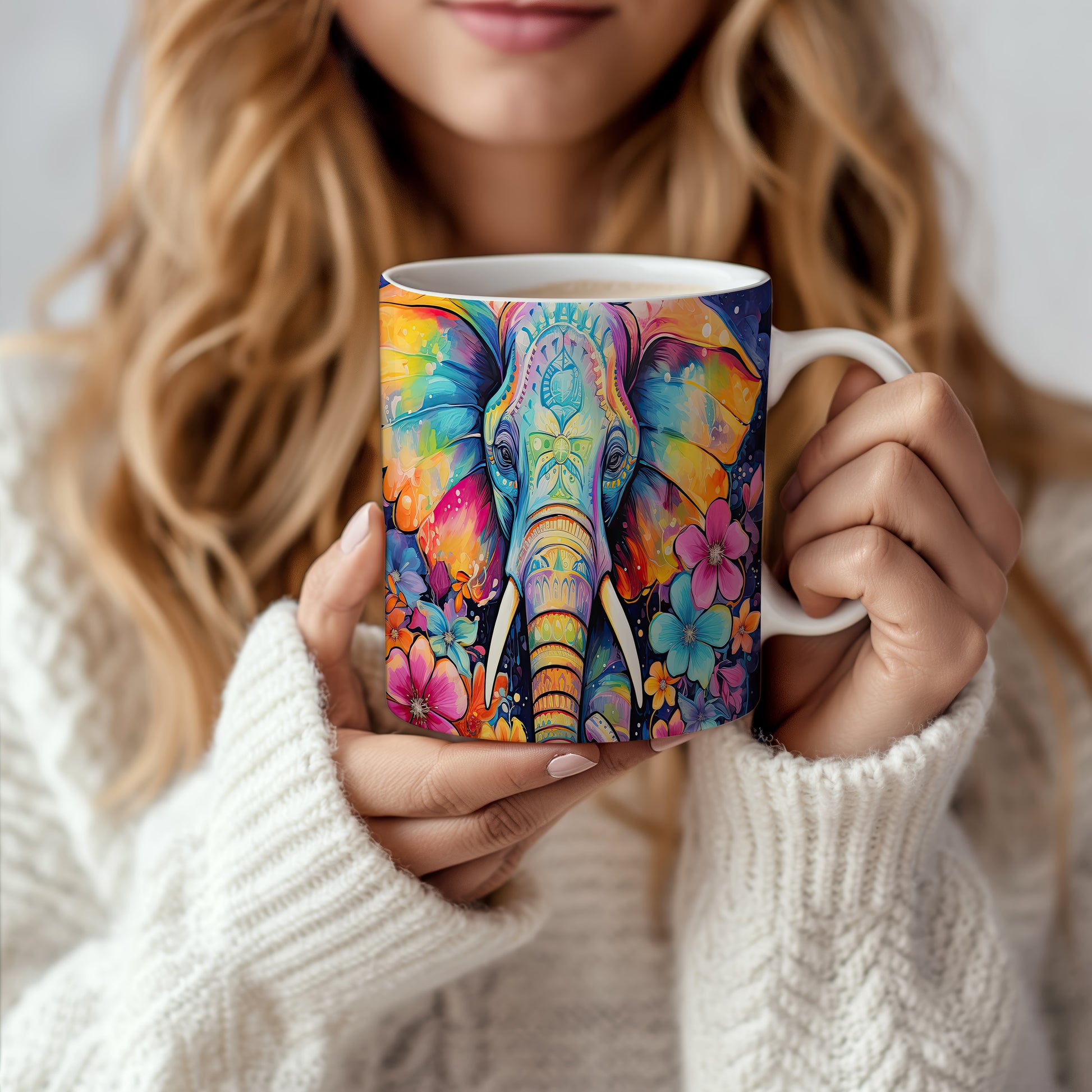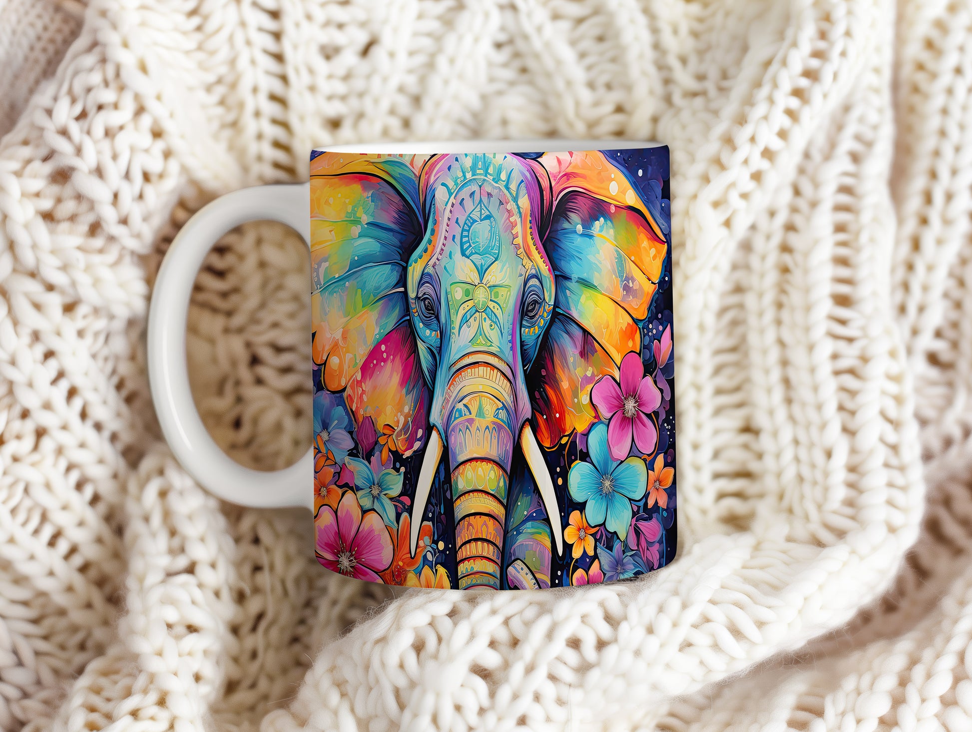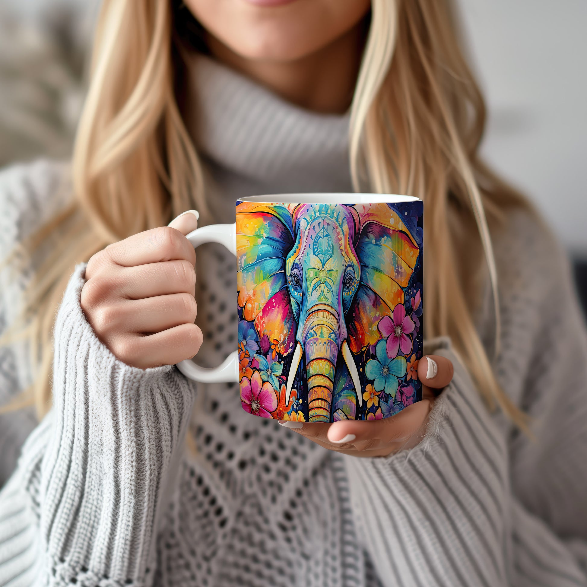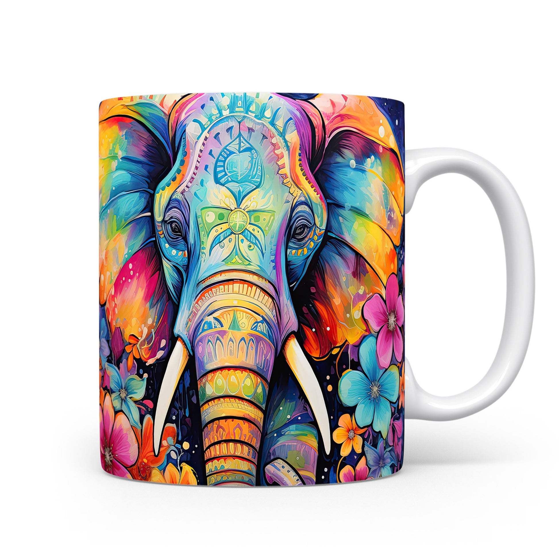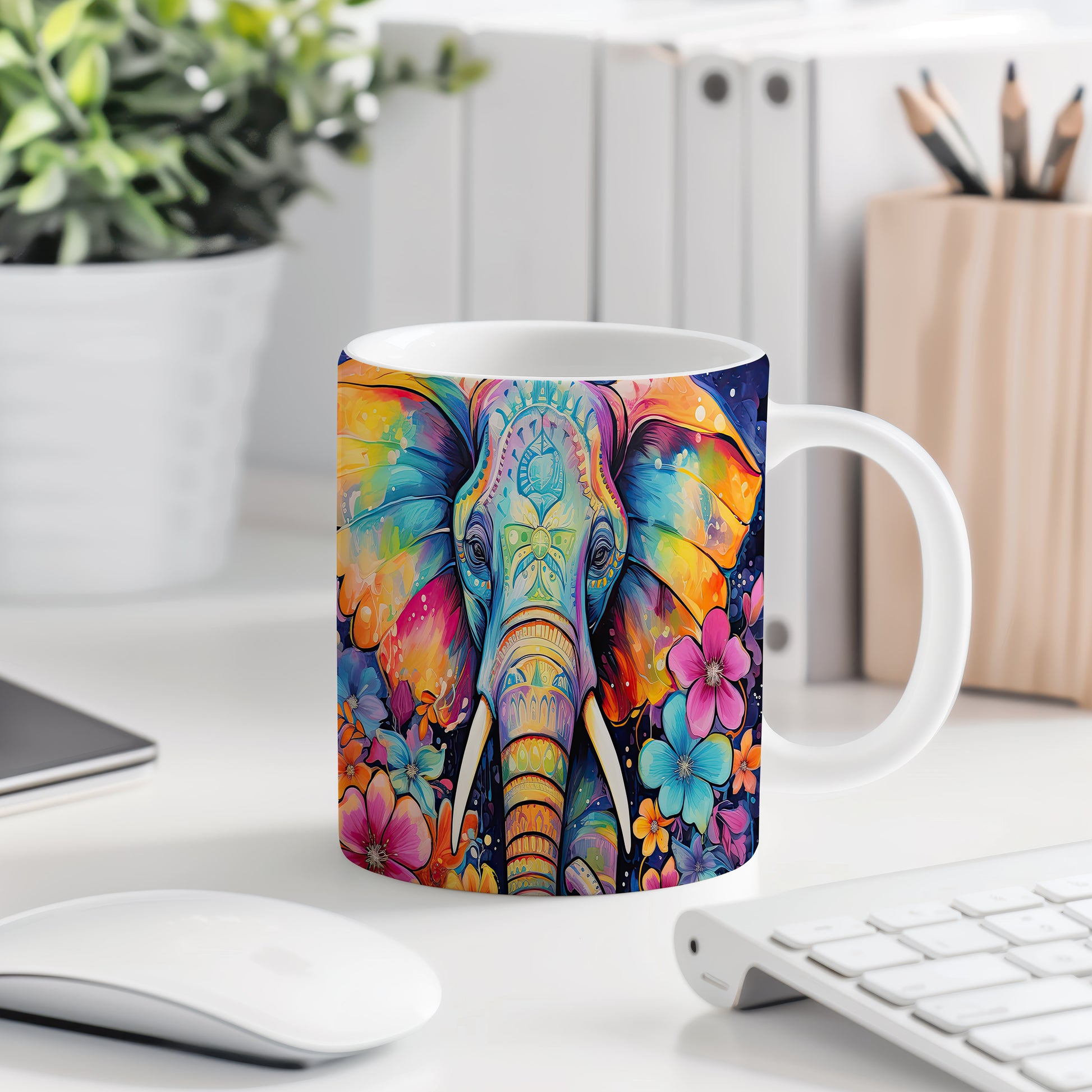 Tento hrnek z keramiky nese krásný motiv slona obklopeného barevnými květinami. Je ideální pro milovníky přírody a zvířat, skvělý tip na dárek pro přátele nebo rodinu. Materiál: keramika. Objem: 330 ml. Vhodné do myčky i mikrovlnky. Používání tohoto hrnku přináší radost z každého doušku.