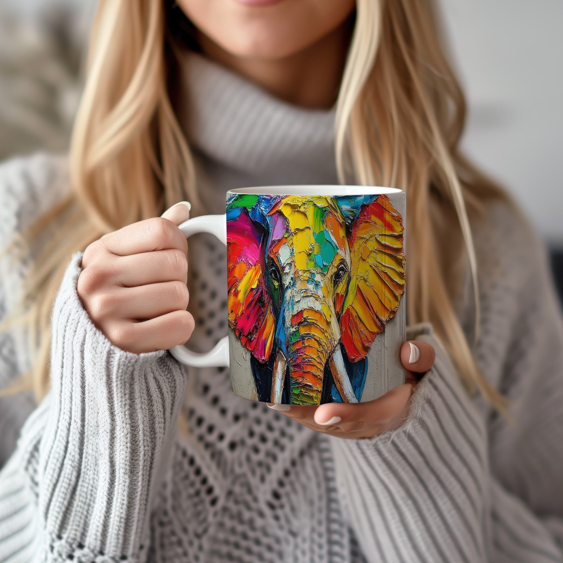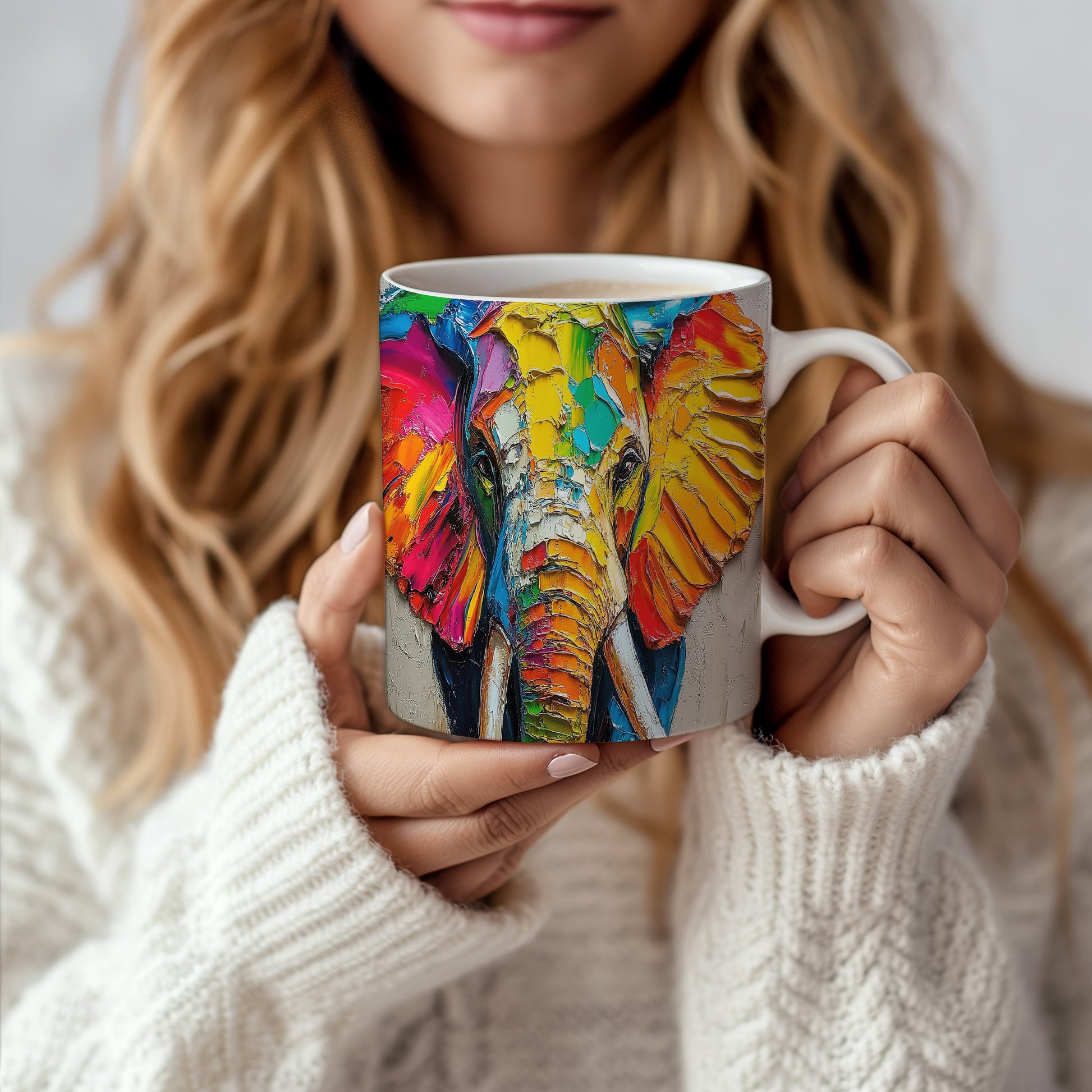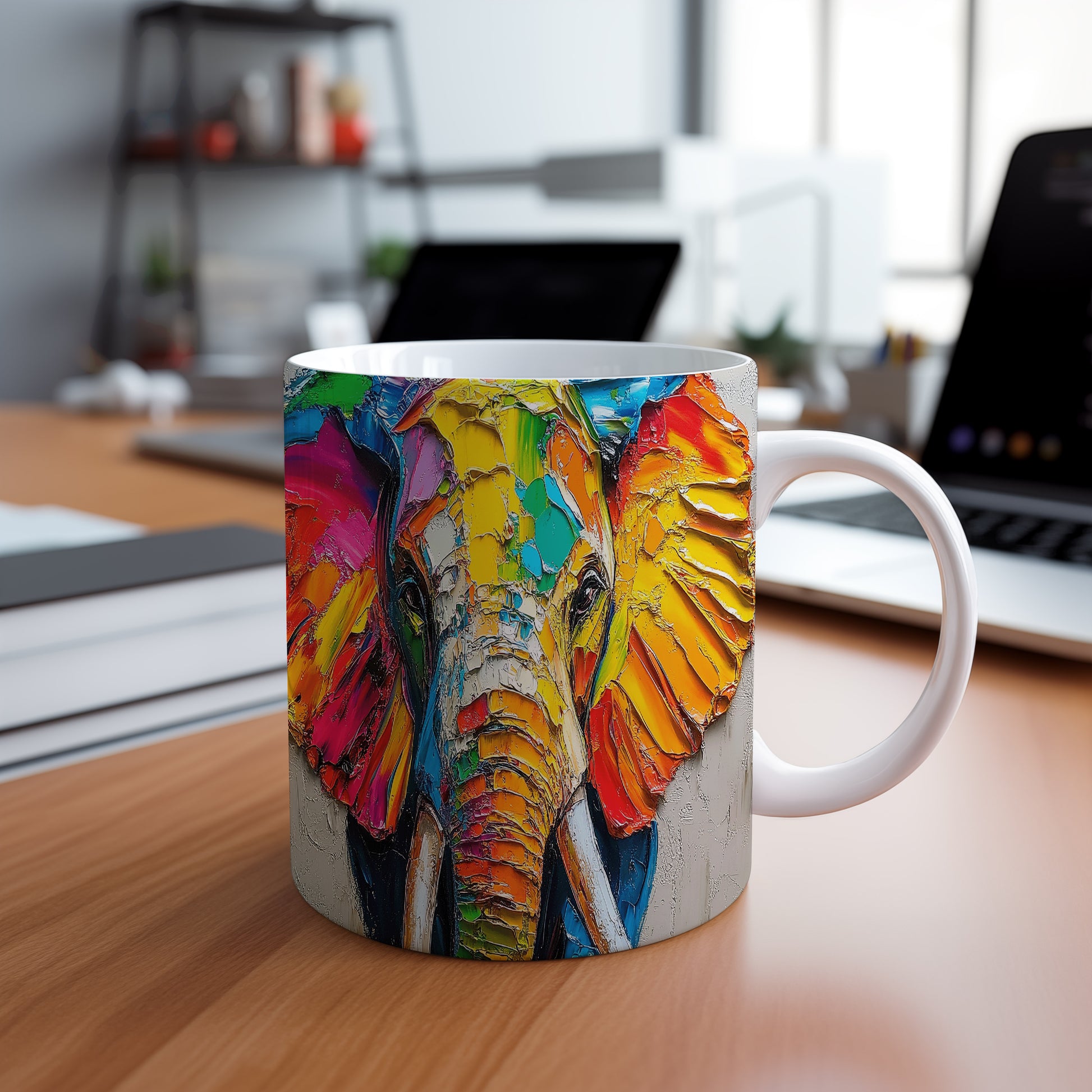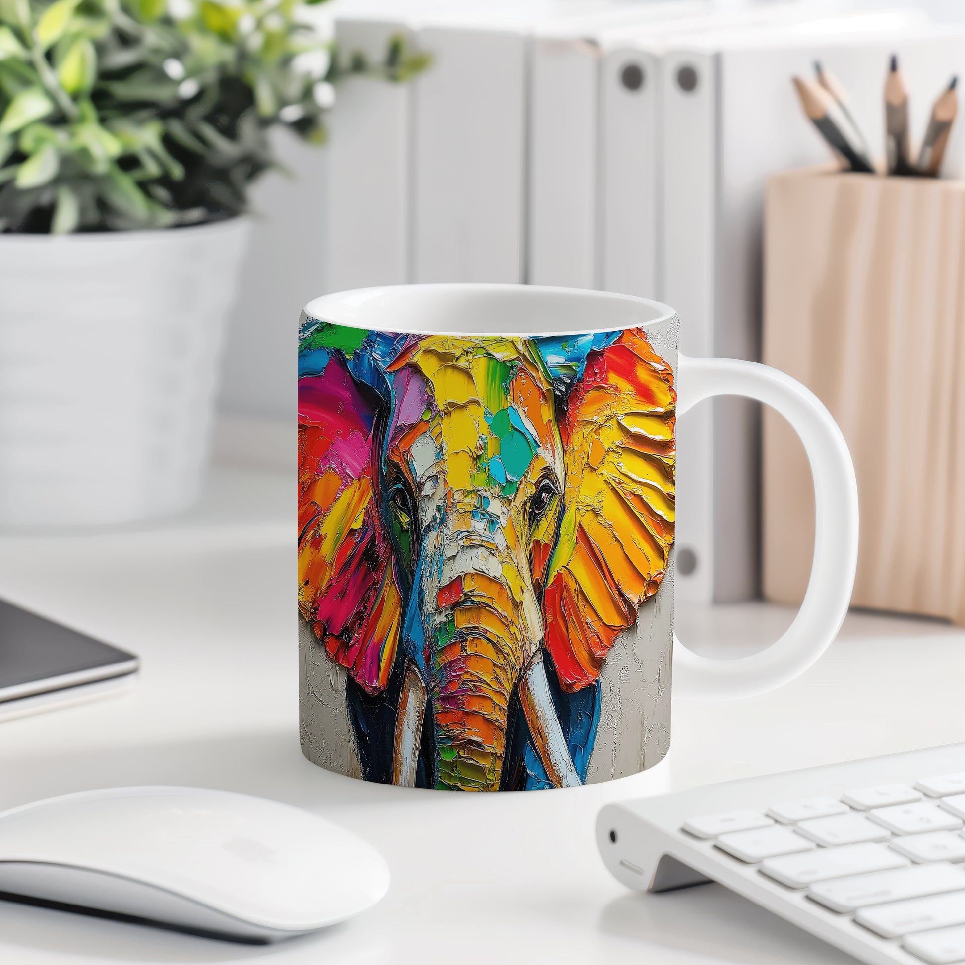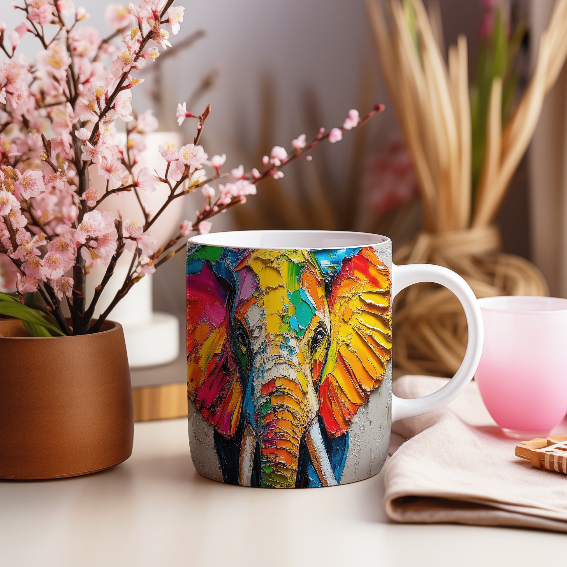 Hrnek s barevným slonem je originální keramický kousek, který potěší každého milovníka zvířat. Tento hrnek je skvělým dárkem pro děti i dospělé, kteří ocení jeho veselý design. Materiál: keramika. Objem: 330 ml. Vhodné do myčky i mikrovlnky. Při každém doušku vám přinese radost a pozitivní energii.