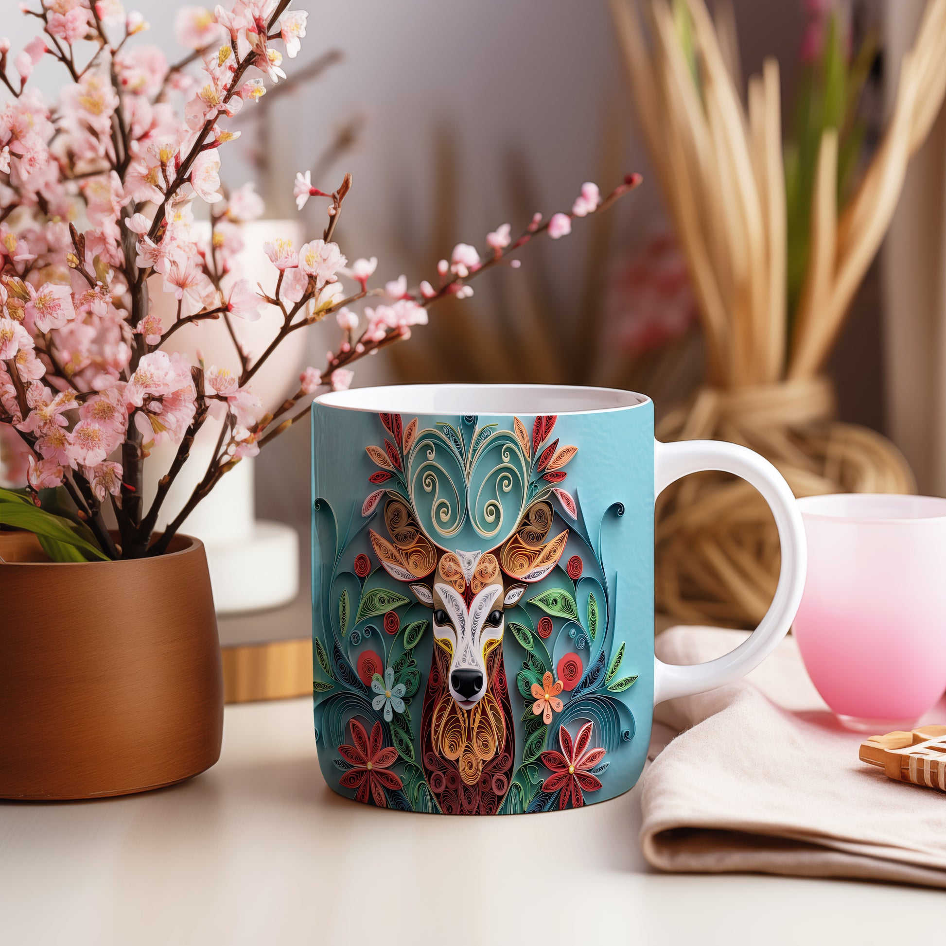 Hrnek s motivem barevného soba a květin. Tento stylový kousek je ideální pro milovníky přírody a skvělý tip na dárek pro přátele nebo rodinu. Materiál: keramika. Objem: 330 ml. Vhodné do myčky i mikrovlnky. Užívejte si svůj oblíbený nápoj s jedinečným designem, který oživí každý den.