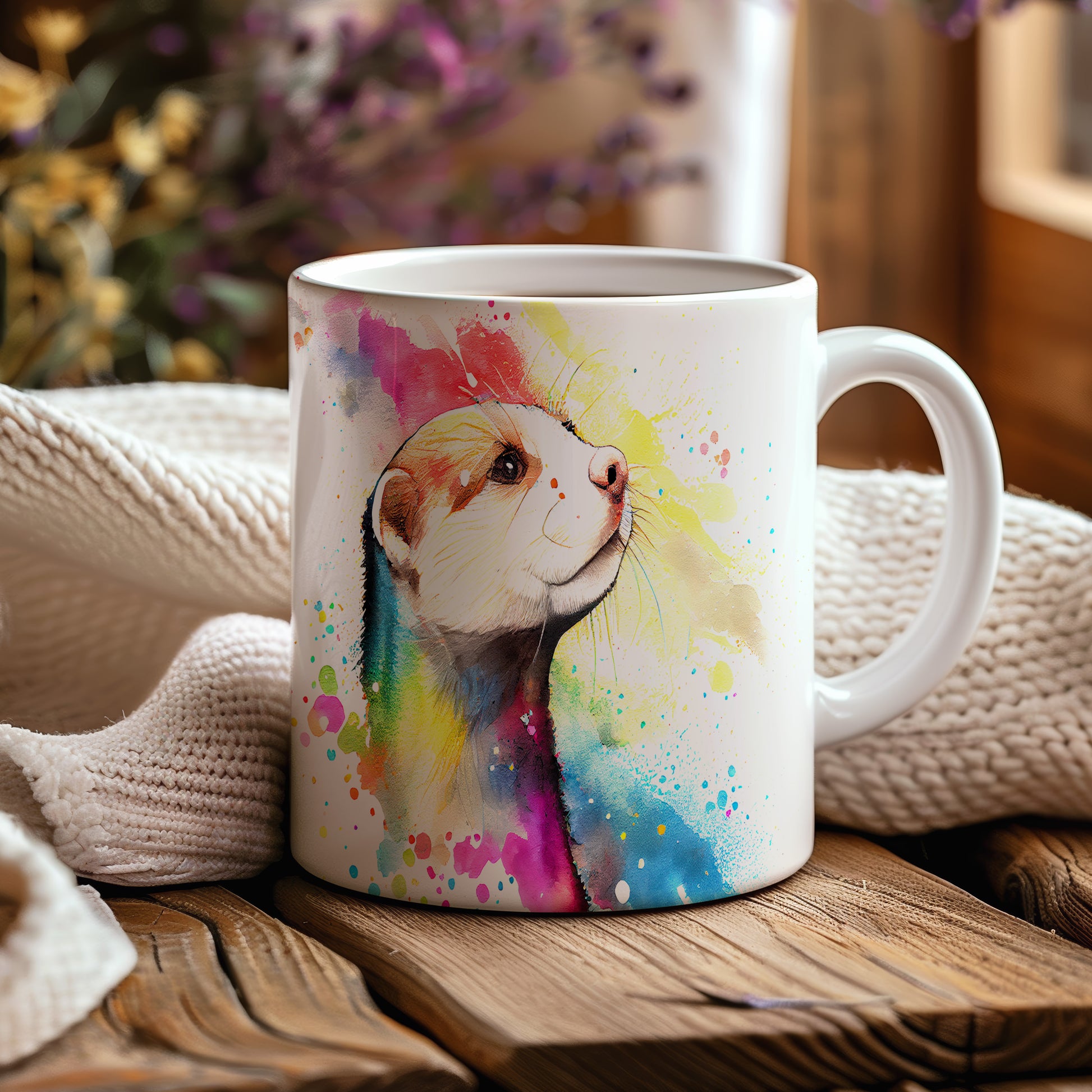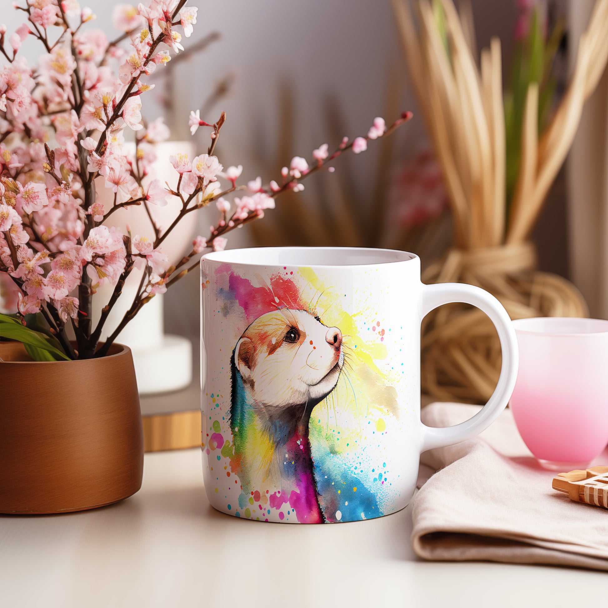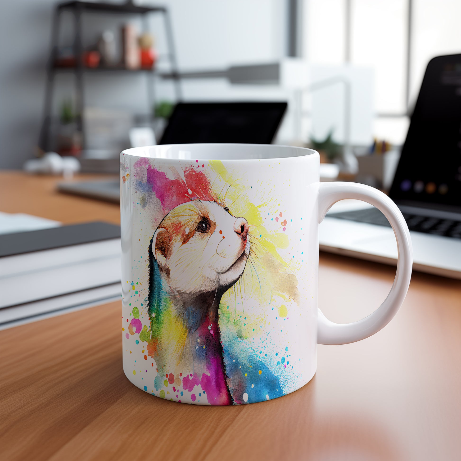 Hrnek s ilustrací zvířete, pravděpodobně norky, v barevném stylu. Tento hrnek je ideální pro každodenní použití a skvělým dárkem pro milovníky zvířat. Materiál: keramika. Objem: 330 ml. Vhodné do myčky i mikrovlnky. Díky svému designu přináší radost do každého dne.
