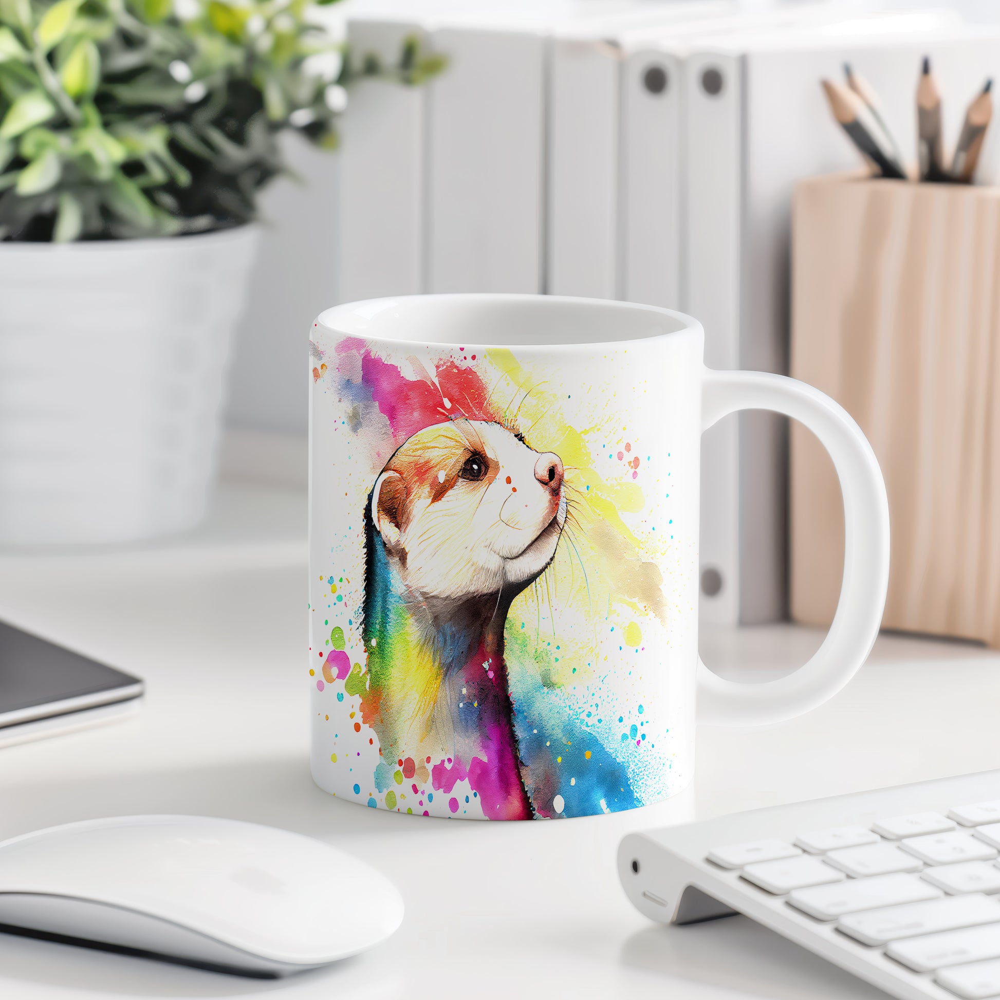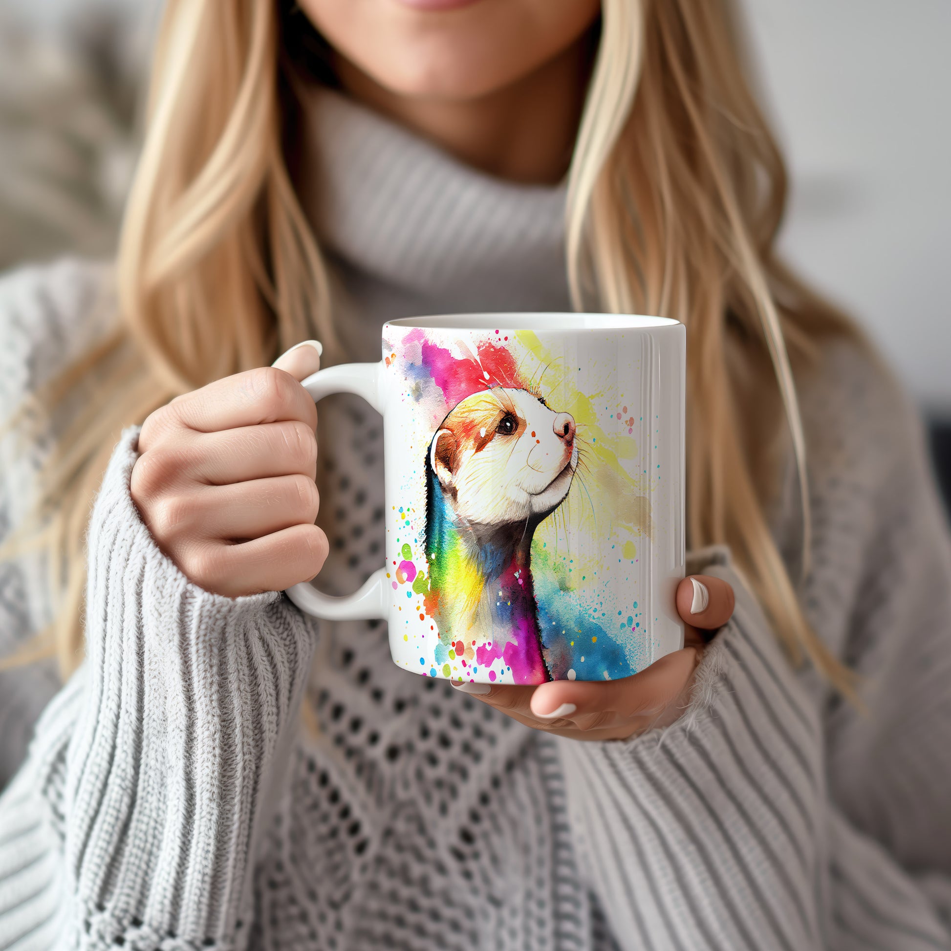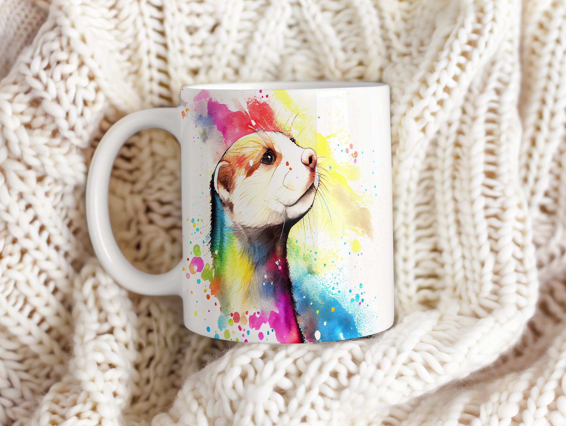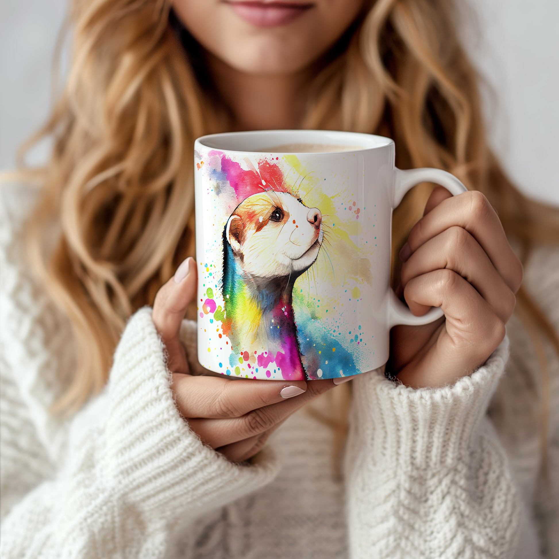 Hrnek s ilustrací zvířete, pravděpodobně norky, v barevném stylu. Tento hrnek je ideální pro každodenní použití a skvělým dárkem pro milovníky zvířat. Materiál: keramika. Objem: 330 ml. Vhodné do myčky i mikrovlnky. Díky svému designu přináší radost do každého dne.