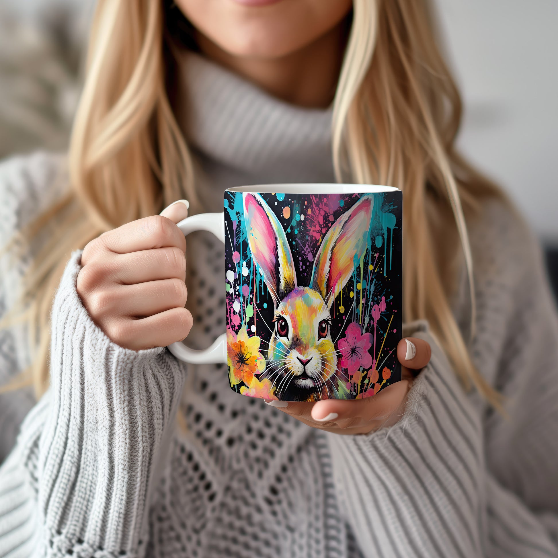 Veselý hrnek s motivem barevného zajíce, který přináší radost a pozitivní energii. Je ideální pro milovníky zvířat a originálních designů, skvělý tip na dárek pro každou příležitost. Materiál: keramika. Objem: 330 ml. Vhodné do myčky i mikrovlnky. Tento hrnek vám zpříjemní každé ráno a dodá šmrnc vašemu stolu.