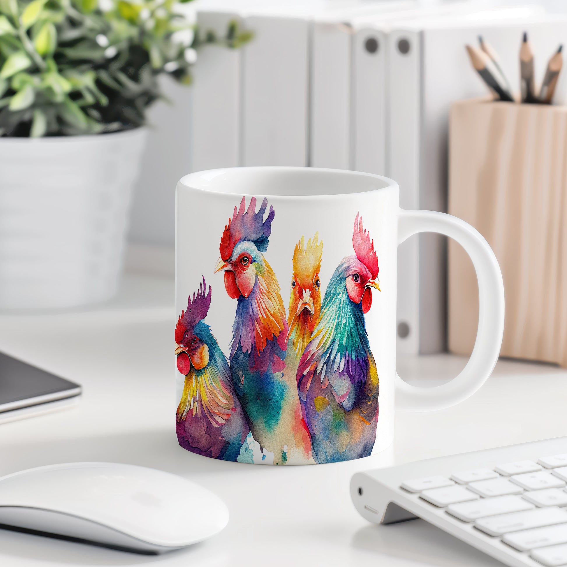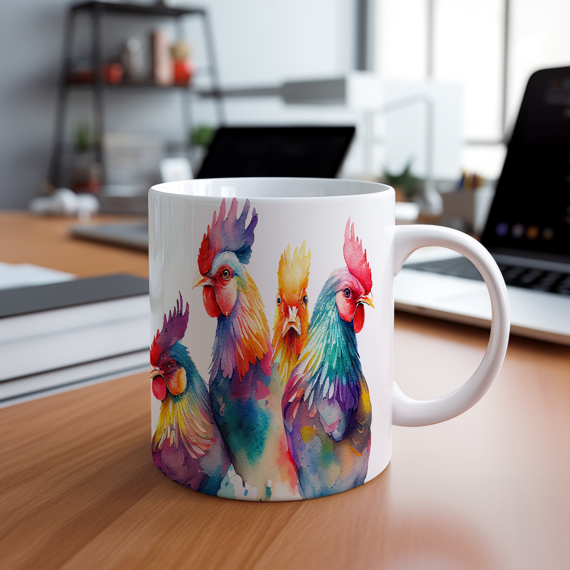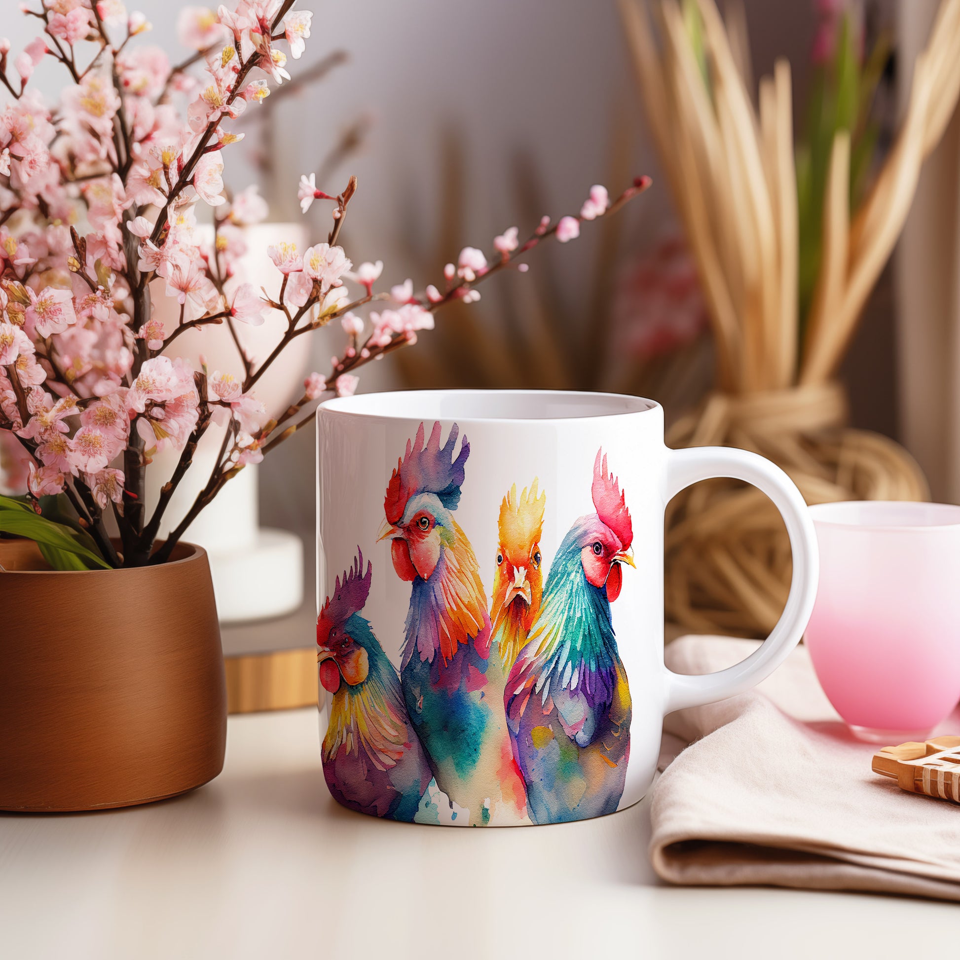 Hrnek s barevnými kohouty v živých barvách představuje tradiční styl a uměleckou vodní malbu. Je ideální pro milovníky originálních kousků a skvělým dárkem pro přátele či rodinu. Materiál: keramika. Objem: 330 ml. Vhodné do myčky i mikrovlnky. Tento hrnek přináší radost do každodenního pití a oživí váš stůl.