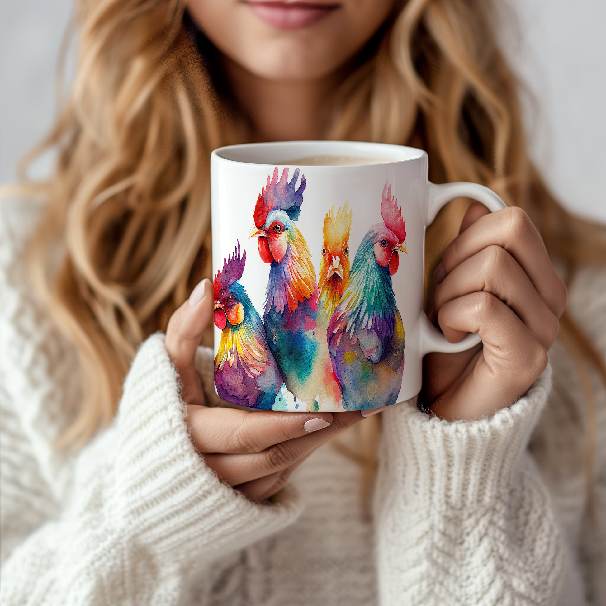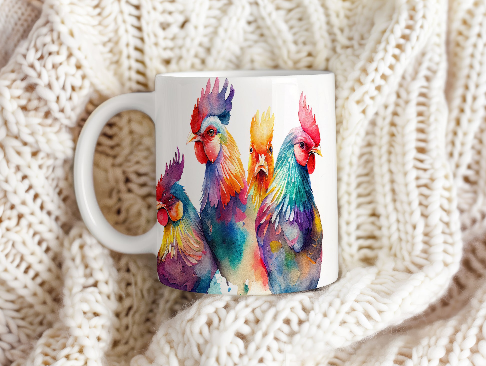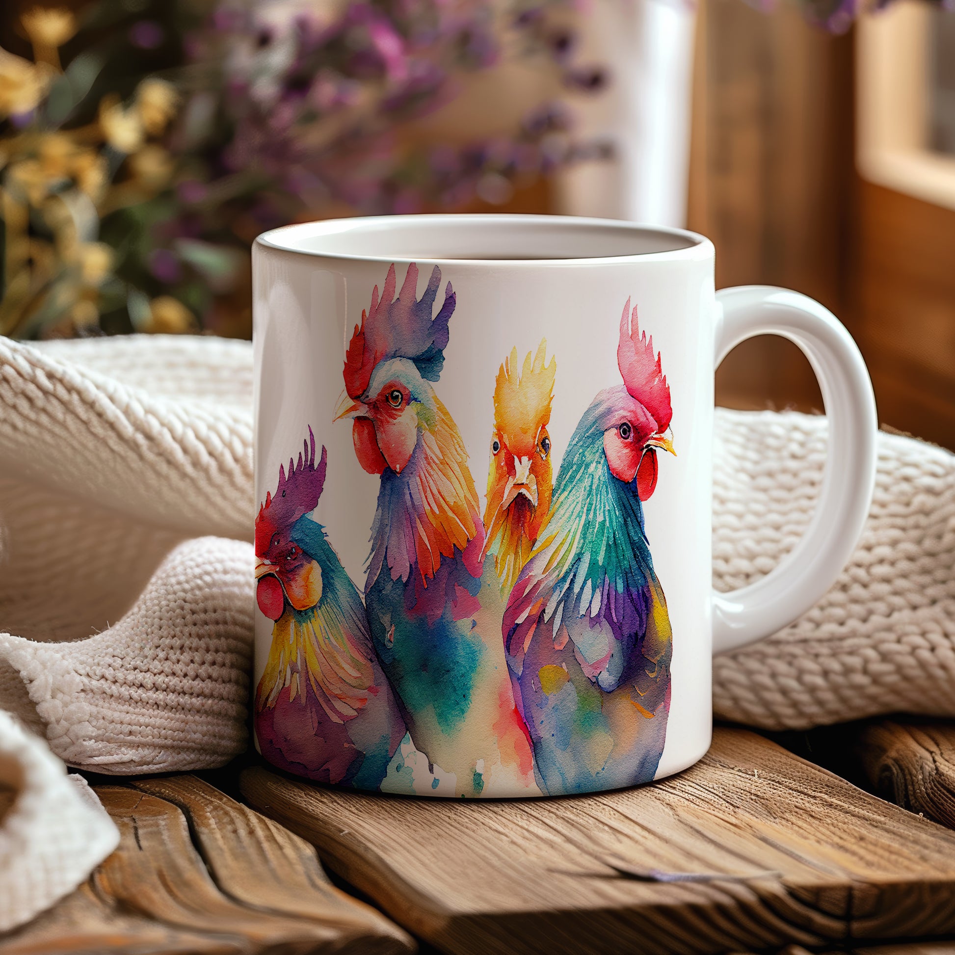 Hrnek s barevnými kohouty v živých barvách představuje tradiční styl a uměleckou vodní malbu. Je ideální pro milovníky originálních kousků a skvělým dárkem pro přátele či rodinu. Materiál: keramika. Objem: 330 ml. Vhodné do myčky i mikrovlnky. Tento hrnek přináší radost do každodenního pití a oživí váš stůl.