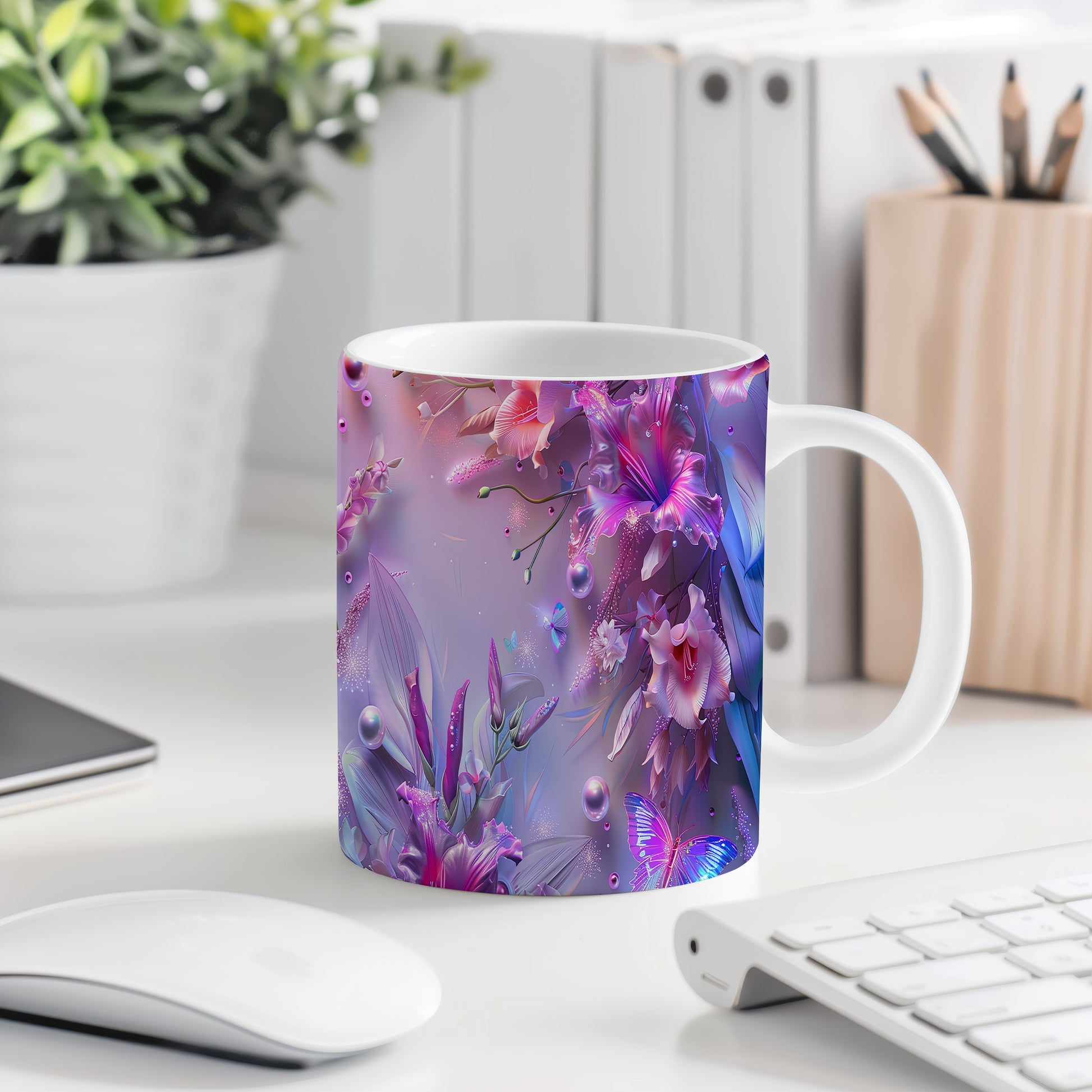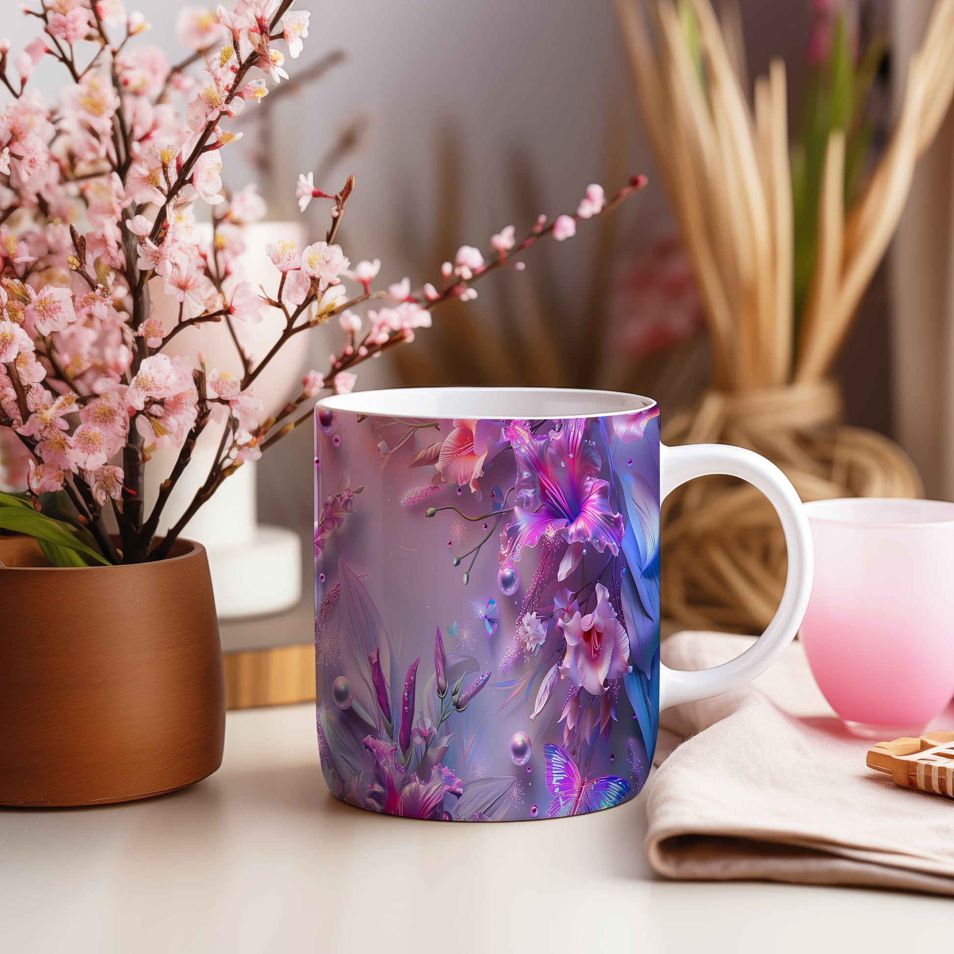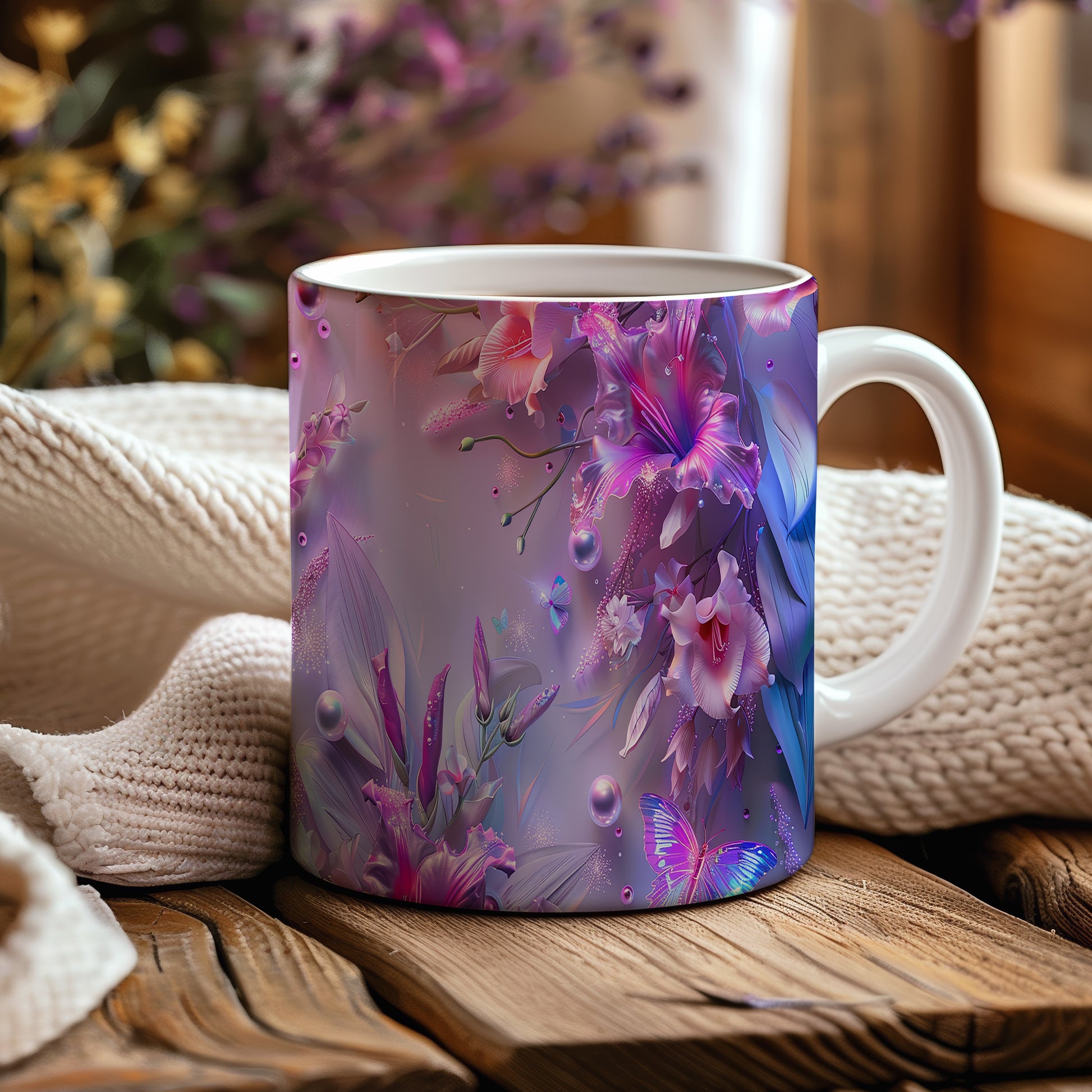 Tento keramický hrnek s motivem barevných květin a motýlů je ideální pro milovníky přírody a krásných designů. Skvěle se hodí jako dárek pro přátele nebo rodinu, kteří ocení jedinečné kousky. Materiál: keramika. Objem: 330 ml. Vhodné do myčky i mikrovlnky. Používáním tohoto hrnku si zpříjemníte každodenní pití oblíbeného nápoje.