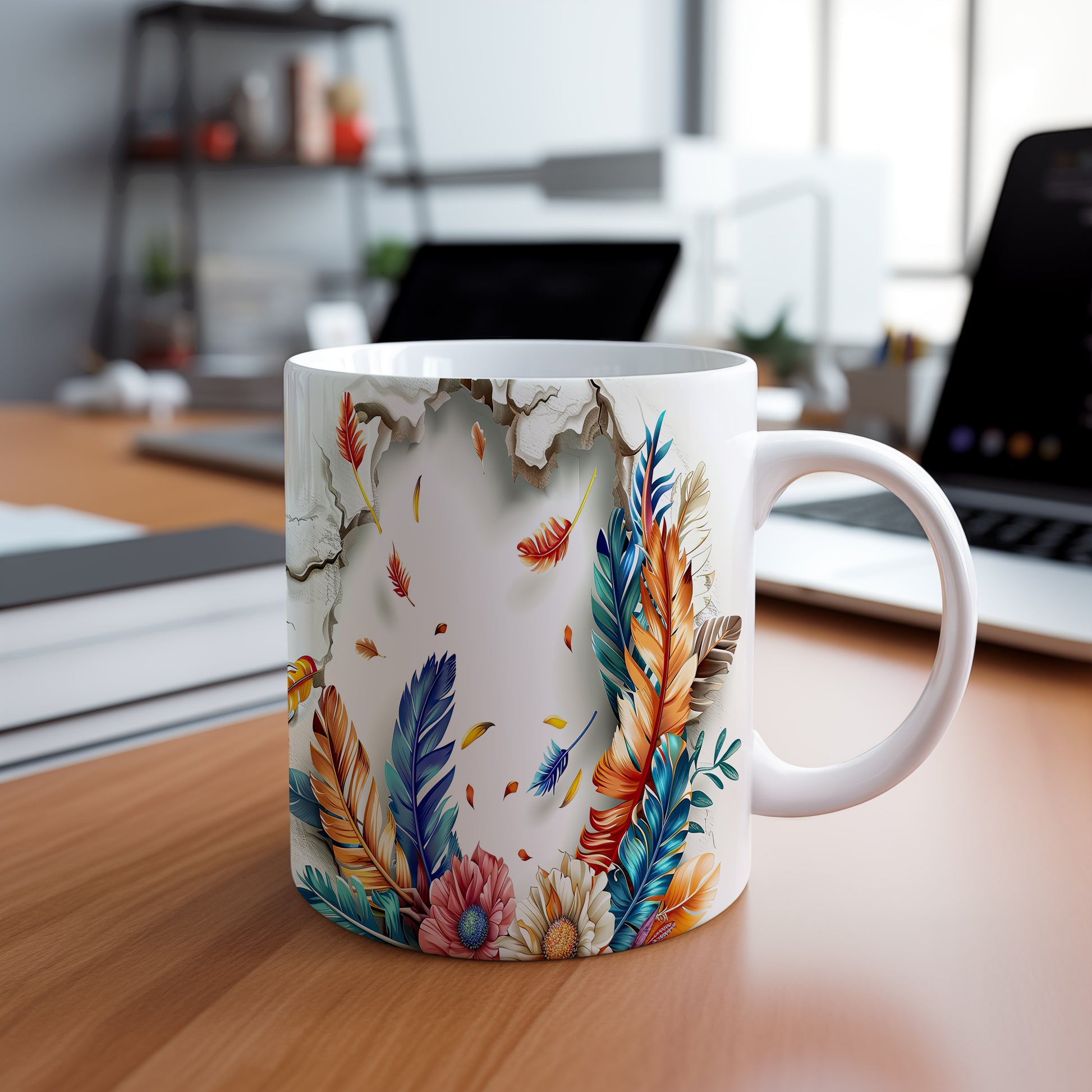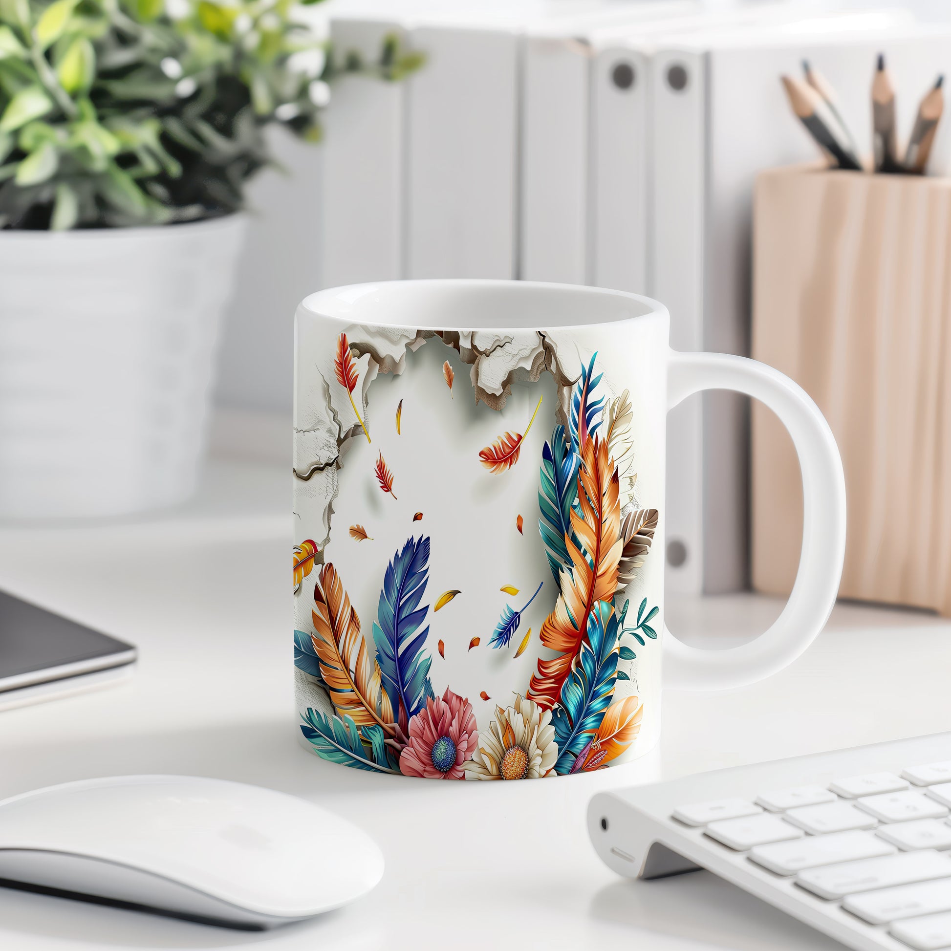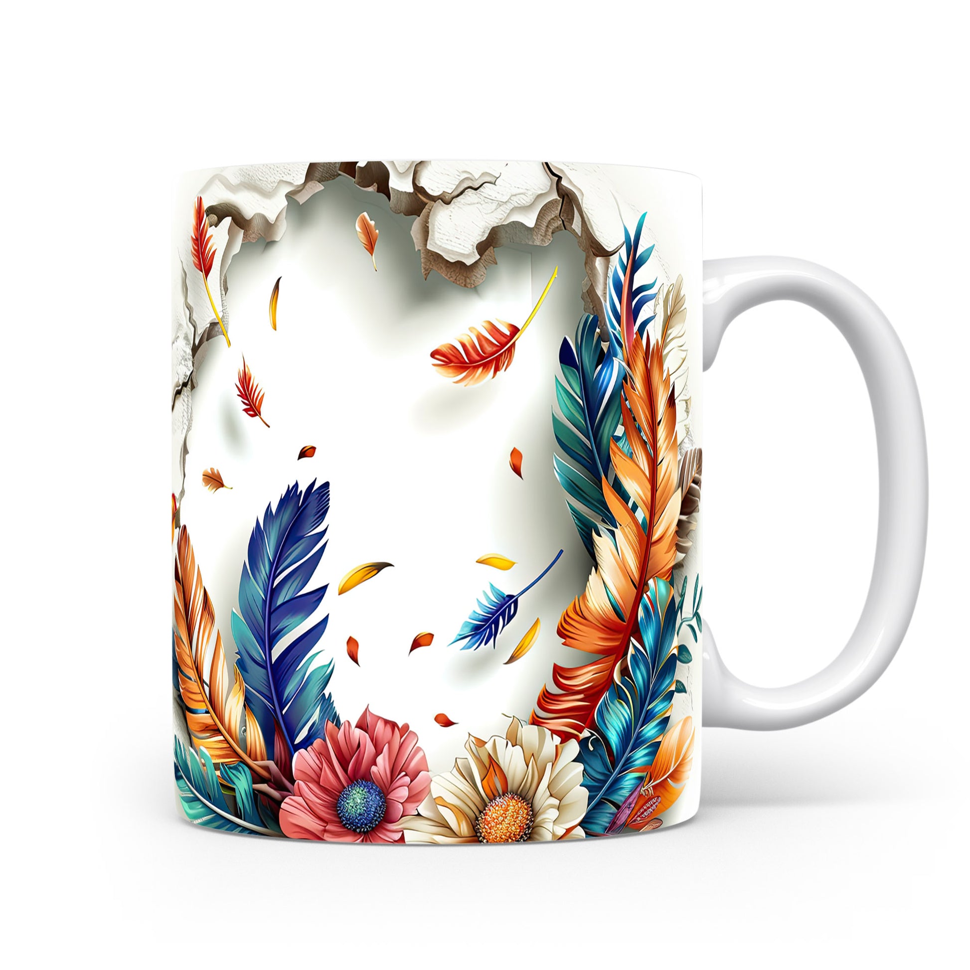 Tento hrnek s barevnými květinami a peřím je skvělým kouskem pro každého milovníka přírody. Je ideální jako dárek pro přátele nebo rodinu, kteří ocení originální design. Materiál: keramika. Objem: 330 ml. Vhodné do myčky i mikrovlnky. Používáním tohoto hrnku si zpříjemníte každodenní pití a dodáte mu osobitý styl.