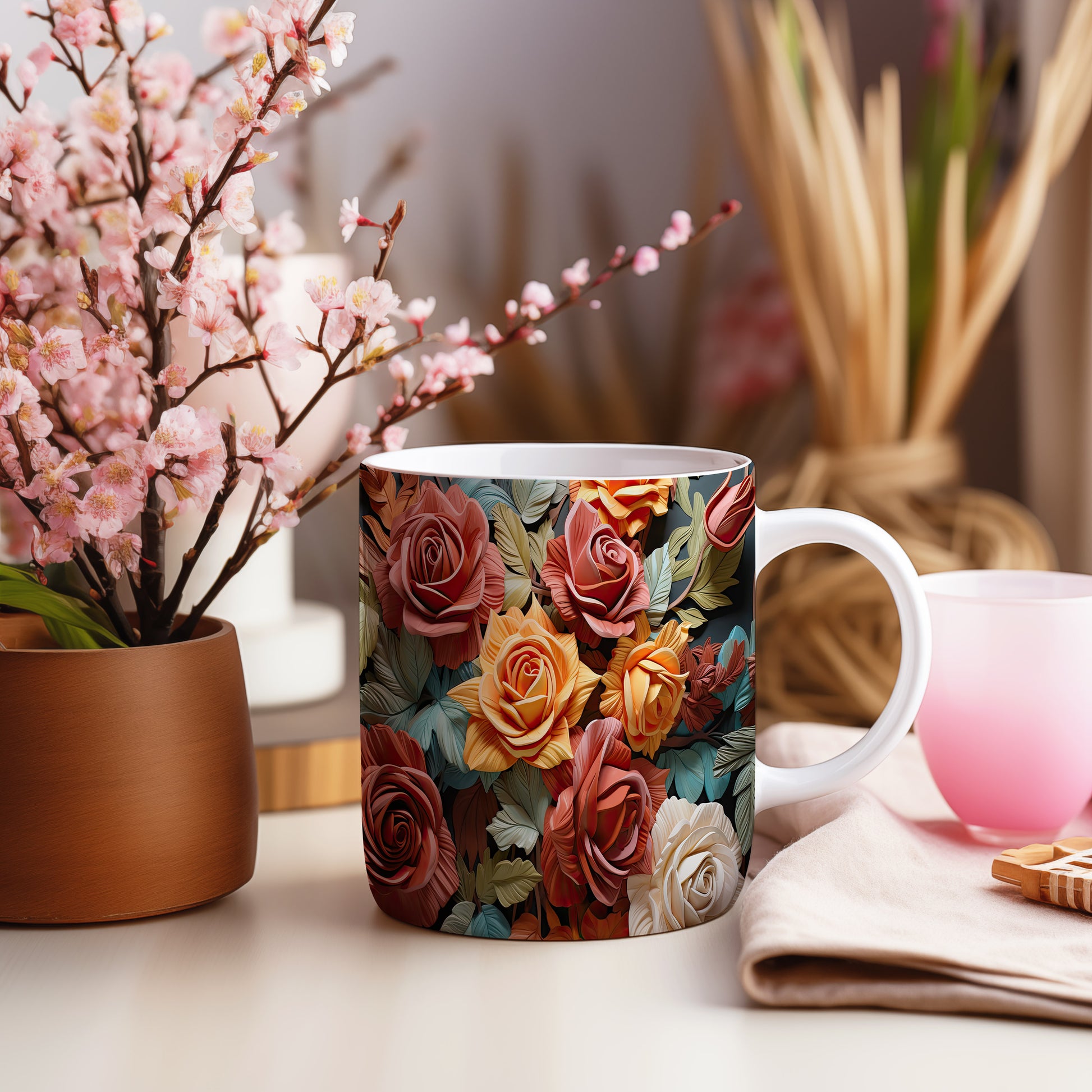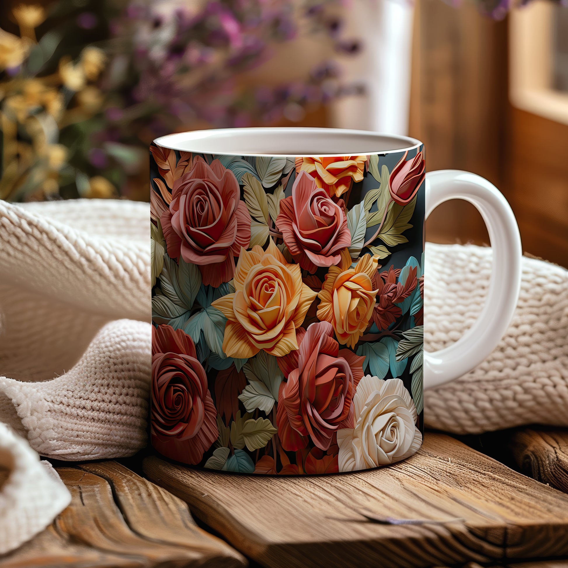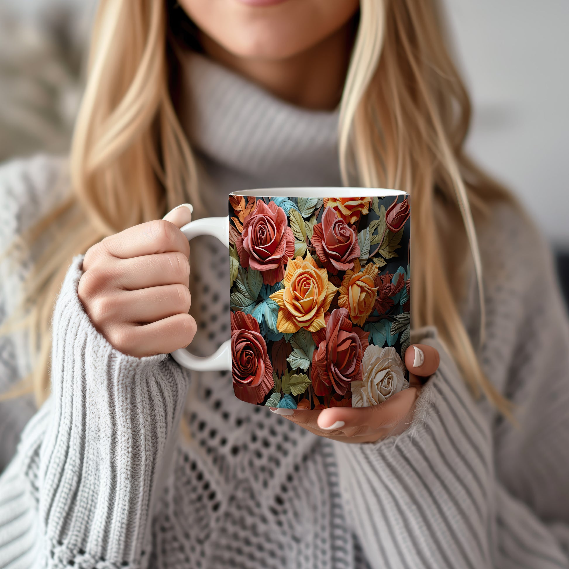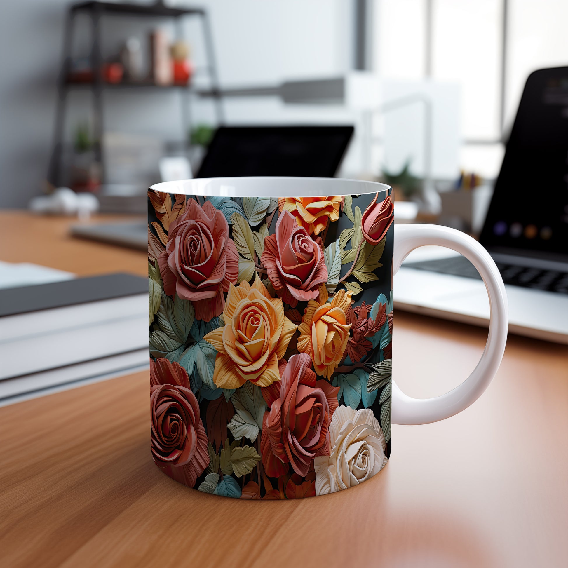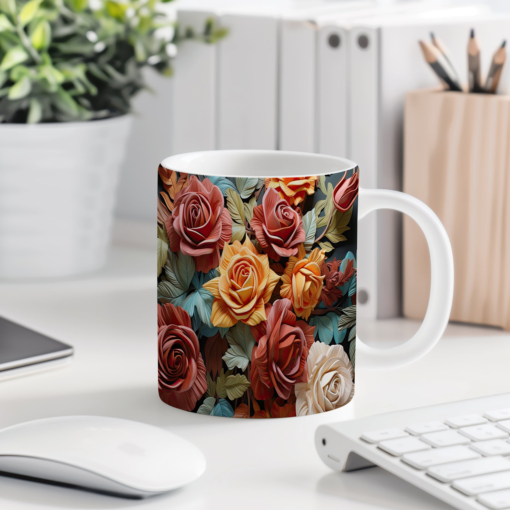 Hrnek s realistickým motivem rozkvetlých růží v různých barevných odstínech. Je ideální pro každodenní používání a skvělým dárkem pro milovníky přírody. Materiál: keramika. Objem: 330 ml. Vhodné do myčky i mikrovlnky. Tento hrnek přináší do vašeho dne radost a barevnost.