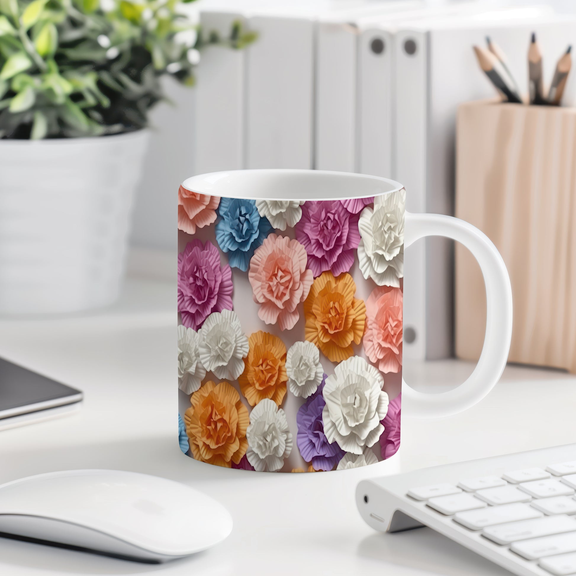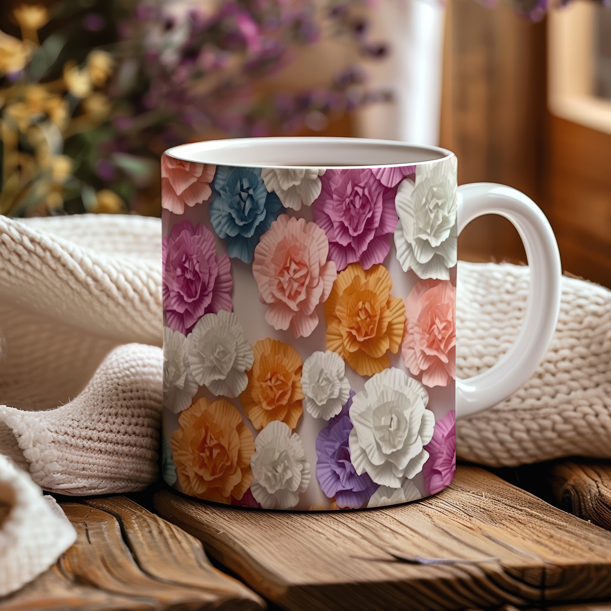 Keramický hrnek s realistickým motivem barevných květů. Tento hrnek potěší každého milovníka přírody a je skvělým dárkem pro přátele či rodinu. Materiál: keramika. Objem: 330 ml. Vhodné do myčky i mikrovlnky. Užijte si kávu nebo čaj s nádechem přírody.