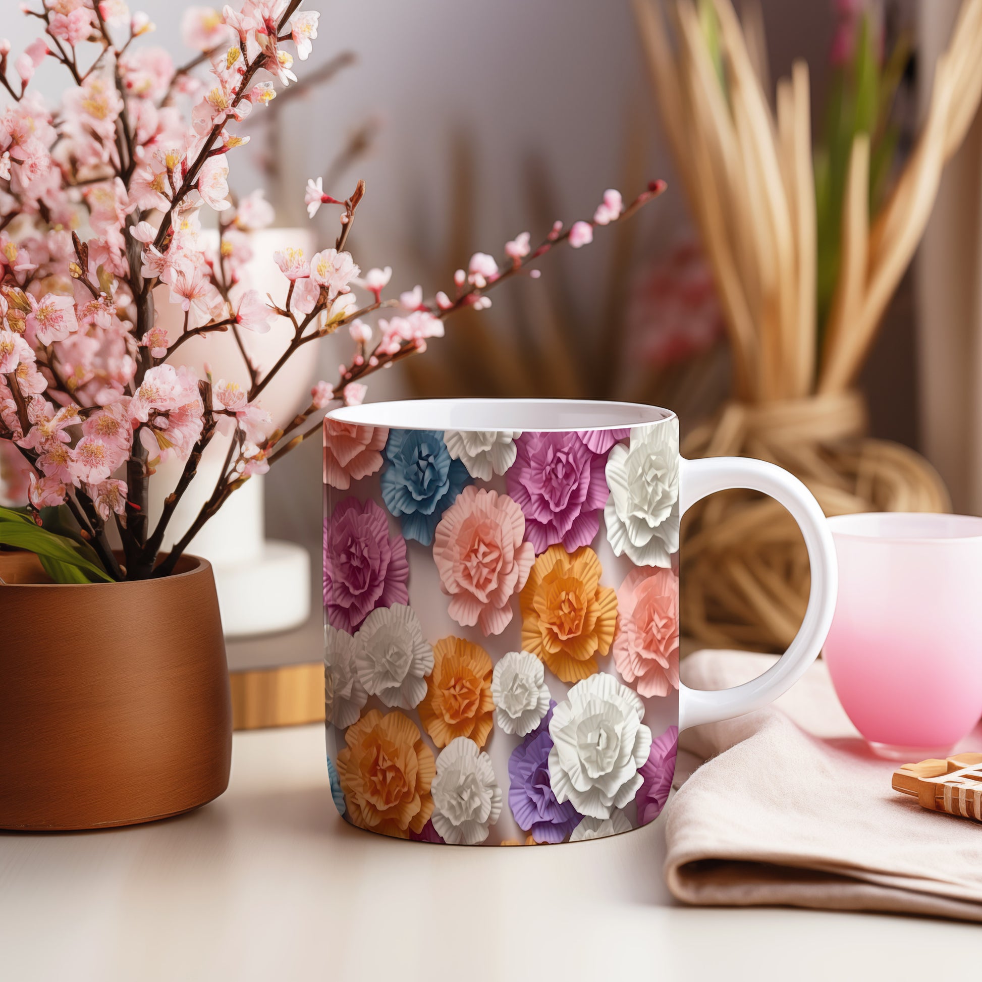 Hrnek s barevnými květy