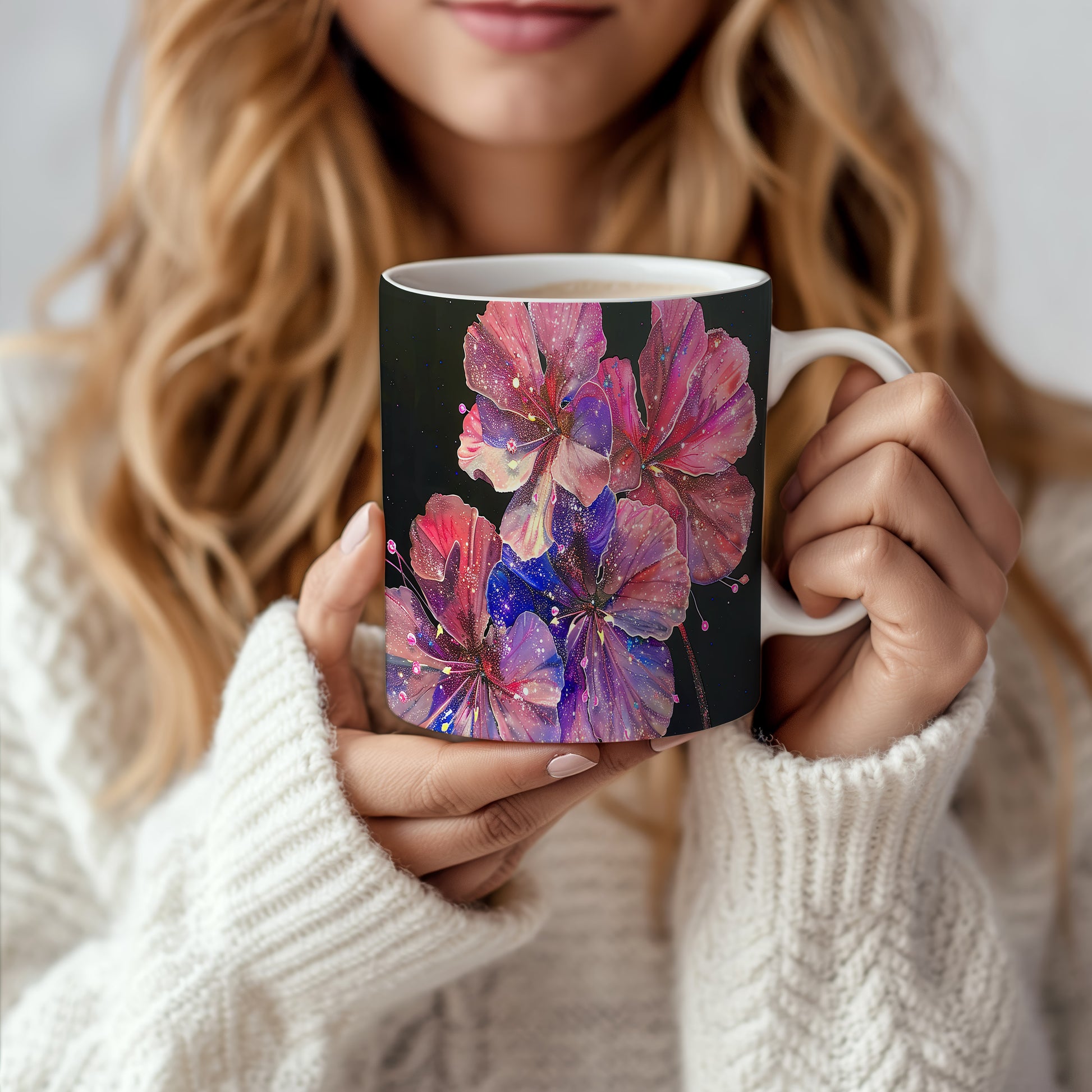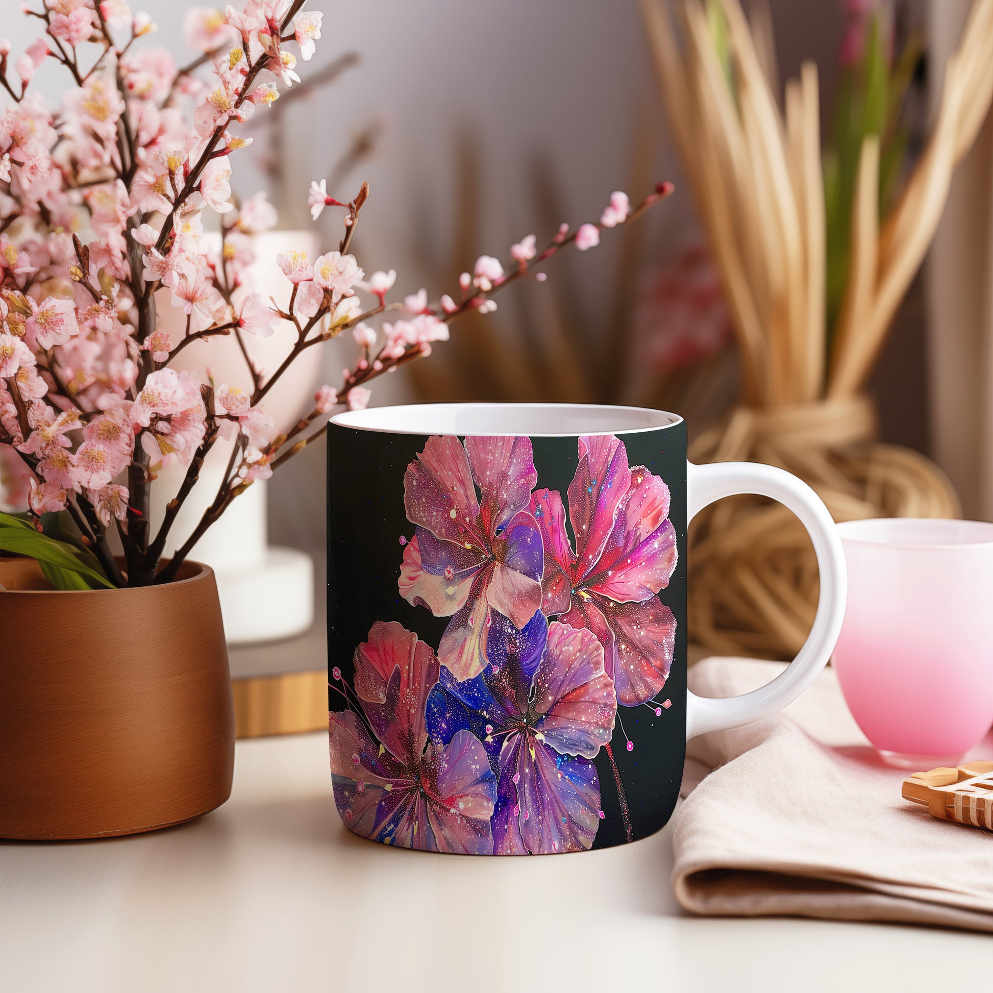 Tento keramický hrnek s květinovými motivy v odstínech růžové a modré je ideální pro milovníky přírody a elegance. Skvěle se hodí jako dárek pro přátele nebo rodinu. Materiál: keramika. Objem: 330 ml. Vhodné do myčky i mikrovlnky. Díky svému designu přináší do každodenního pití radost a styl.