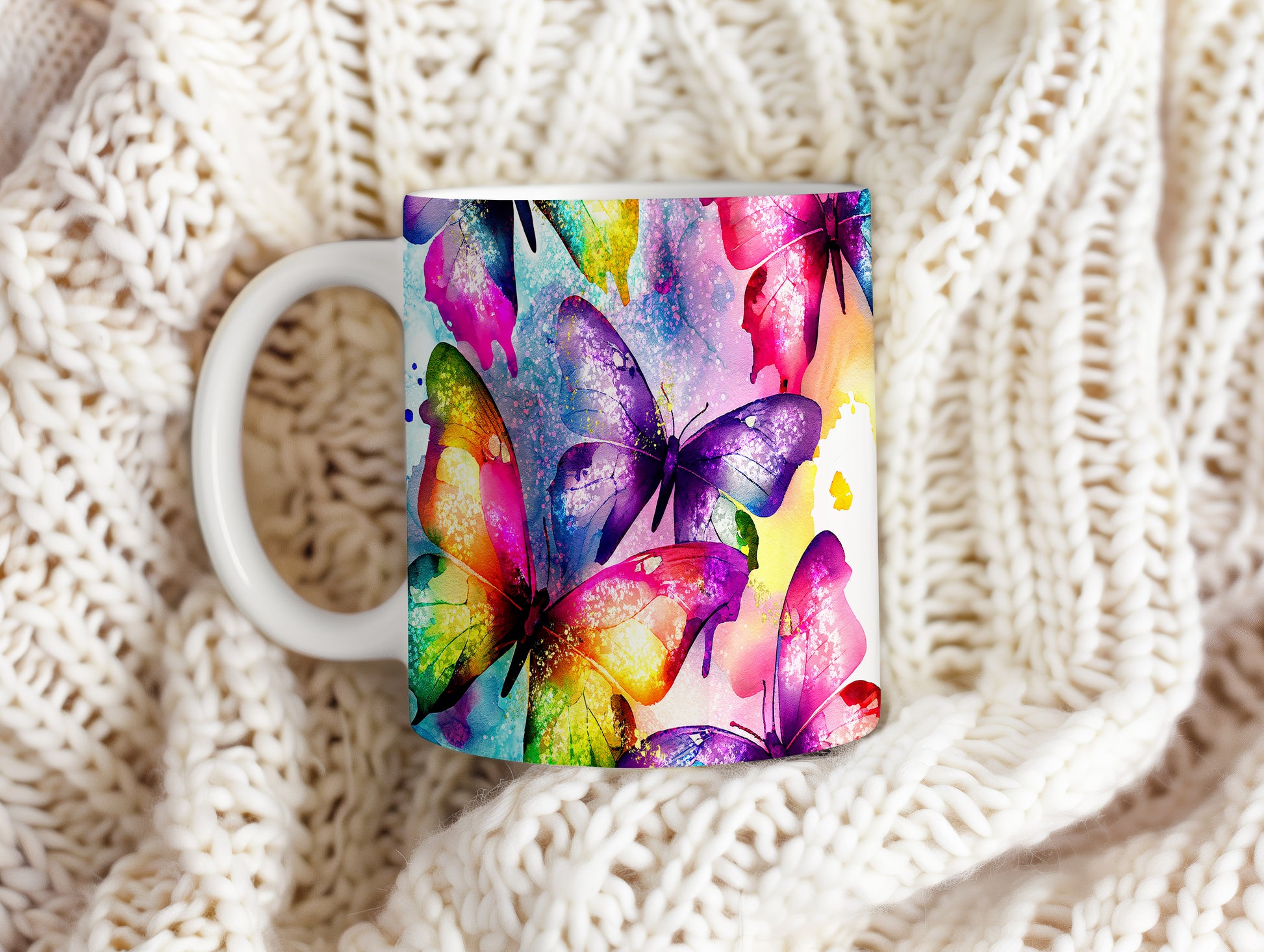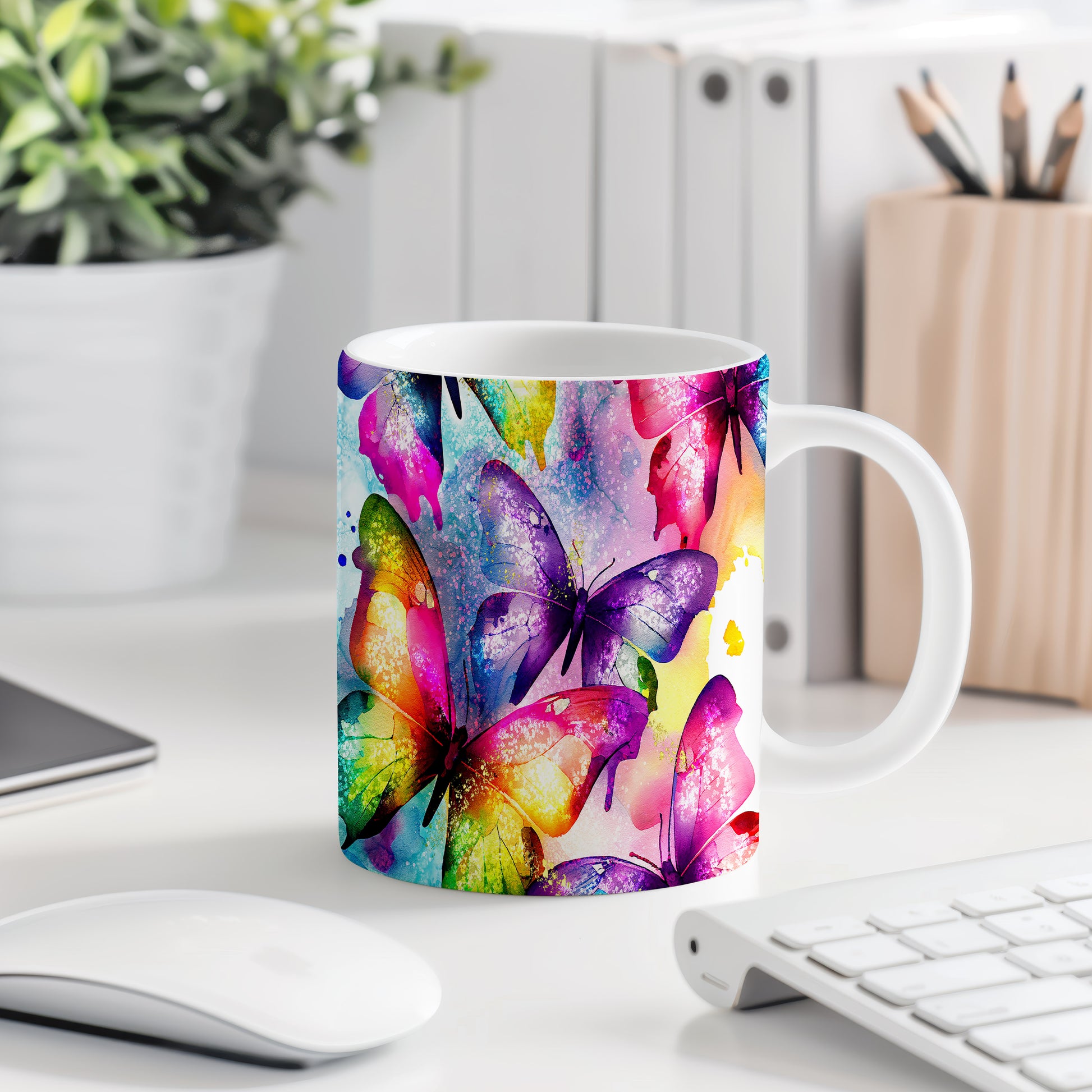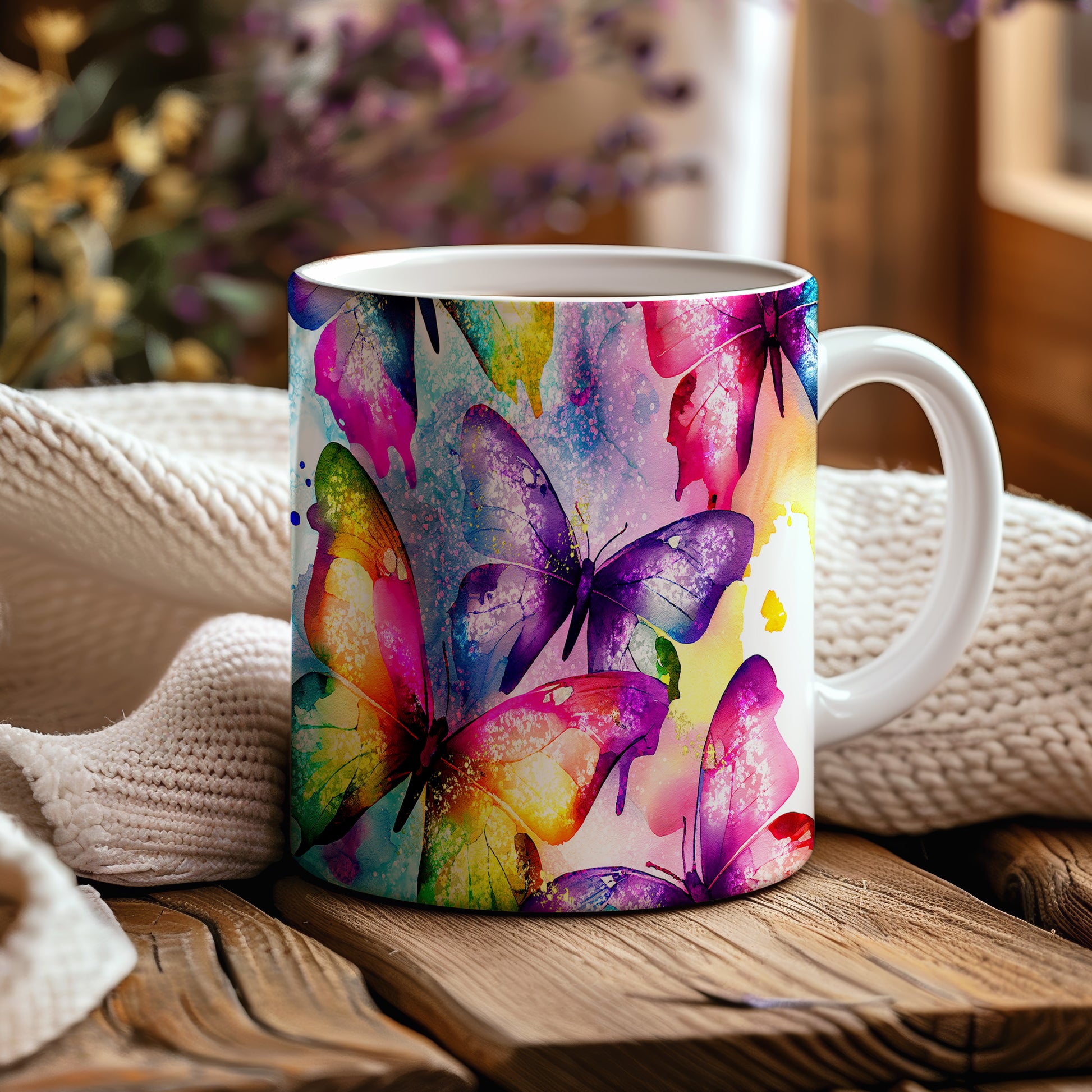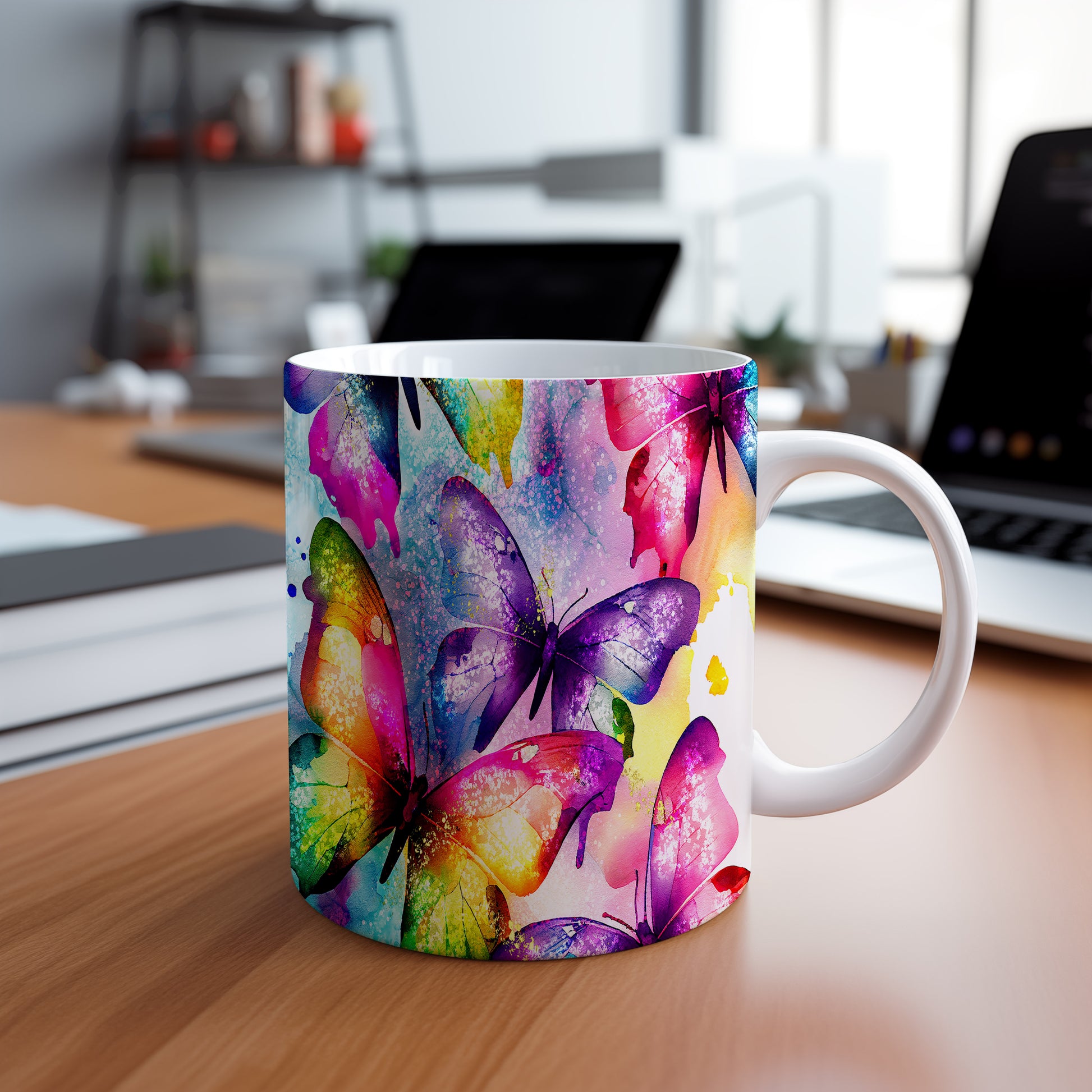 Hrnek s motivem barevných motýlů přináší do vašeho domova radost a veselí. Je ideální pro milovníky přírody a skvělým dárkem pro každého, kdo ocení krásu těchto fascinujících tvorů. Materiál: keramika. Objem: 330 ml. Vhodné do myčky i mikrovlnky. Tento hrnek vám zpříjemní každé ráno a dodá na náladě.