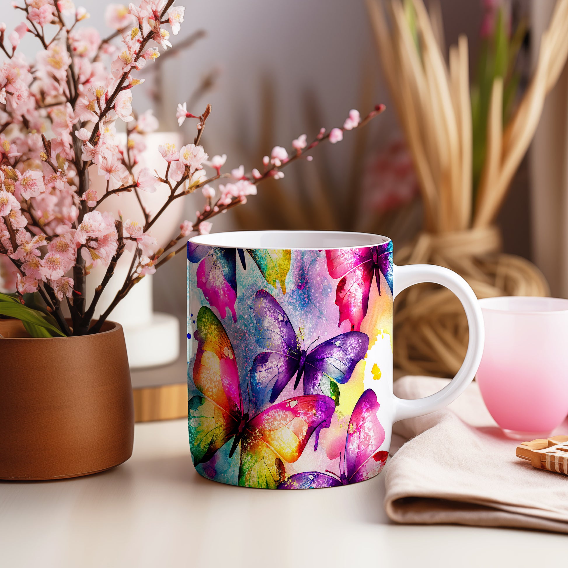 Hrnek s barevnými motýly – dárkovým tipem