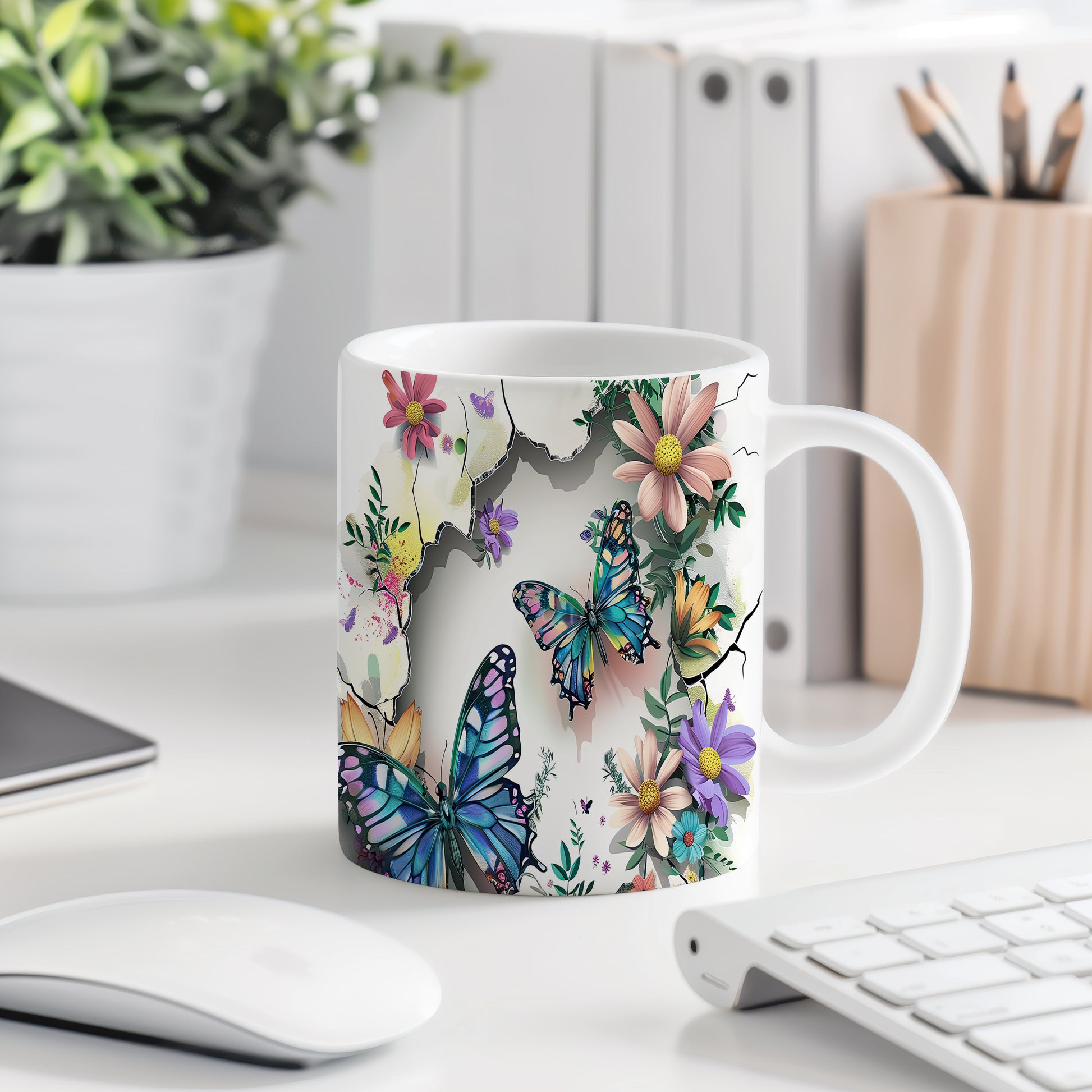 Tento hrnek zobrazuje krásné barevné motýly v jemném stylu. Je ideální pro milovníky přírody a jarní atmosféry, skvělý tip na dárek pro každého, kdo má rád květinové motivy. Materiál: keramika. Objem: 330 ml. Vhodné do myčky i mikrovlnky. Používání tohoto hrnku přináší radost a oživuje každodenní pití.