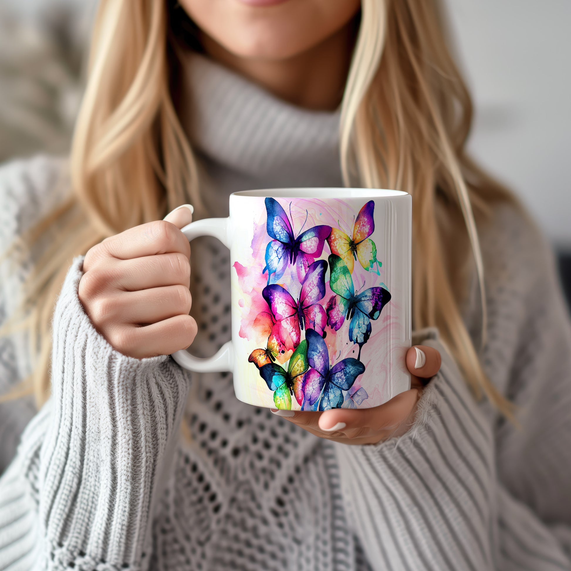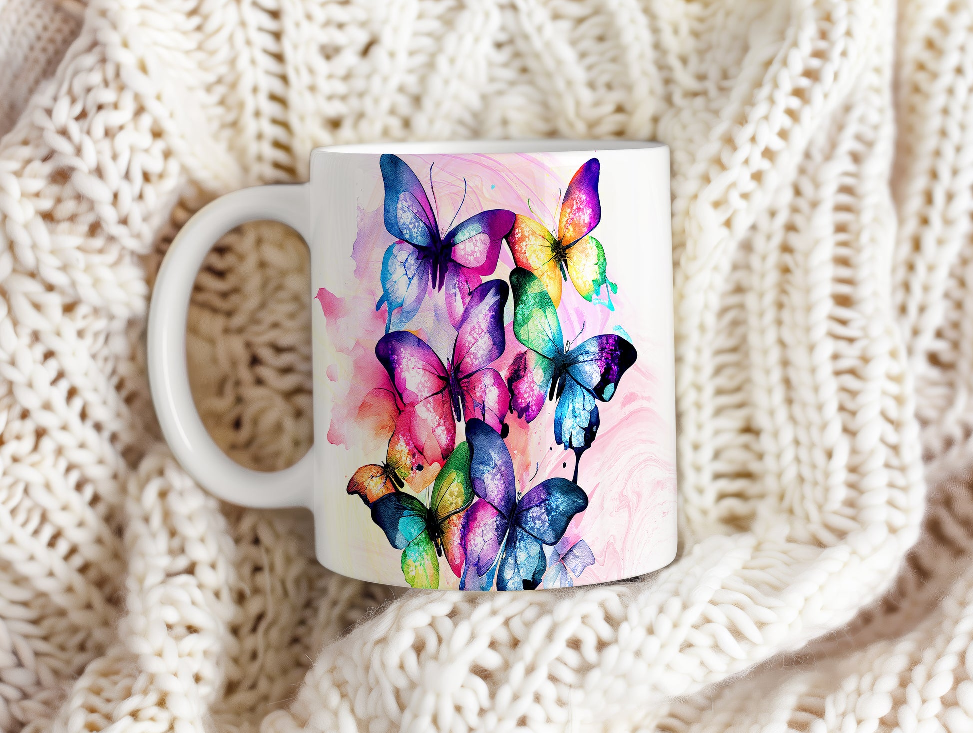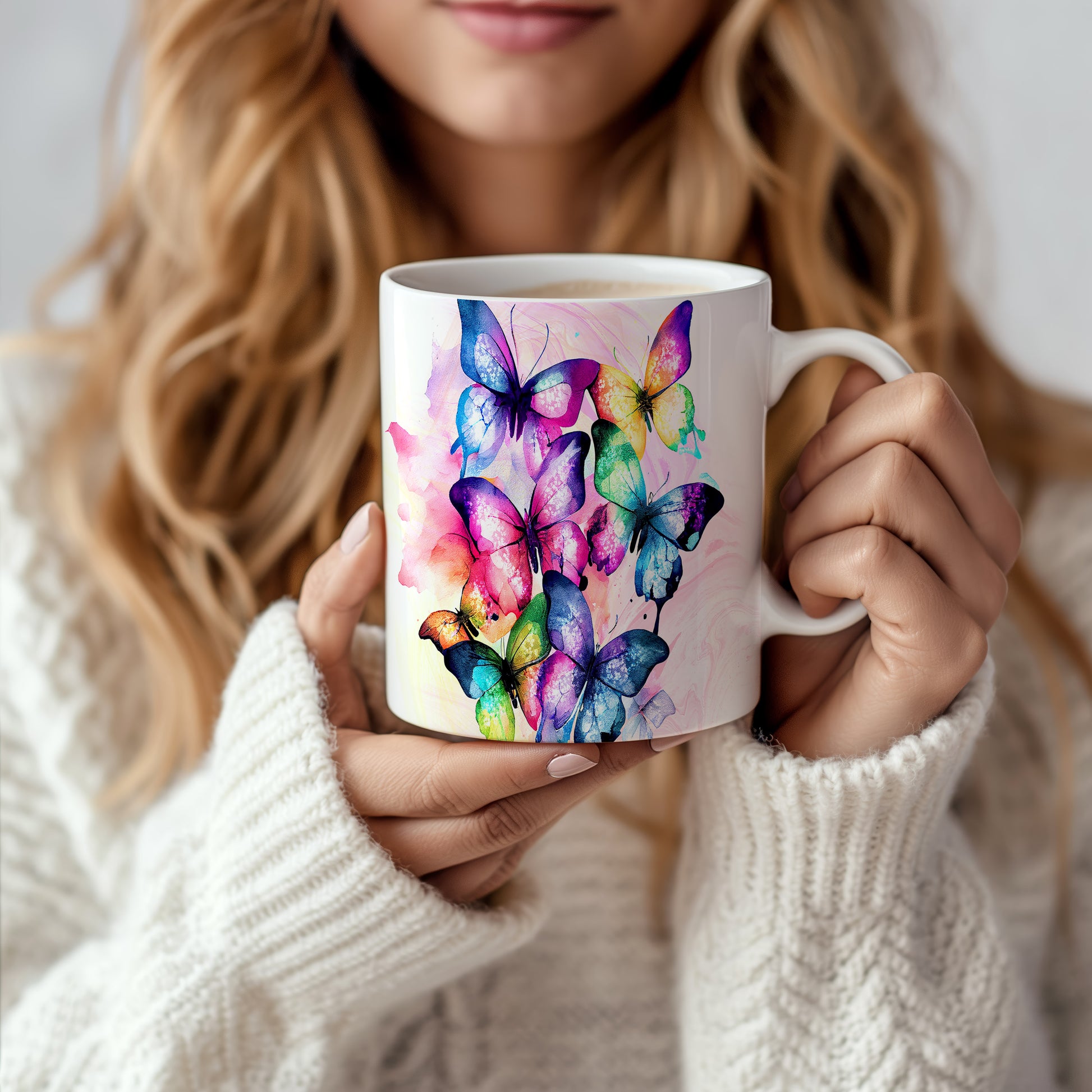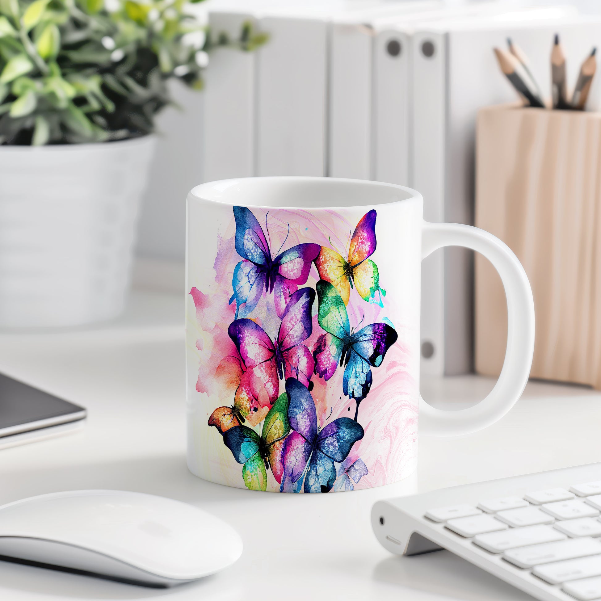 Hrnek s barevnými motýly je krásným a veselým kouskem, který potěší každého milovníka přírody. Tento hrnek je ideální jako dárek pro přátele nebo rodinu, kteří ocení originální design. Materiál: keramika. Objem: 330 ml. Vhodné do myčky i mikrovlnky. Používáním tohoto hrnku si zpříjemníte každodenní pití oblíbeného nápoje.
