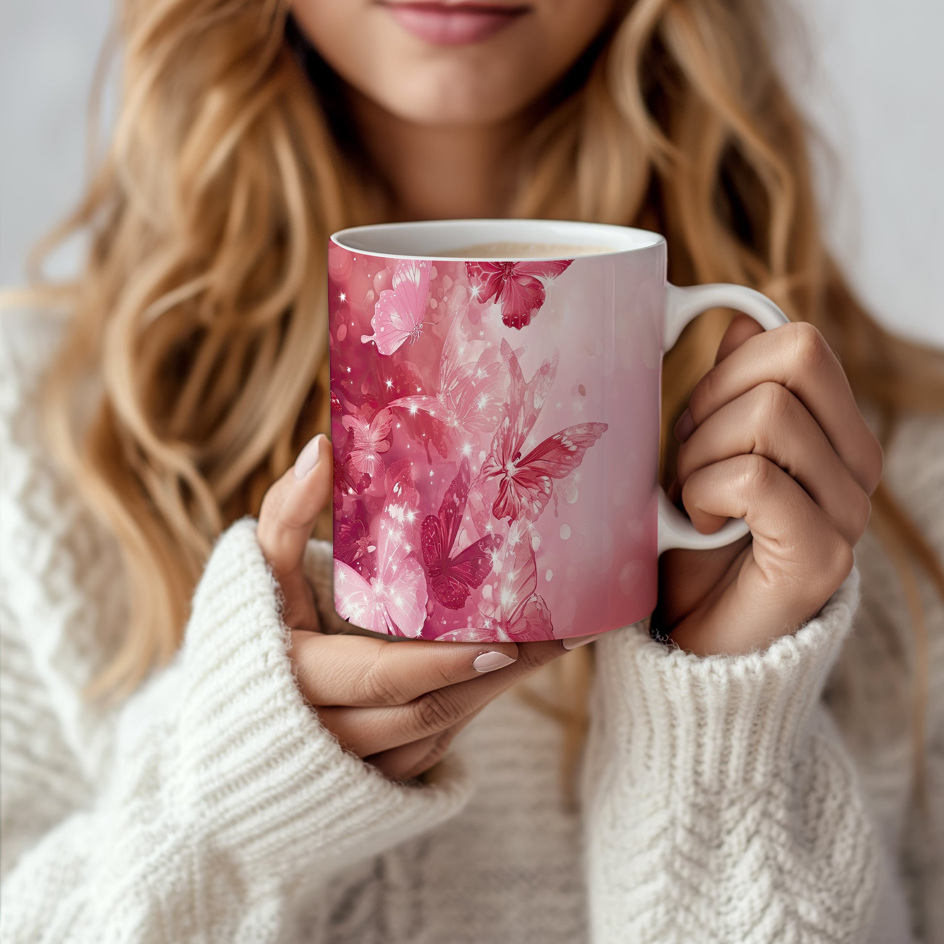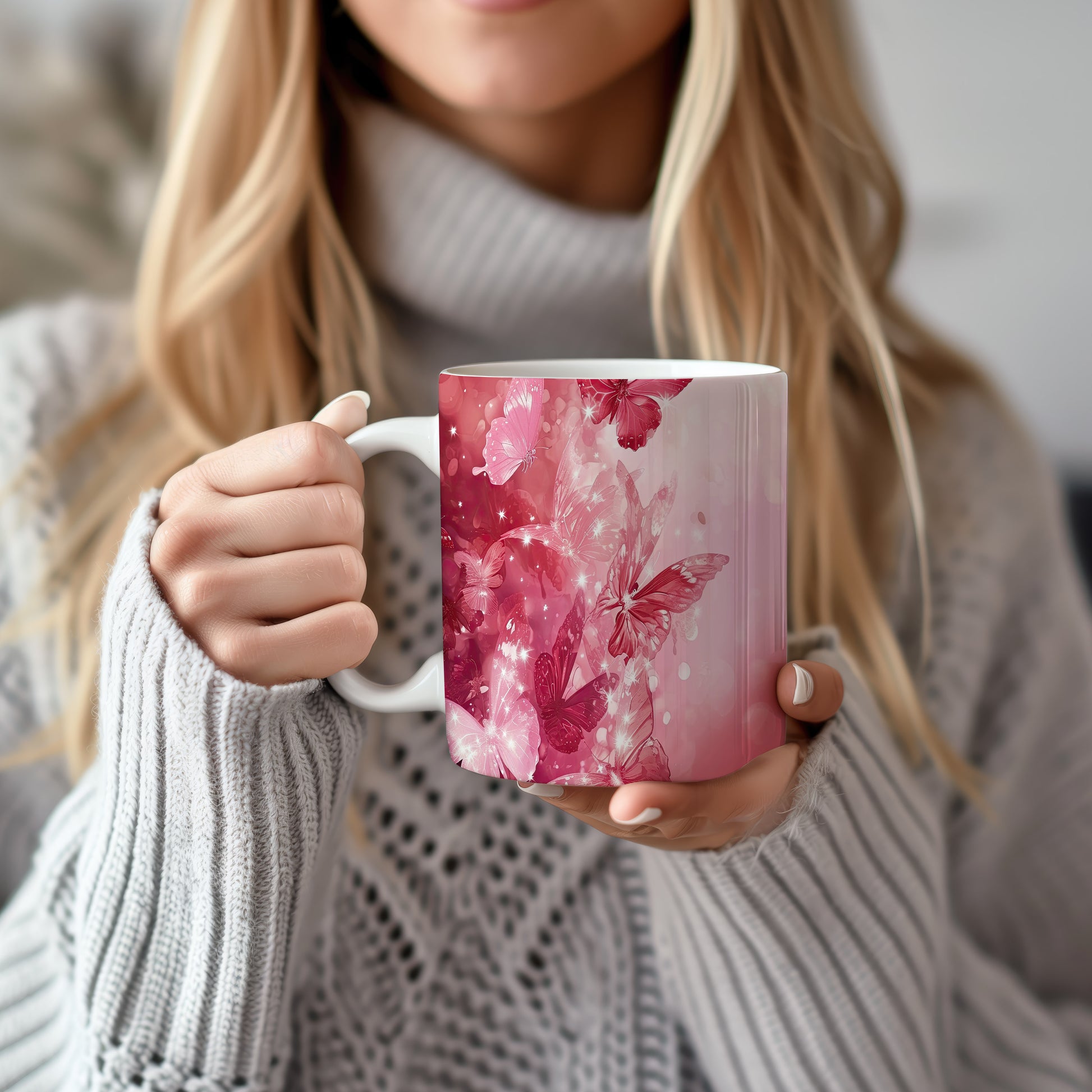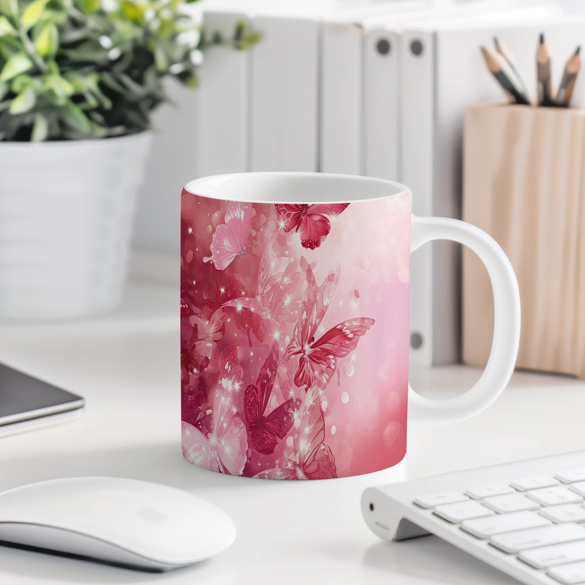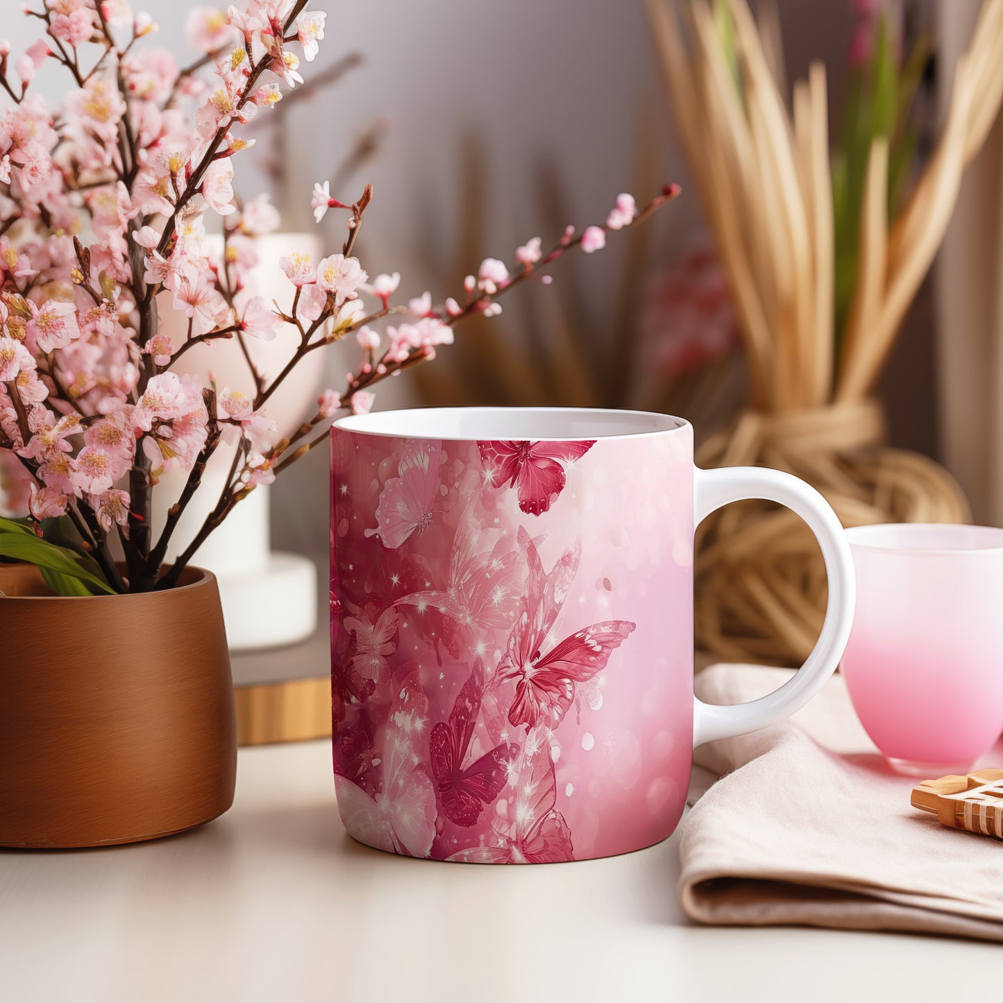 Tento hrnek zdobí jemné motivy barevných motýlů na růžovém pozadí. Je ideální pro milovníky přírody a estetiky, skvělý tip na dárek pro blízké. Materiál: keramika. Objem: 330 ml. Vhodné do myčky i mikrovlnky. Používání tohoto hrnku přináší radost z každého doušku.