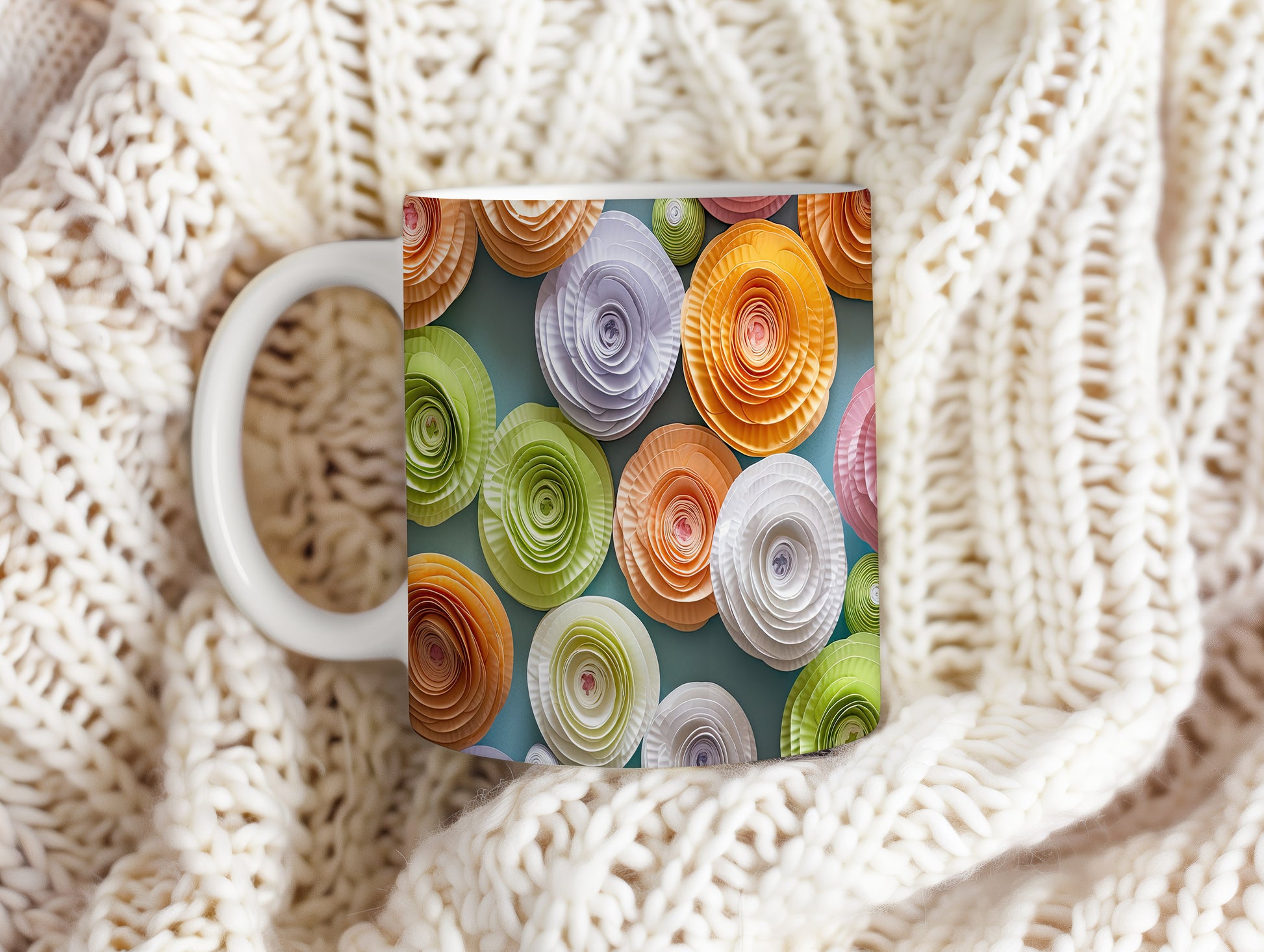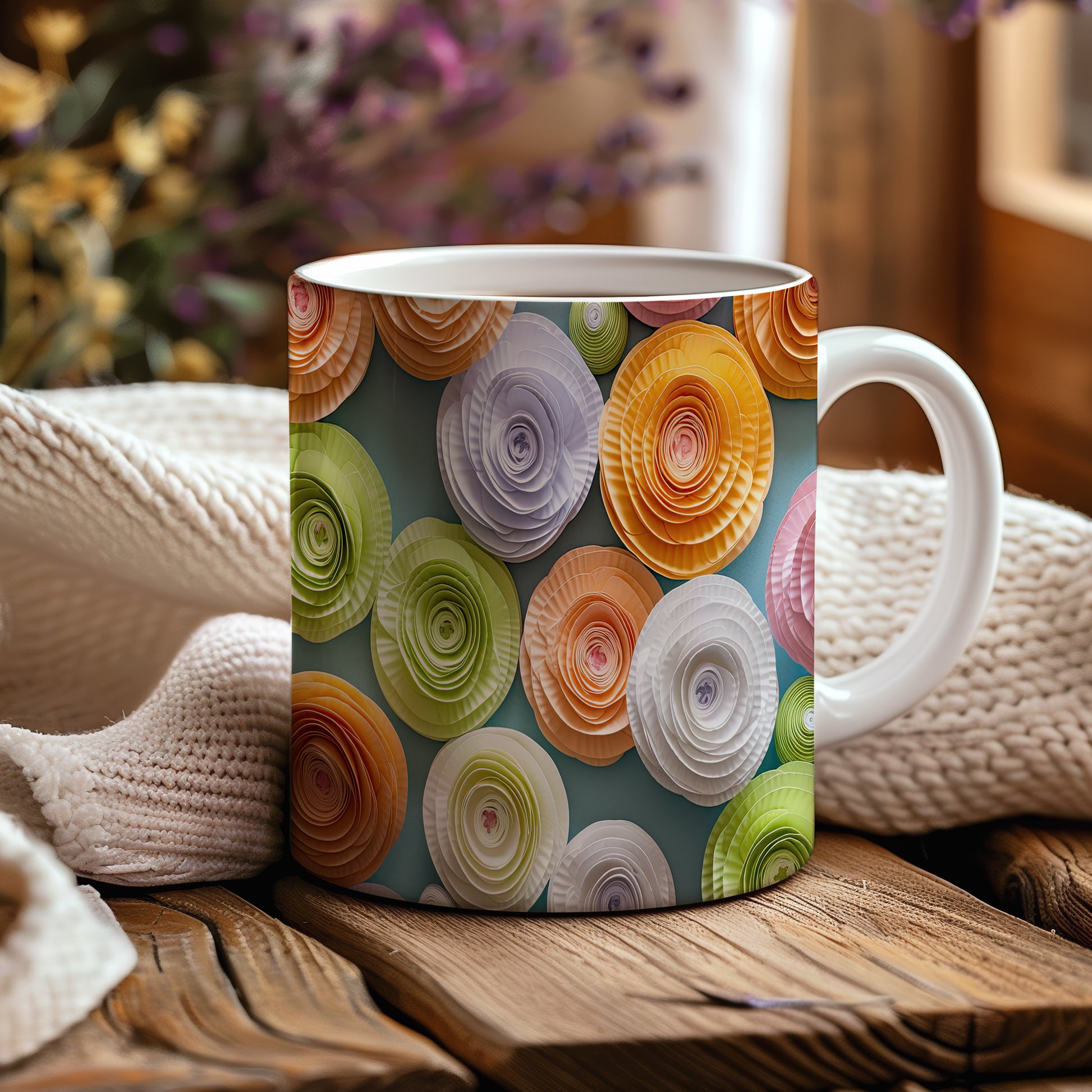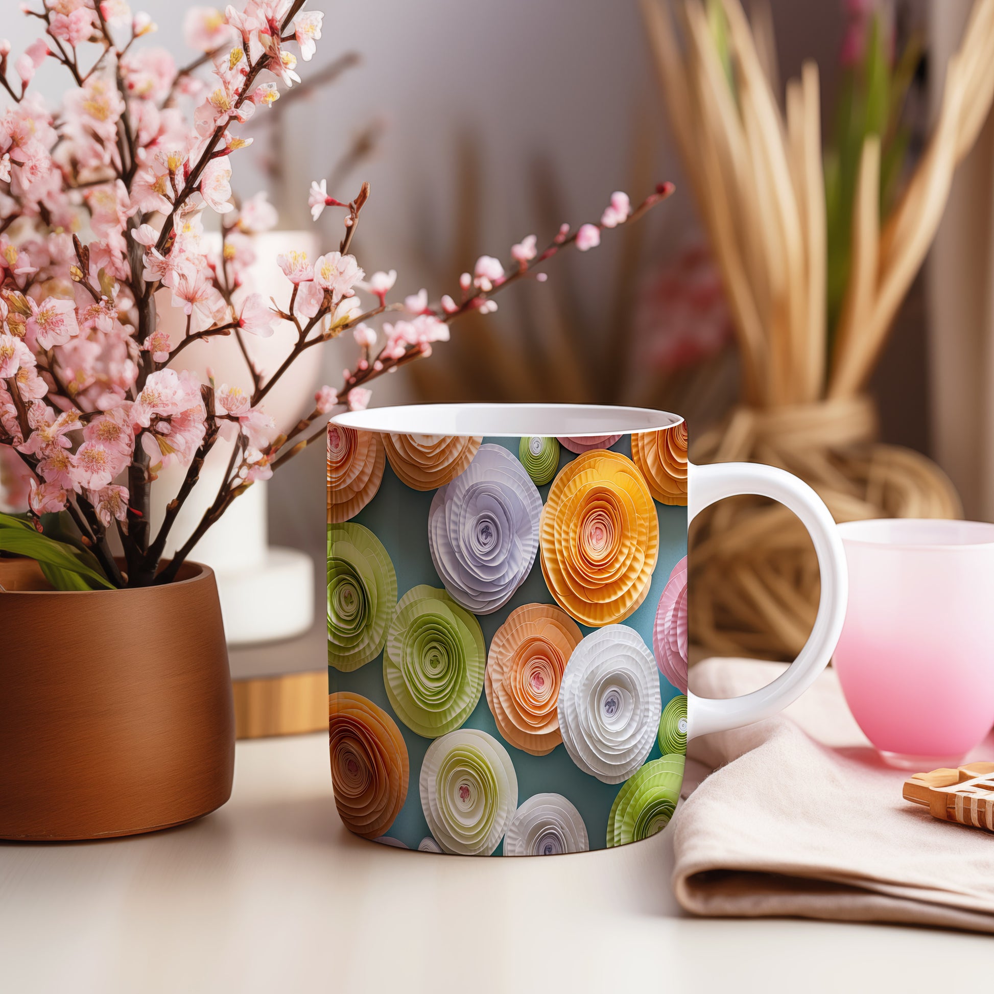 Tento hrnek je ozdoben motivem barevných papírových květin, který přináší radost a kreativitu. Je ideální pro milovníky originálních kousků a skvělým dárkem pro přátele nebo rodinu. Materiál: keramika. Objem: 330 ml. Vhodné do myčky i mikrovlnky. Používání tohoto hrnku dodá vašemu pití osobitý styl.