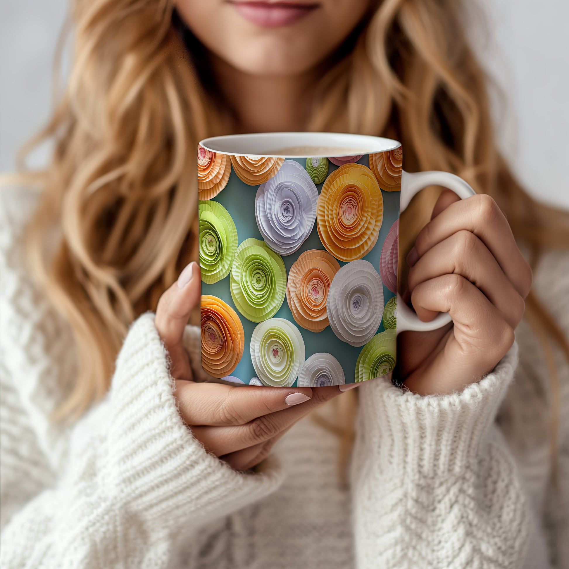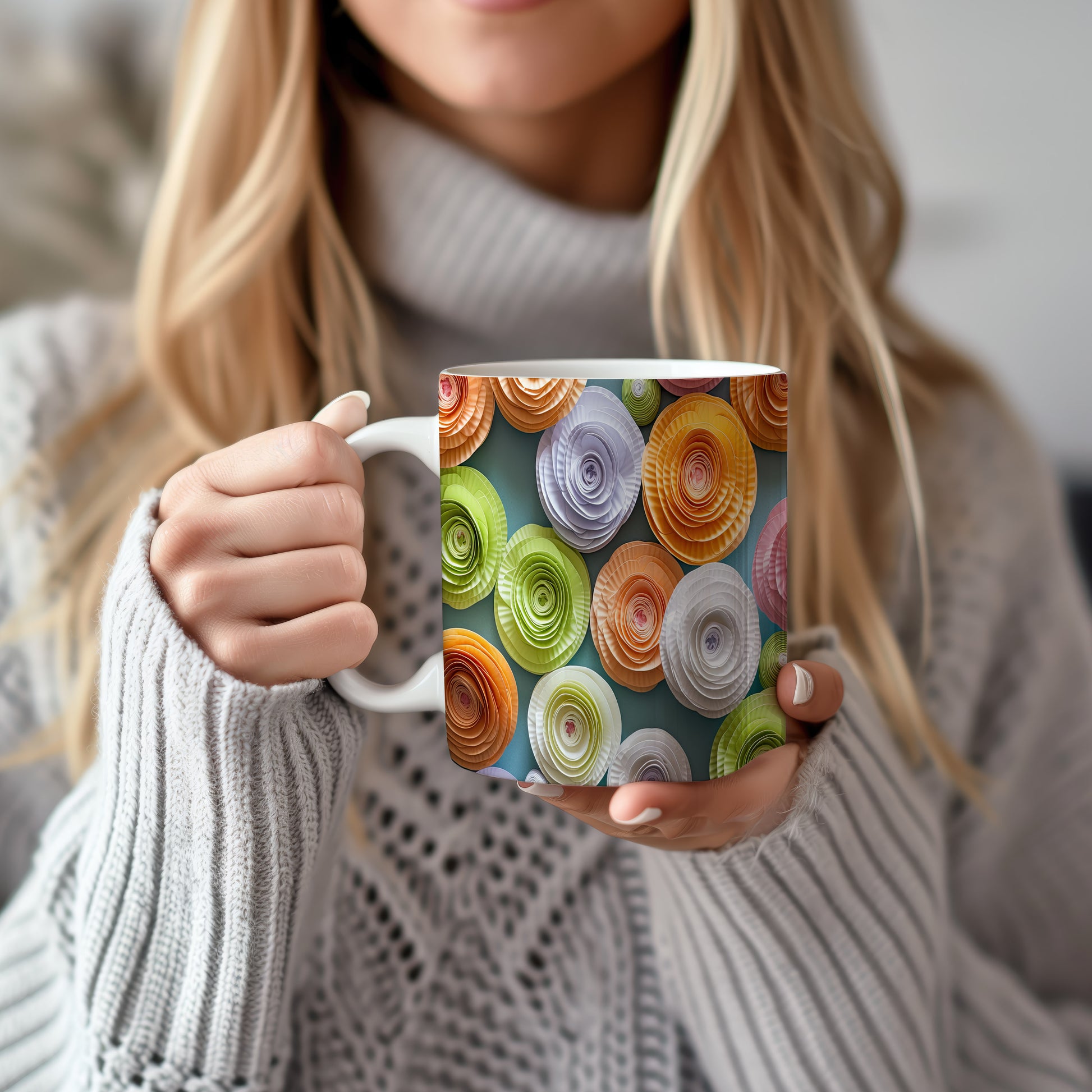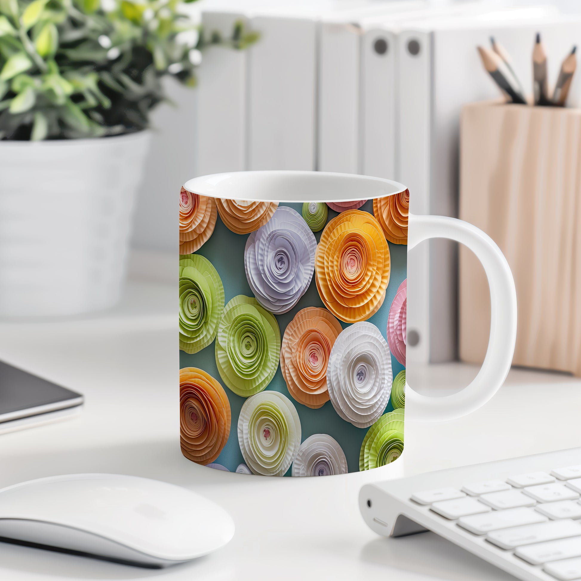 Tento hrnek je ozdoben motivem barevných papírových květin, který přináší radost a kreativitu. Je ideální pro milovníky originálních kousků a skvělým dárkem pro přátele nebo rodinu. Materiál: keramika. Objem: 330 ml. Vhodné do myčky i mikrovlnky. Používání tohoto hrnku dodá vašemu pití osobitý styl.