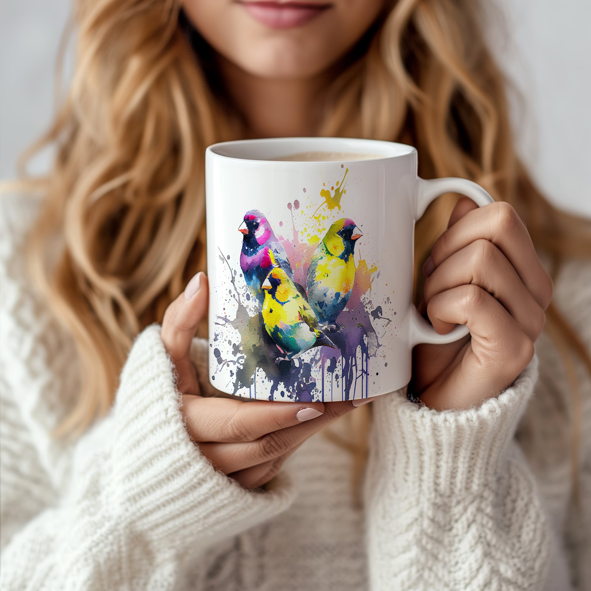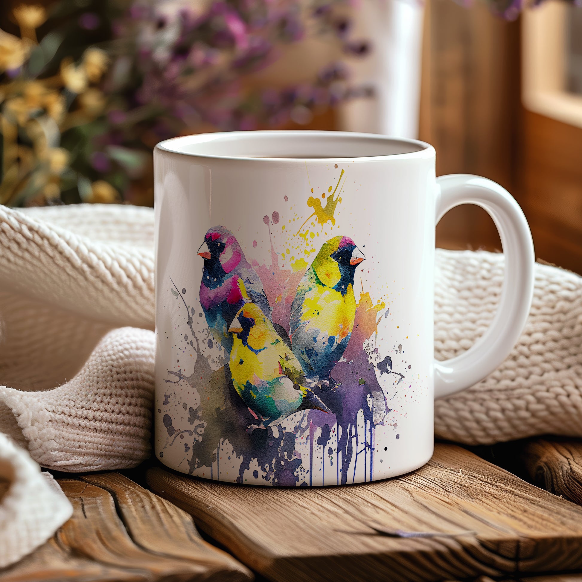 Tento hrnek zaujme motivem tří barevných ptáků na abstraktním pozadí. Je ideální pro milovníky přírody a vesele laděného designu, skvělý tip na dárek pro přátele nebo rodinu. Materiál: keramika. Objem: 330 ml. Vhodné do myčky i mikrovlnky. Díky svému jedinečnému vzhledu přinese do vašeho dne radost a pozitivní energii.