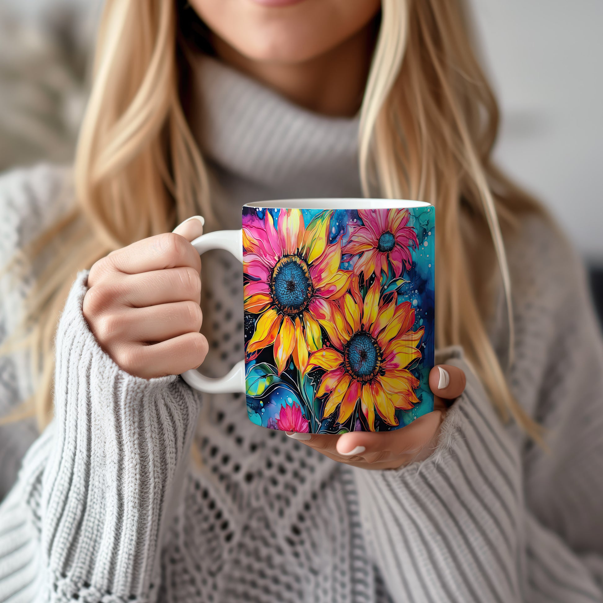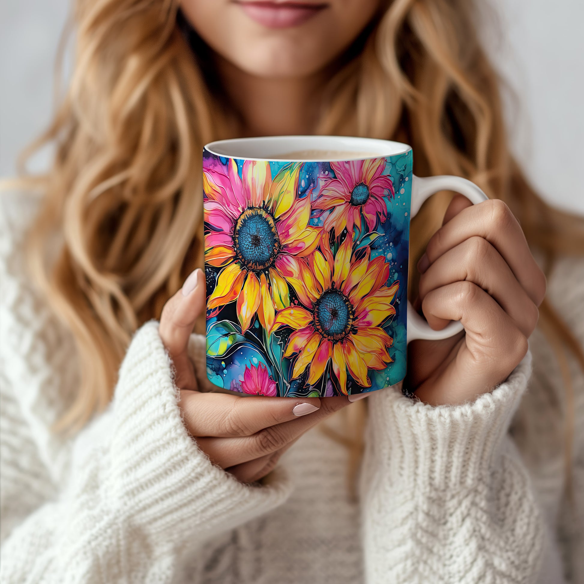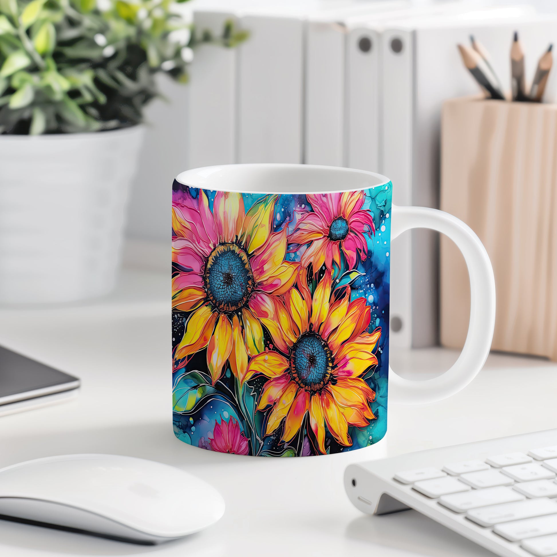 Tento hrnek zaujme svým živým designem plným slunečnic. Je ideální pro milovníky přírody a květin, skvělý tip na dárek pro každého, kdo ocení krásu v každodenním životě. Materiál: keramika. Objem: 330 ml. Vhodné do myčky i mikrovlnky. Používání tohoto hrnku přináší radost a pozitivní energii do každého dne.