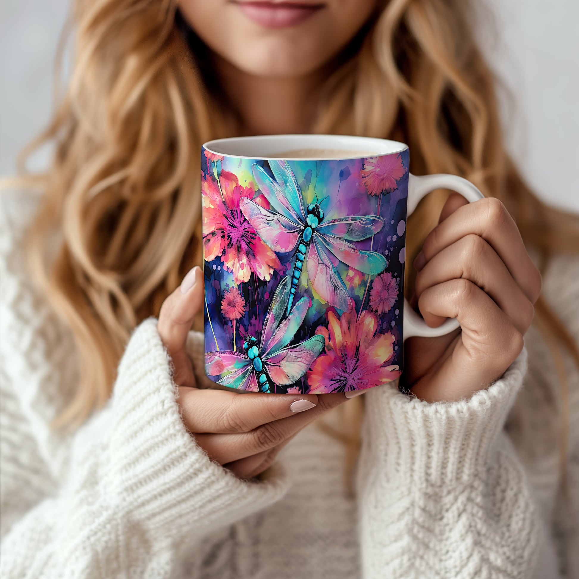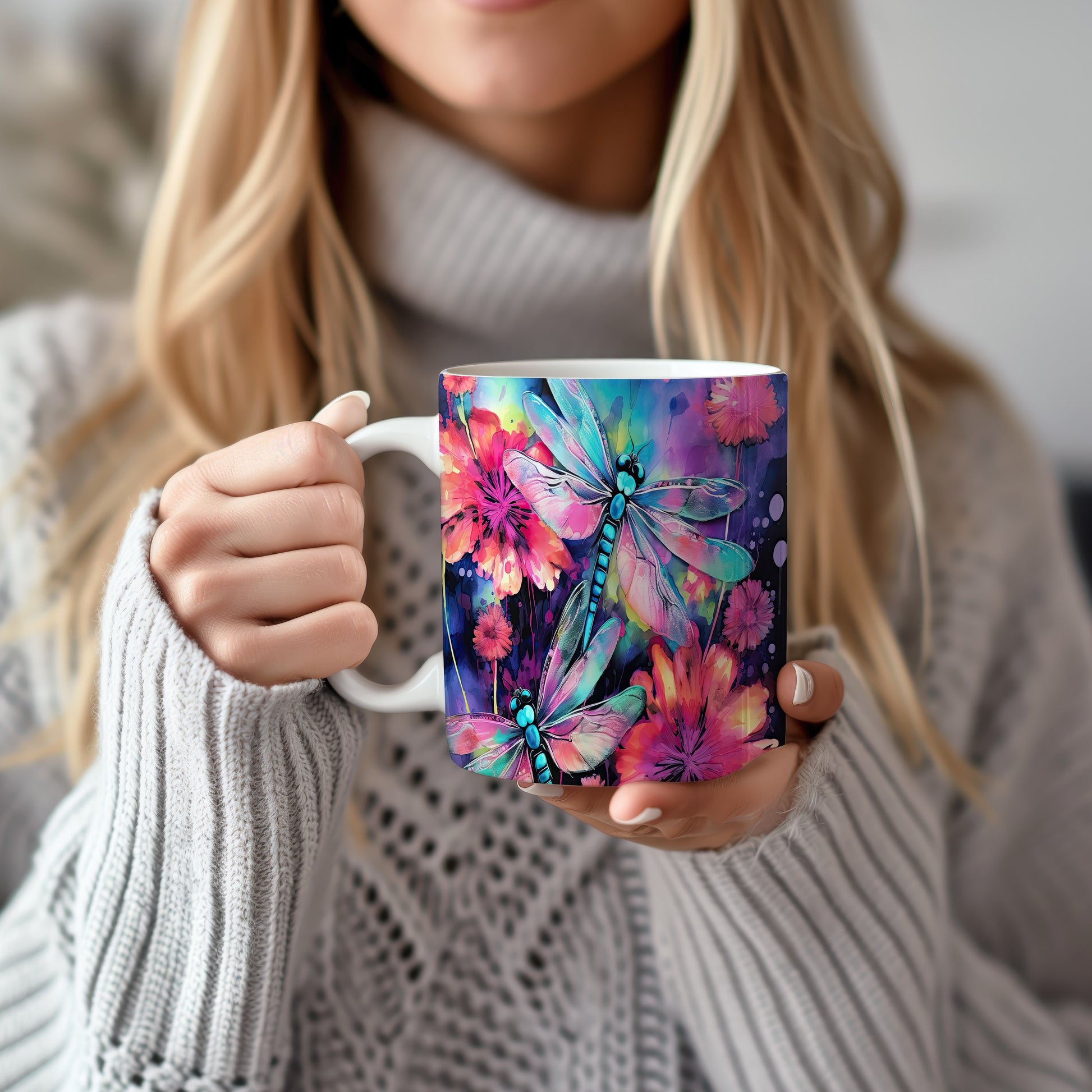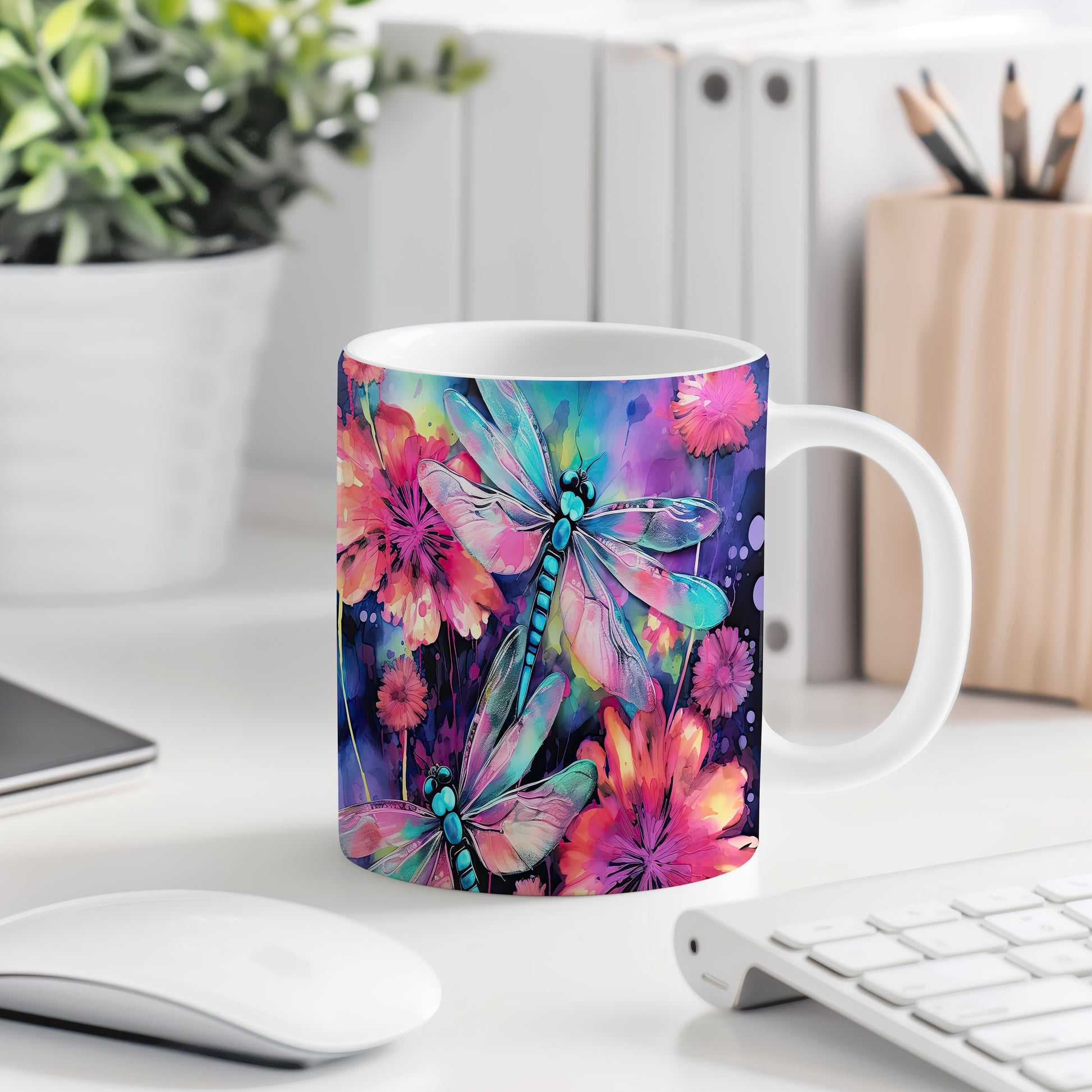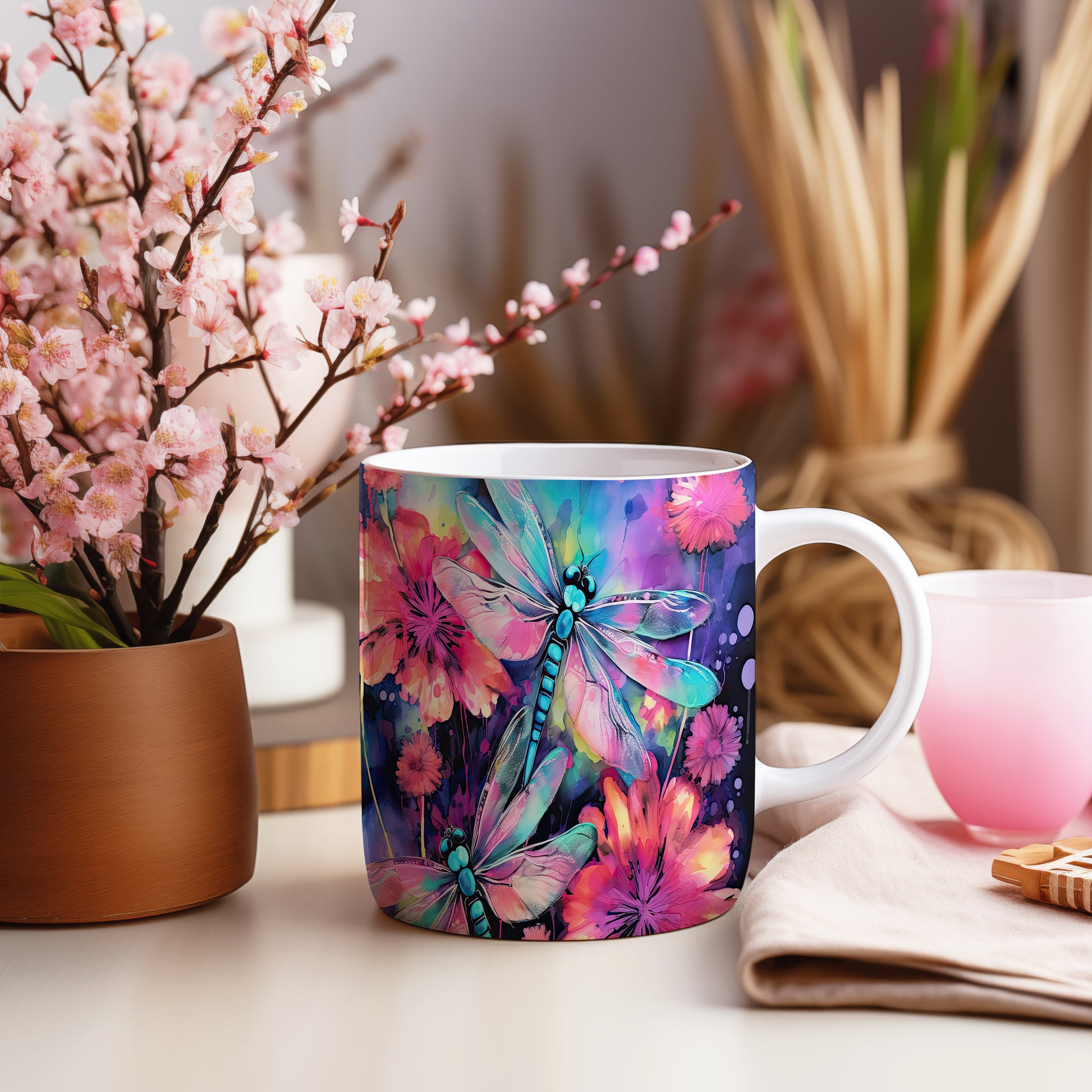 Tento hrnek je zdobený krásnými vážkami v živých barvách. Je ideální pro milovníky přírody a skvělým dárkem pro každého, kdo ocení jedinečný design. Materiál: keramika. Objem: 330 ml. Vhodné do myčky i mikrovlnky. Díky svému stylovému vzhledu přinese do každodenního pití radost a oživí váš stůl.