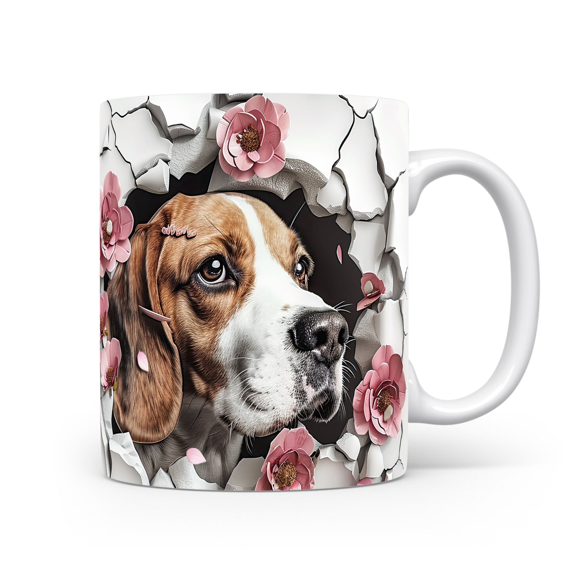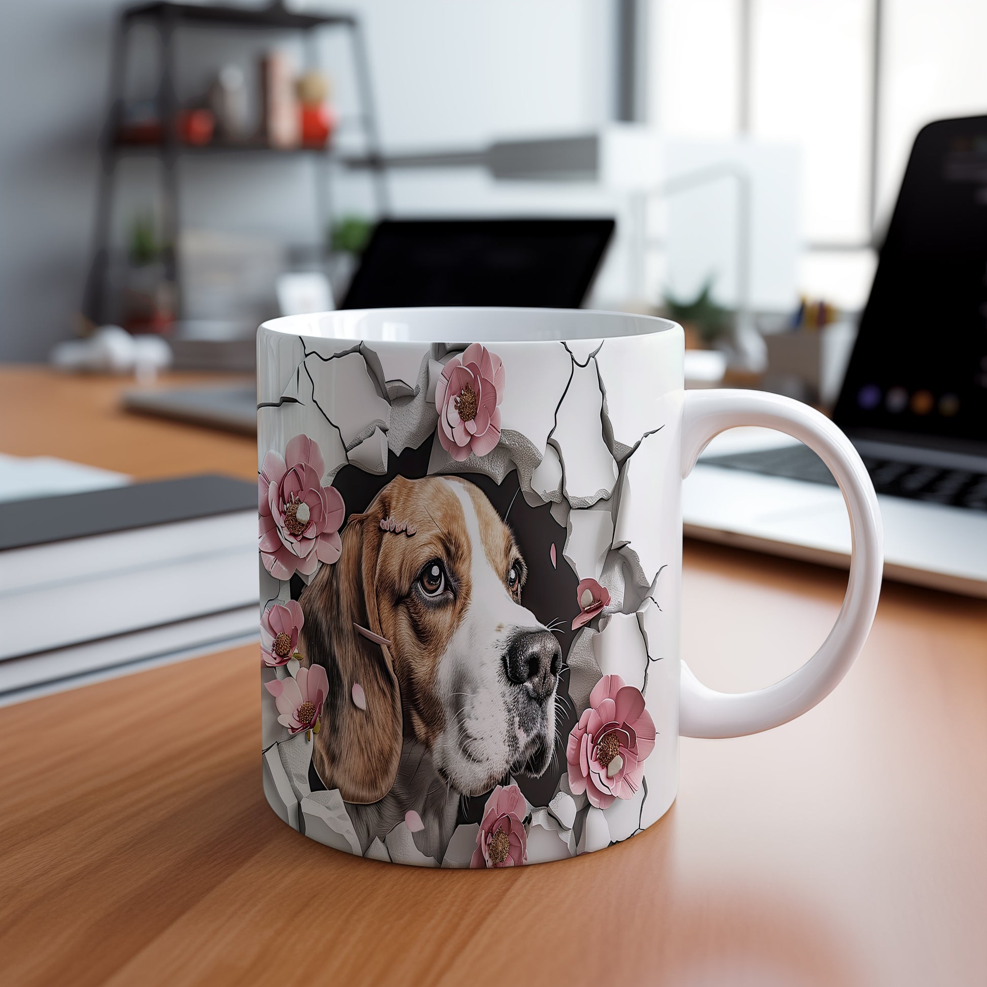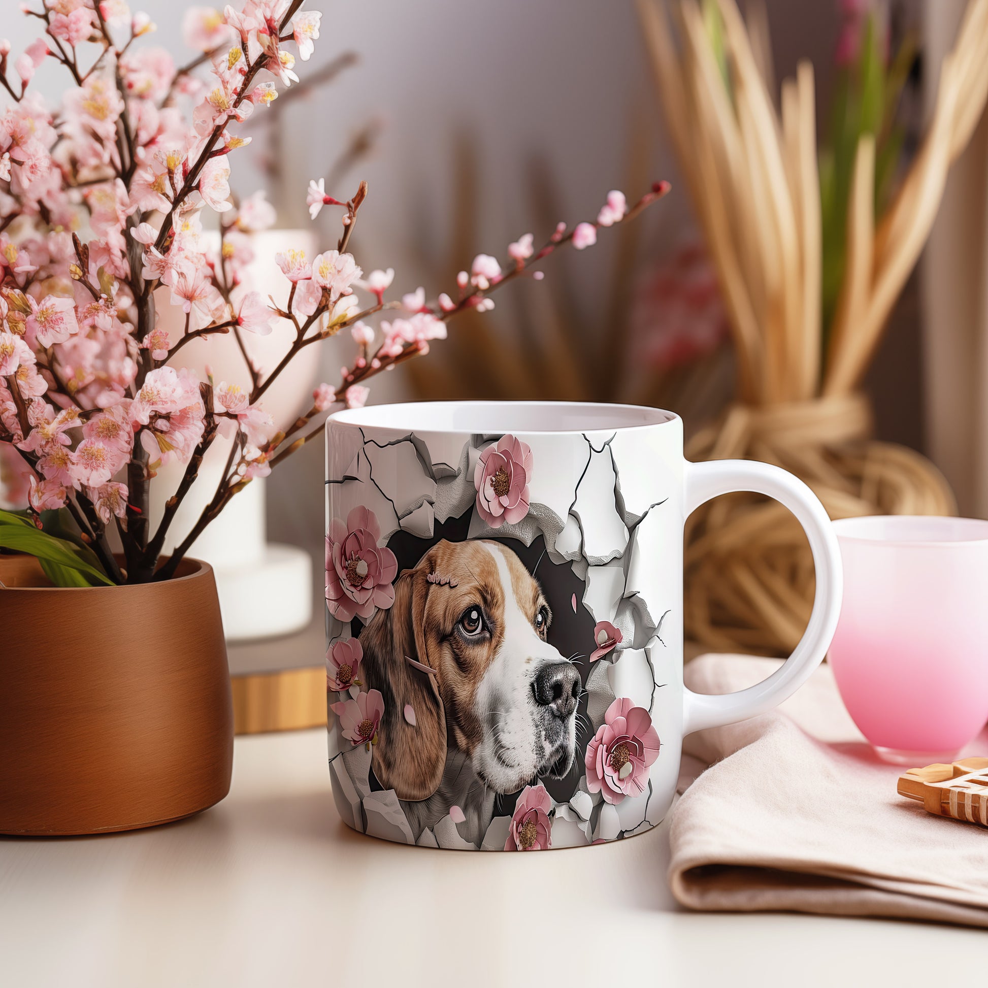 Tento keramický hrnek s motivem beagle psa a květin je ideální pro milovníky zvířat a přírody. Skvělý tip na dárek pro přátele nebo rodinu, kteří ocení originální design. Materiál: keramika. Objem: 330 ml. Vhodné do myčky i mikrovlnky. Užijte si kávu nebo čaj s tímto stylovým hrnkem, který přináší radost do každého dne.
