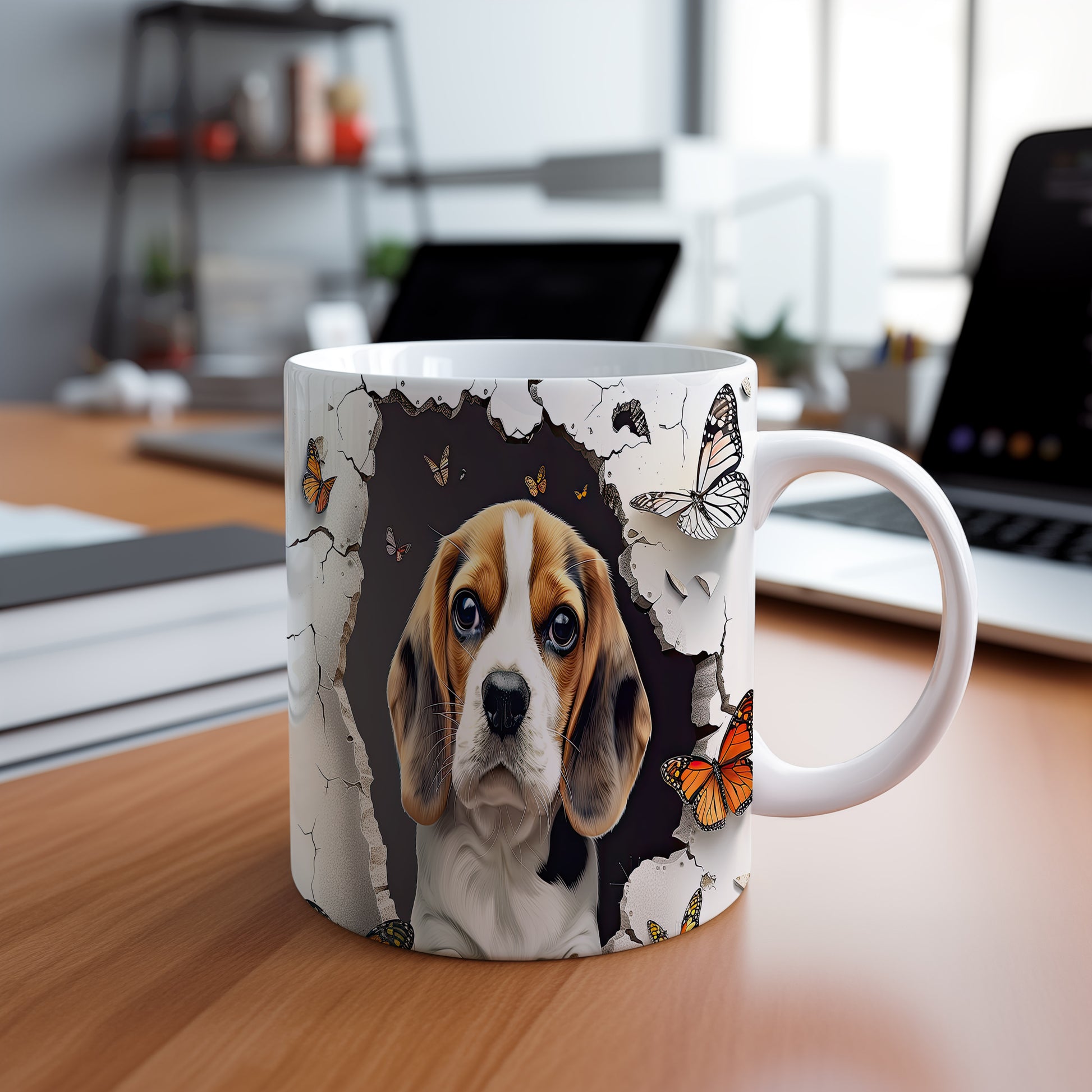 Tento keramický hrnek zobrazuje beagle psa s veselým pohledem a barevnými motýly. Je ideální pro milovníky psů a přírody, skvělý tip na dárek pro přátele nebo rodinu. Materiál: keramika. Objem: 330 ml. Vhodné do myčky i mikrovlnky. Používáním tohoto hrnku si užijete každé sousto a povzbudíte svou kreativitu.