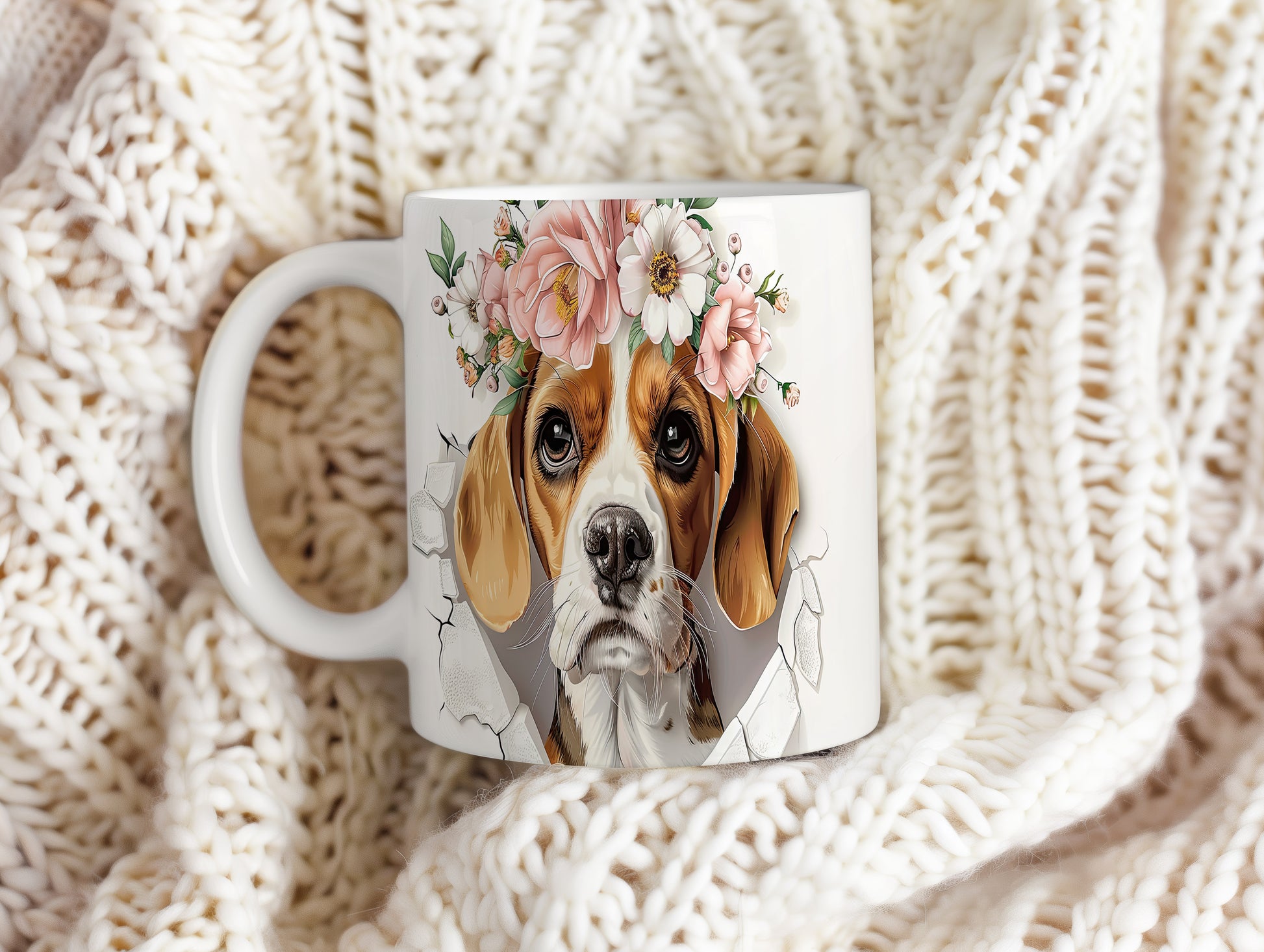 Hrnek s Beagle psem v květinové koruně