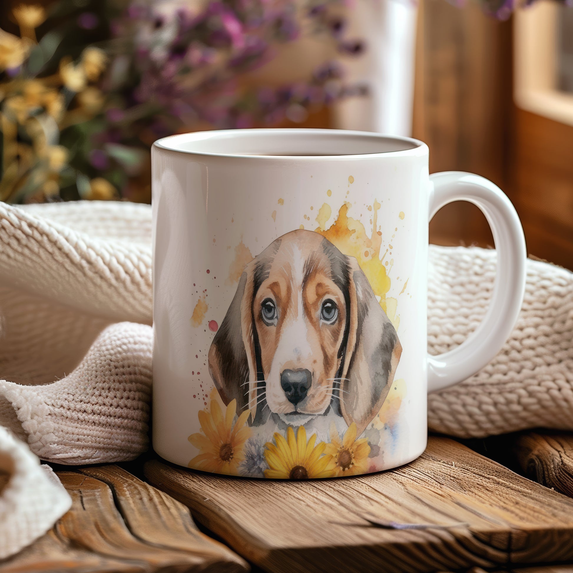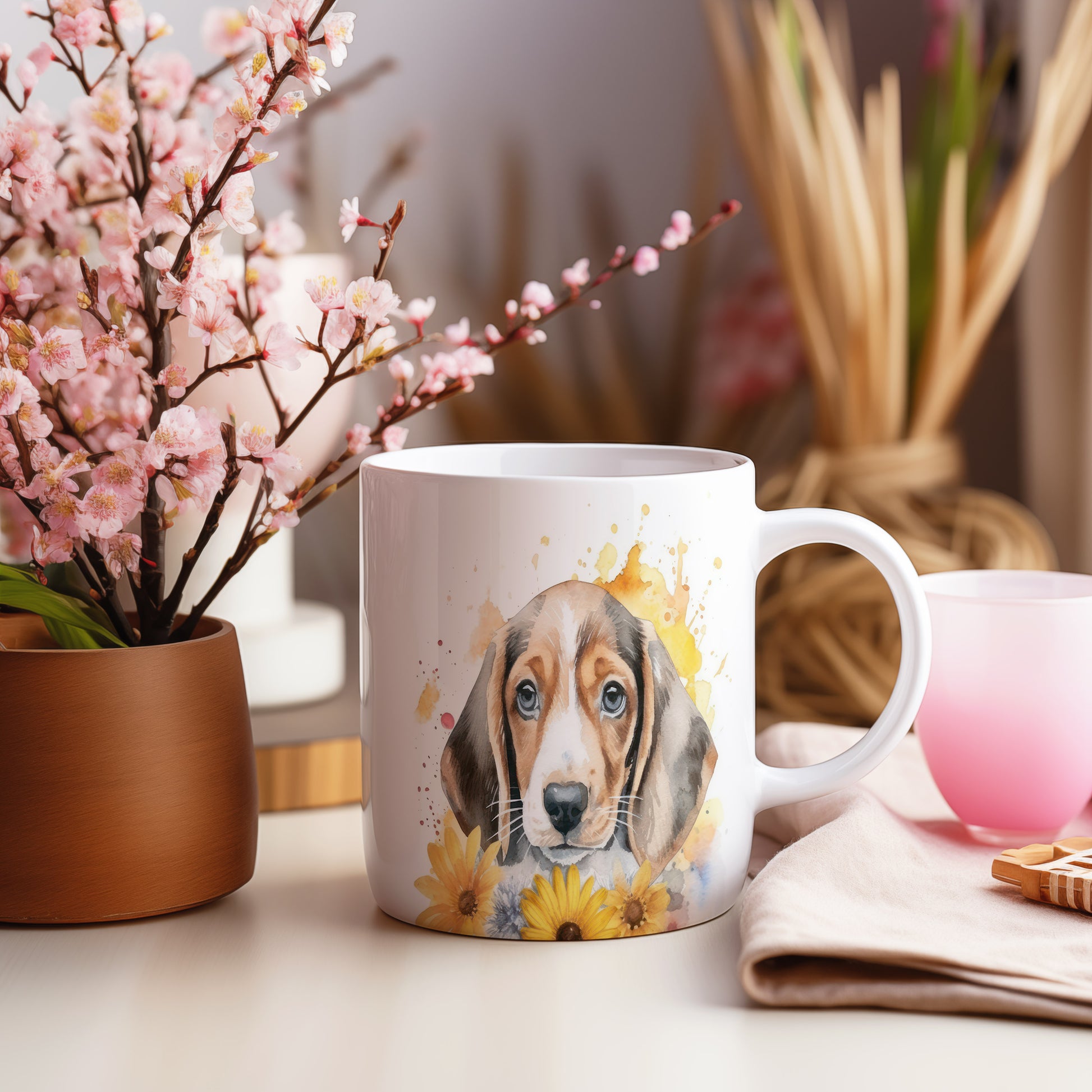 Keramický hrnek s motivem roztomilého štěněte, které je obklopeno květinami. Tento hrnek je ideální pro milovníky psů a skvělým dárkem pro každého, kdo má rád zvířata. Materiál: keramika. Objem: 330 ml. Vhodné do myčky i mikrovlnky. Používání tohoto hrnku přináší radost a útulnost do každodenního pití.